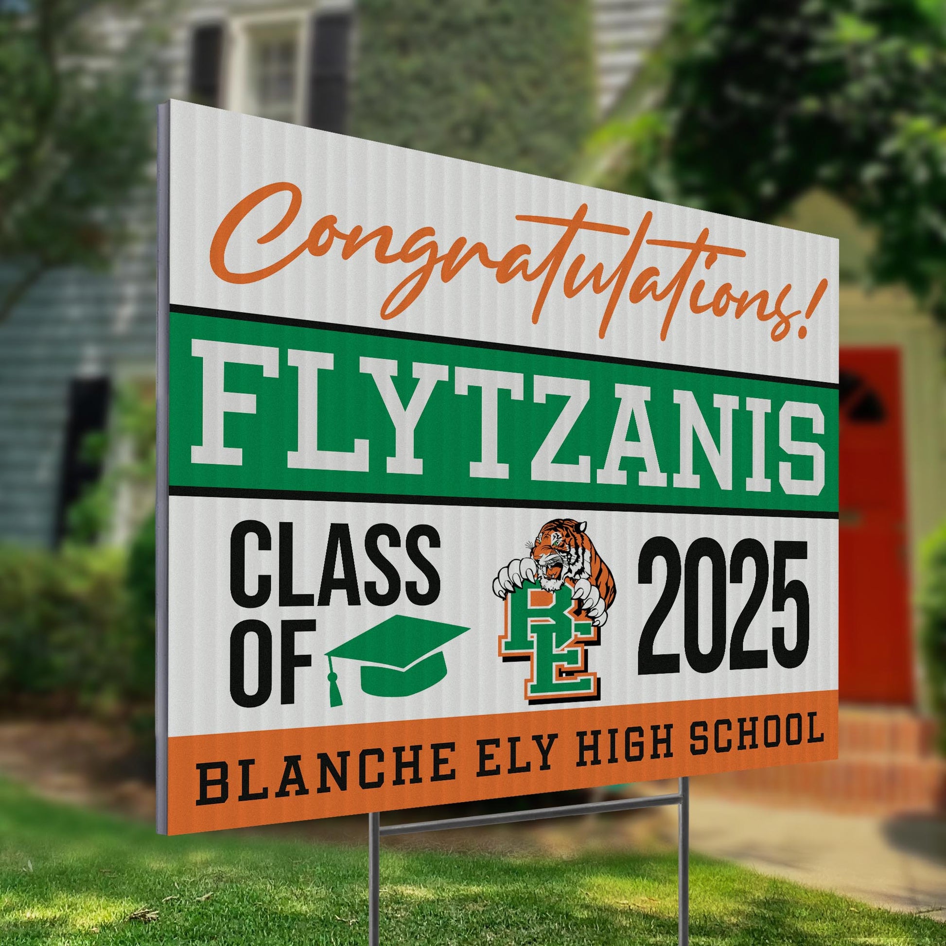 Weatherproof & Durable – Crafted from high-quality corrugated plastic, our yard signs are built to endure all weather conditions. Whether rain, sun, or wind, these signs retain their vibrant colors, offering a reliable and lasting way to showcase pride in Blanche Ely High School graduates.