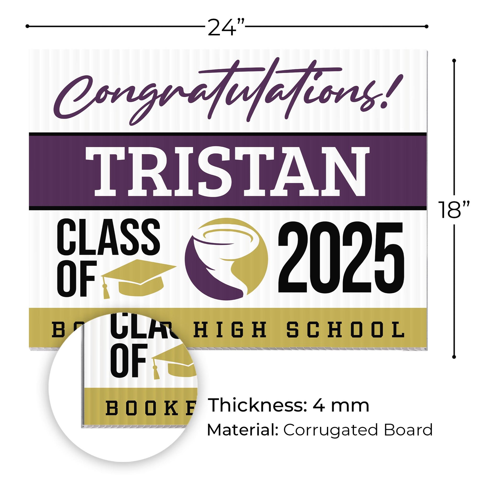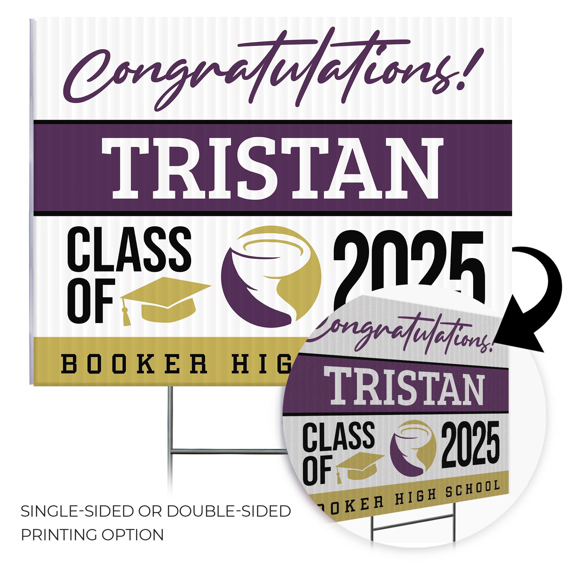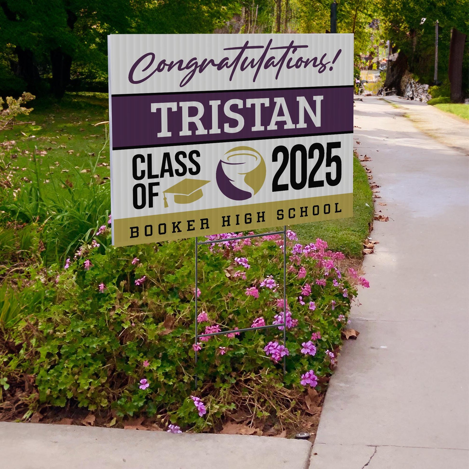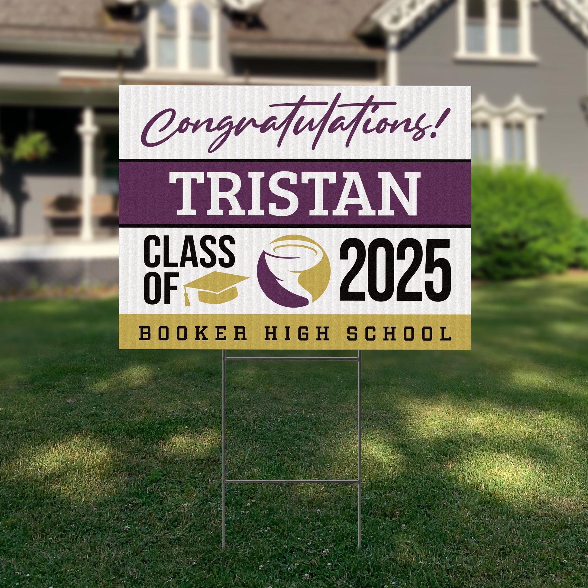 Customizable Design – Celebrate the achievements of Booker High School graduates with personalized yard signs. Add the graduate's name, graduation year, and a congratulatory message to create a unique, custom tribute, making it easy for friends, family, and the community to recognize and honor their accomplishment.