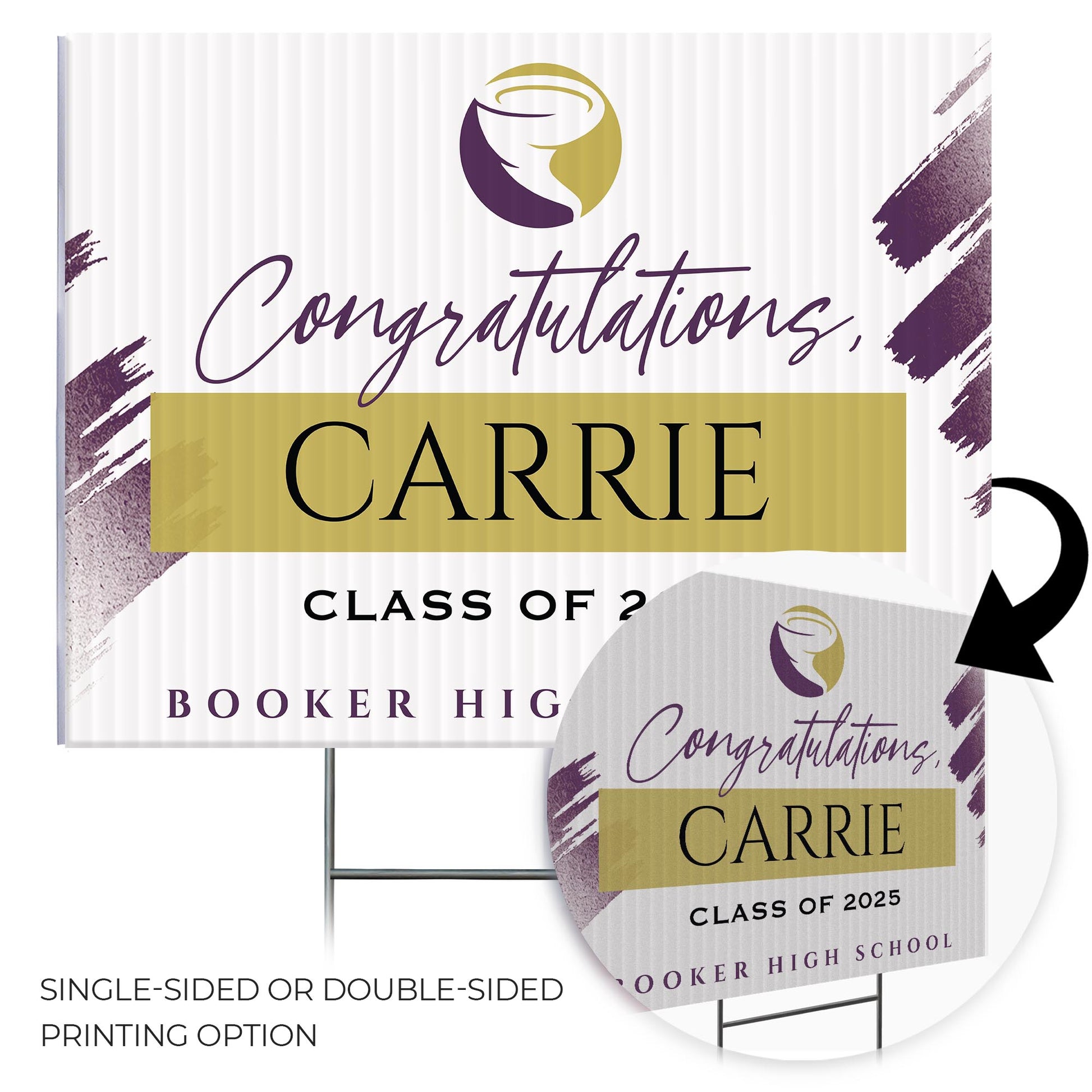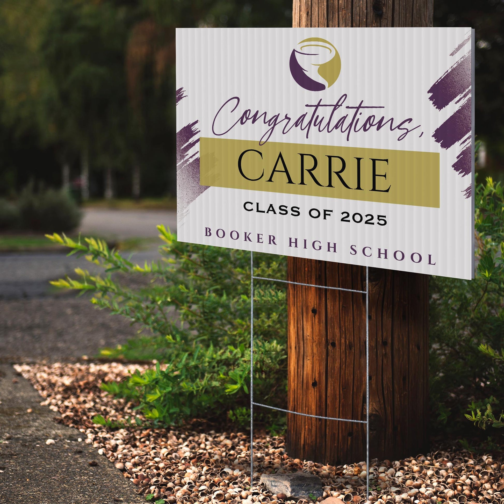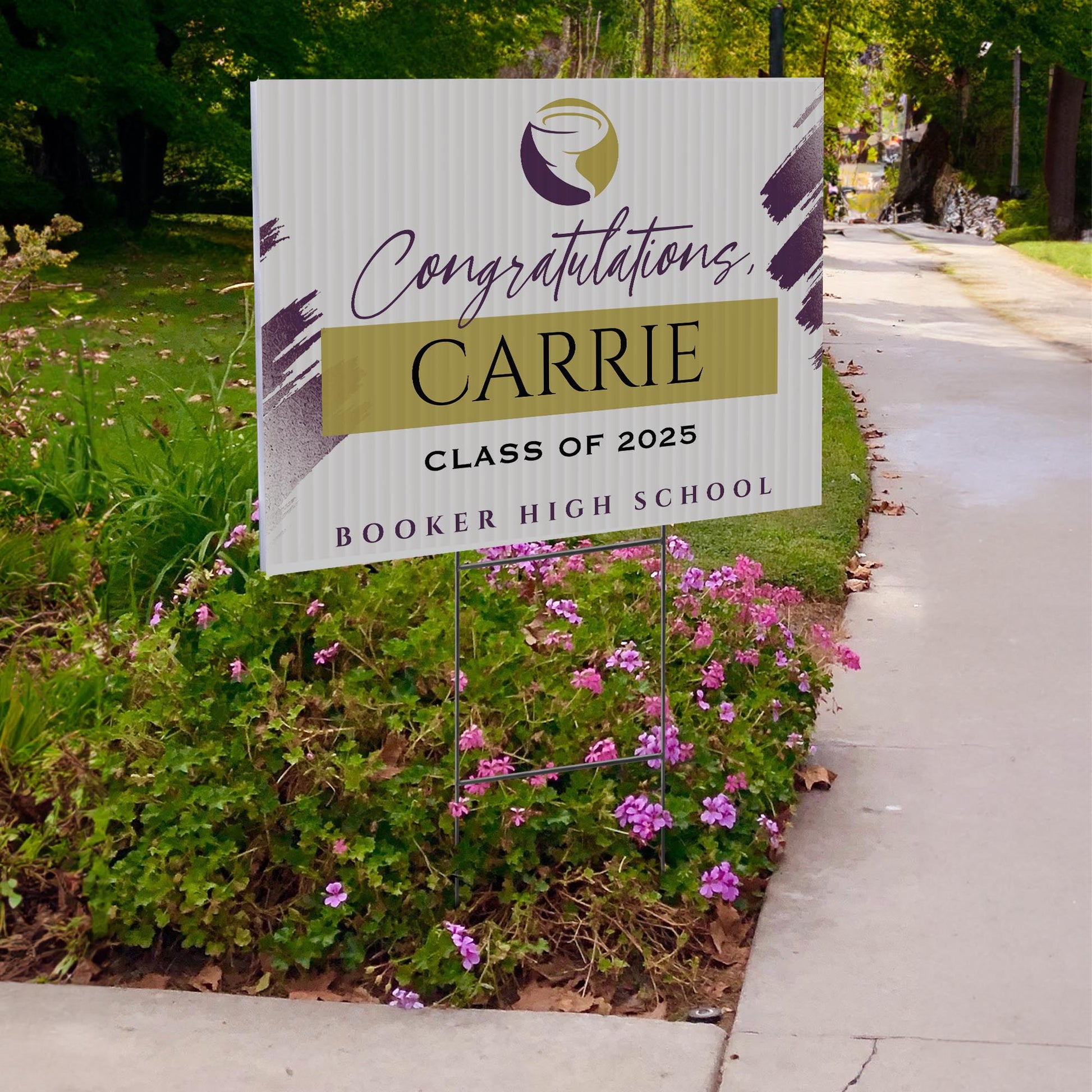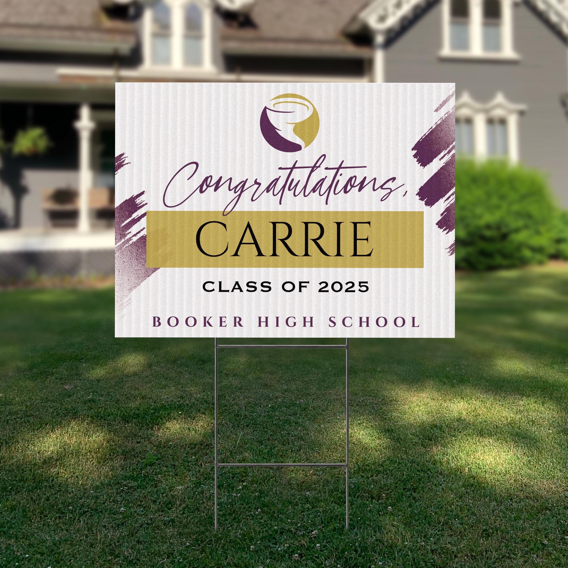 Customizable Design – Celebrate the achievements of Booker High School graduates with personalized yard signs. Add the graduate's name, graduation year, and a congratulatory message to create a unique, custom tribute, making it easy for friends, family, and the community to recognize and honor their accomplishment.