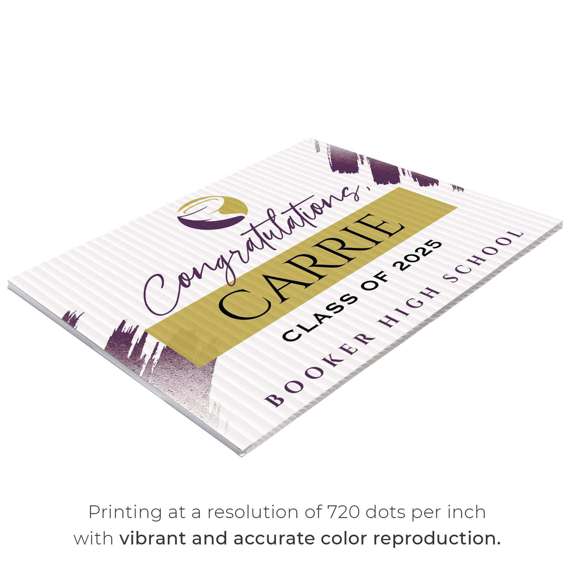 Vibrant Full-Color Printing – Make a statement with bold, full-color graphics printed on both sides of the sign. The eye-catching congratulatory message, along with the graduate's details, ensures visibility from every angle, helping to celebrate this special milestone in style.