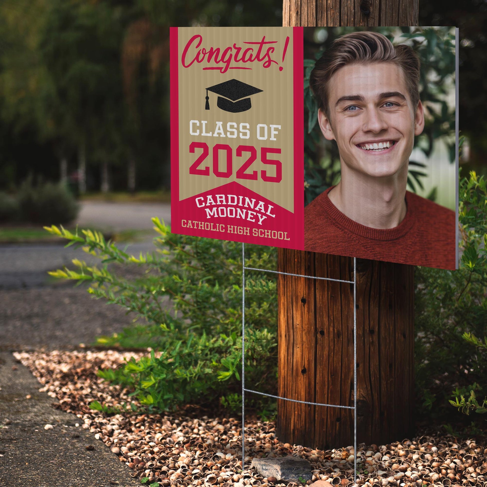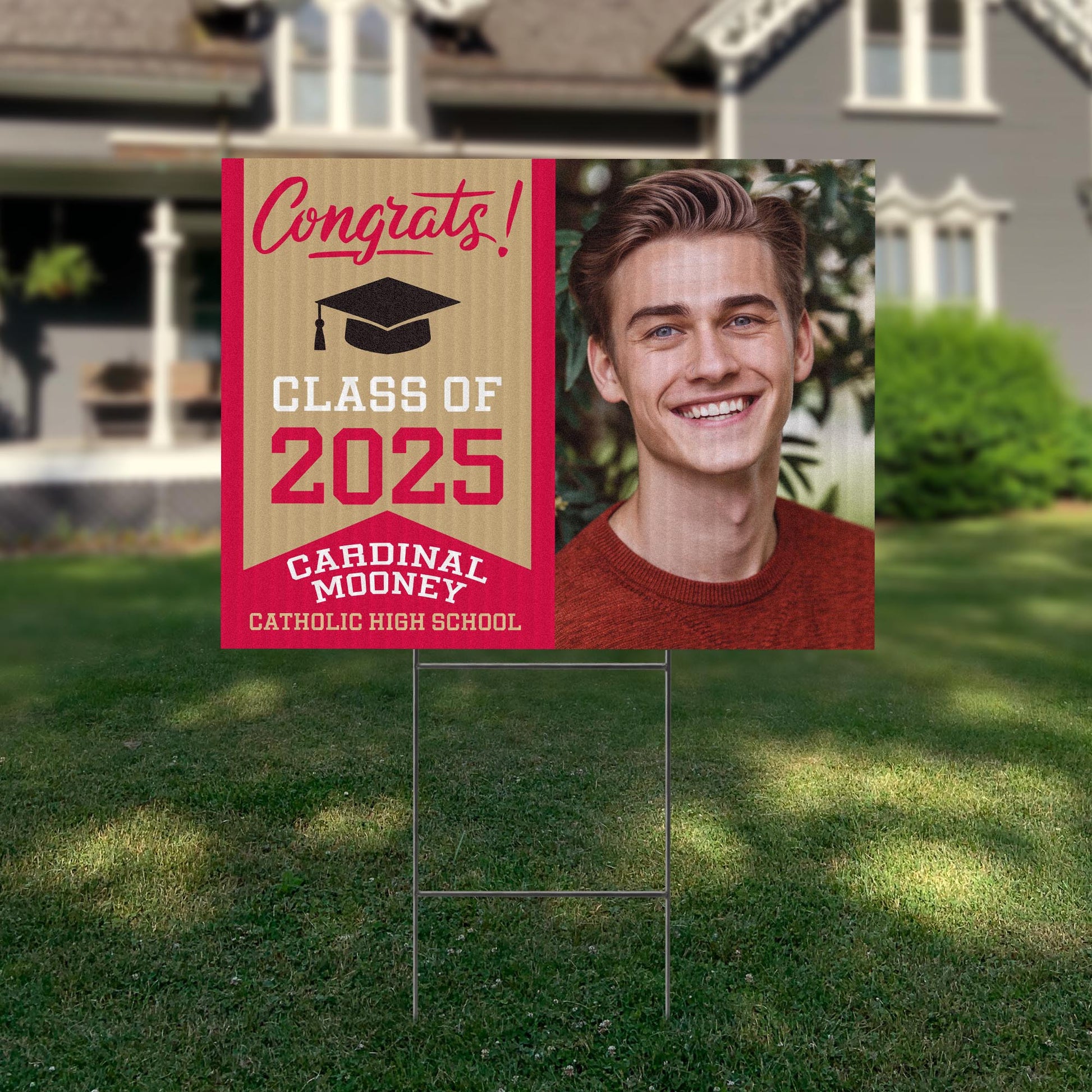 Customizable Design – Celebrate the achievements of Cardinal Mooney Catholic High School graduates with personalized yard signs. Add the graduate's name, graduation year, and a congratulatory message to create a unique, custom tribute, making it easy for friends, family, and the community to recognize and honor their accomplishment.