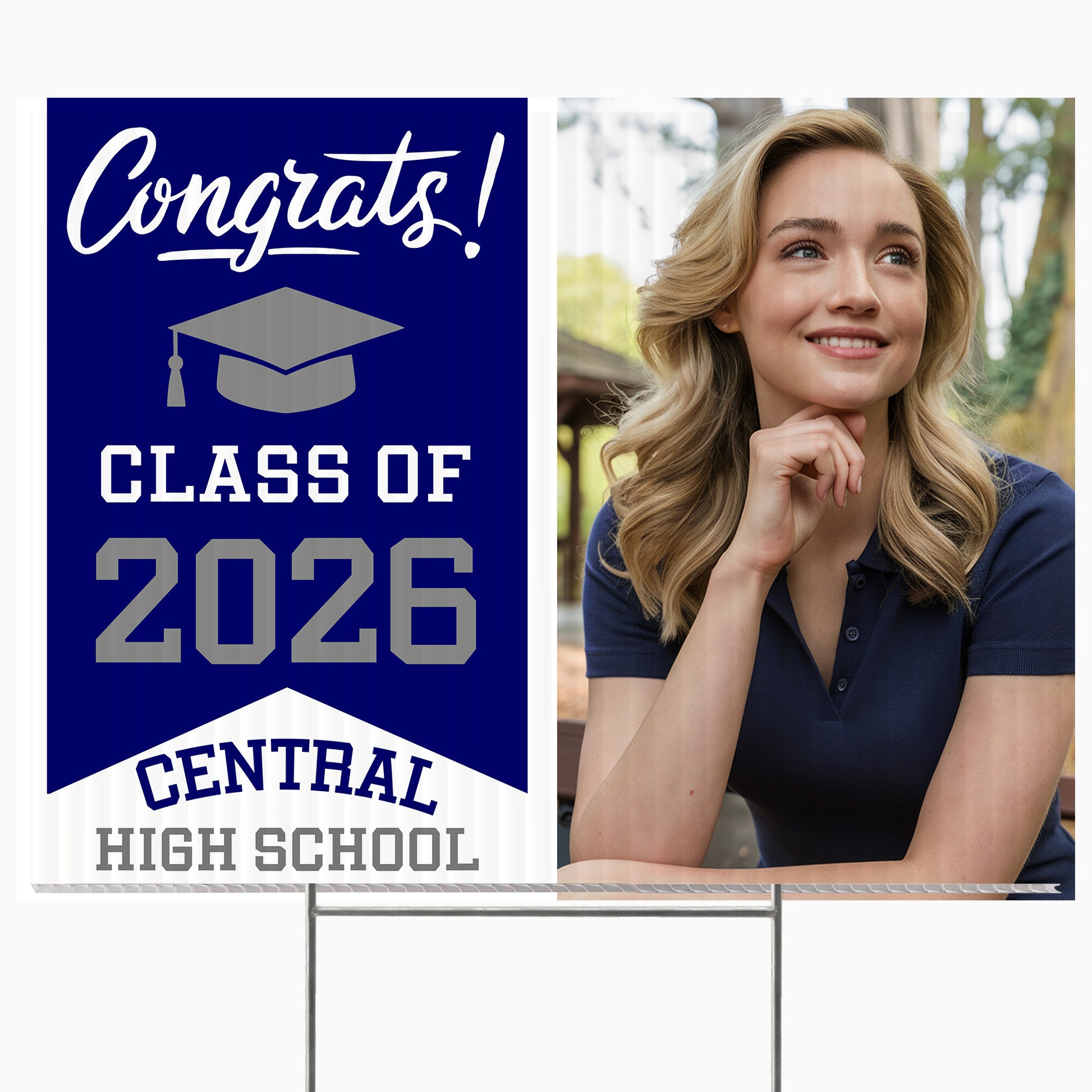 Customizable Design – Celebrate the achievements of Central High School graduates with personalized yard signs. Add the graduate's name, graduation year, and a congratulatory message to create a unique, custom tribute. It’s an easy (and awesome) way for friends, family, and the entire community to recognize and honor their big moment.