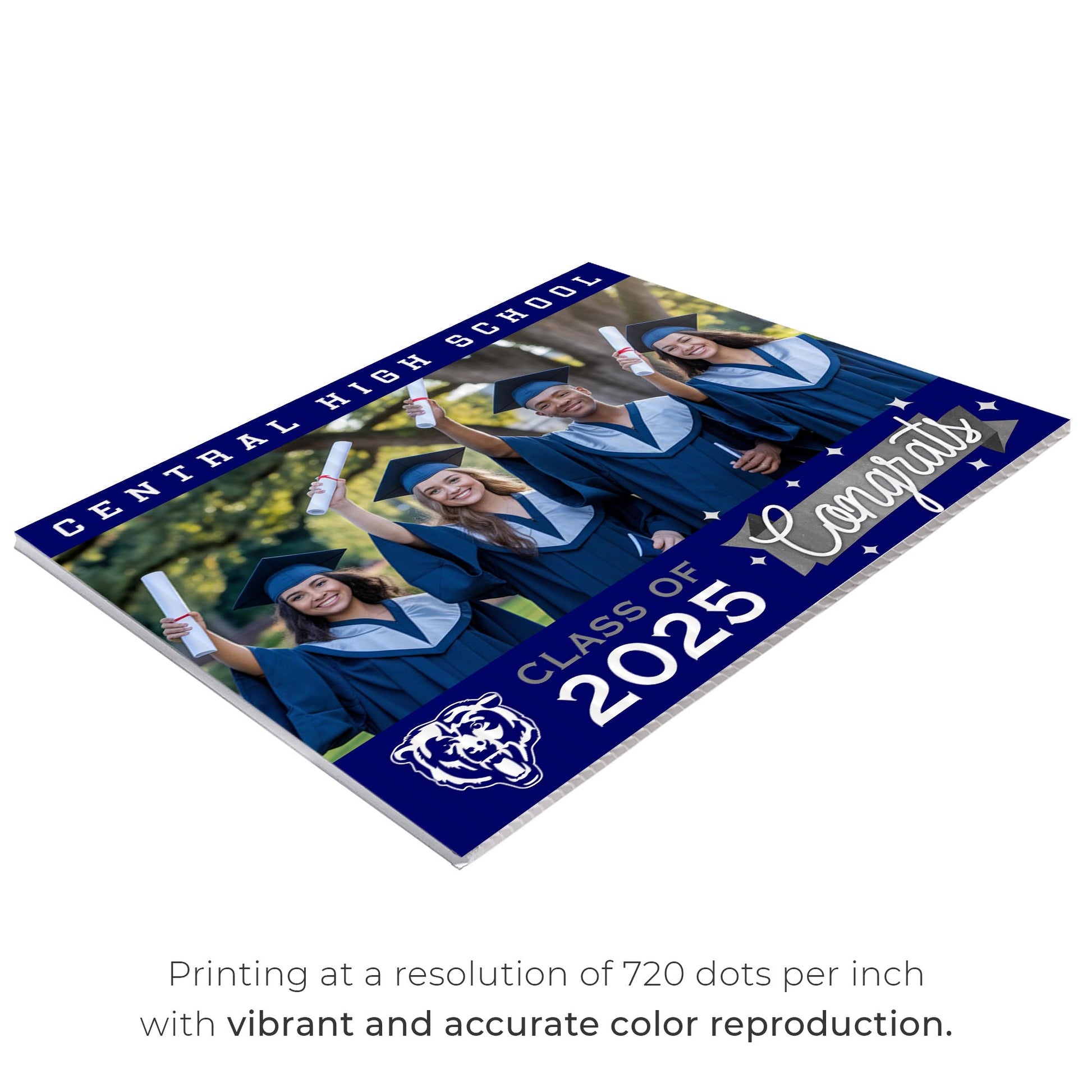 Vibrant Full-Color Printing – Go bold with full-color graphics printed on both sides. The congratulatory message and graduate’s info pop from every angle, making sure your celebration doesn’t go unnoticed.