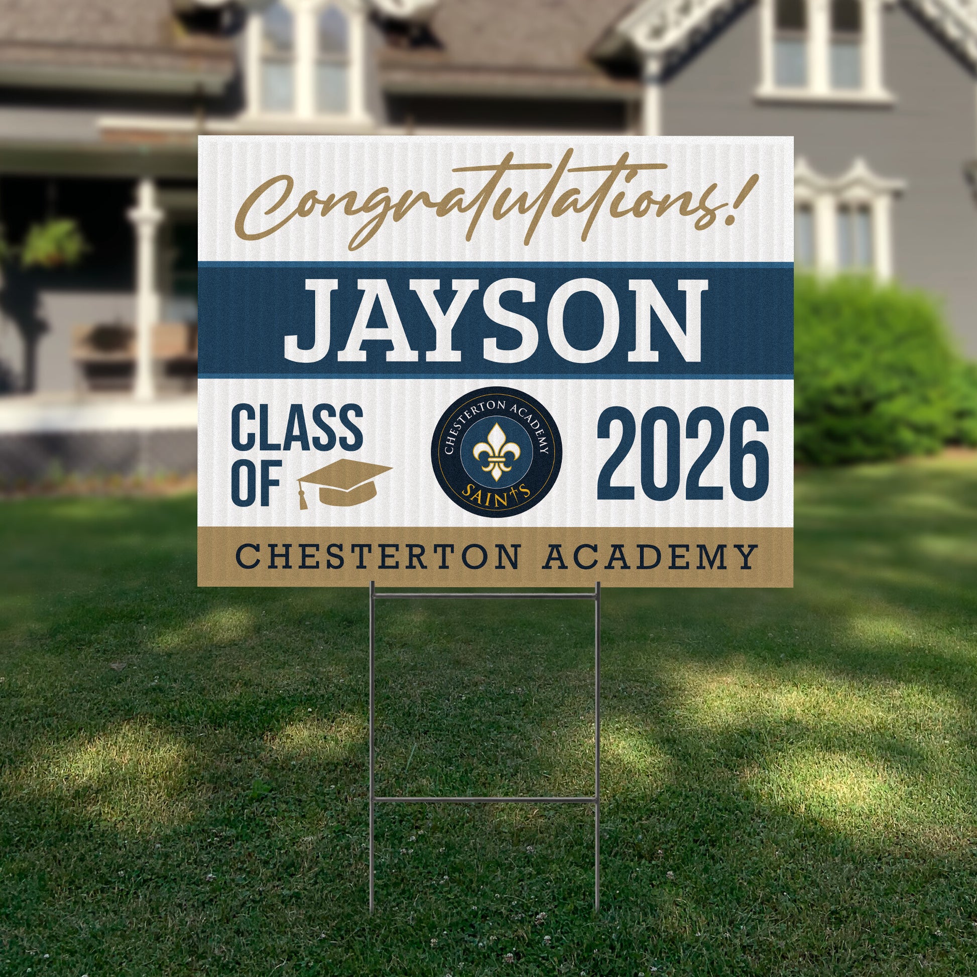 Customizable Design – Celebrate the achievements of Chesterton Academy of Orlando graduates with personalized yard signs. Add the graduate’s name, graduation year, and a congratulatory message to create a unique, custom tribute, making it easy for friends, family, and the community to recognize and honor their accomplishment.