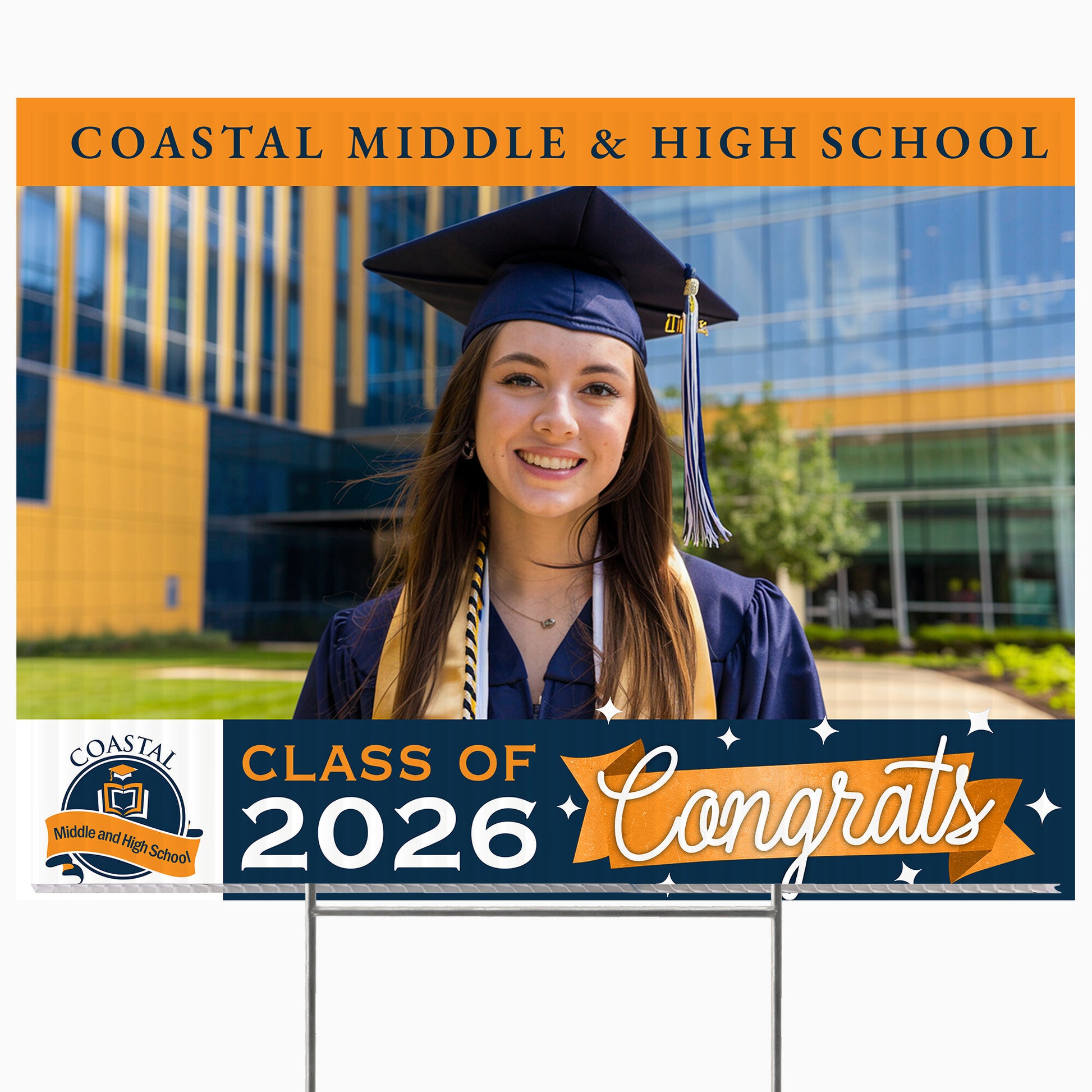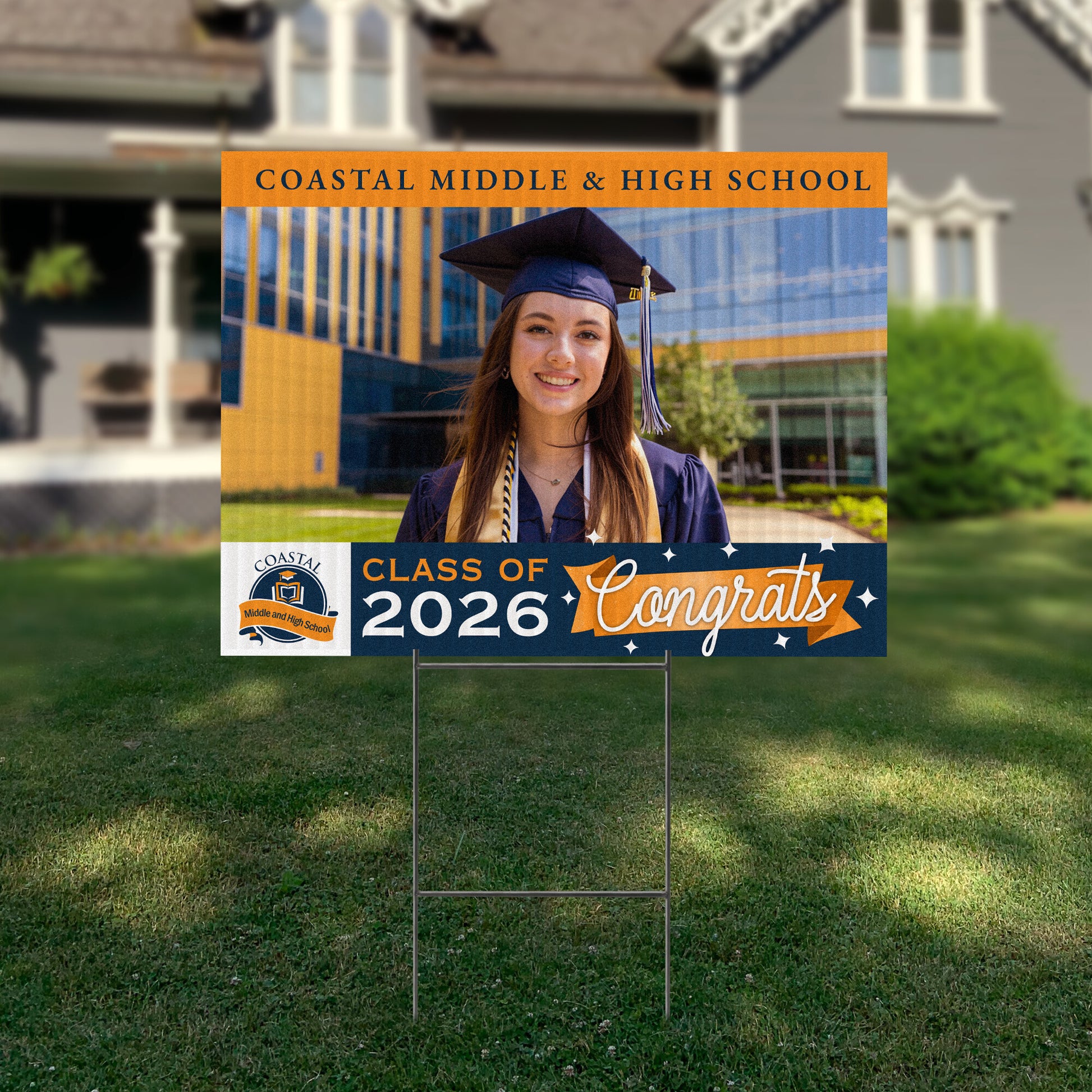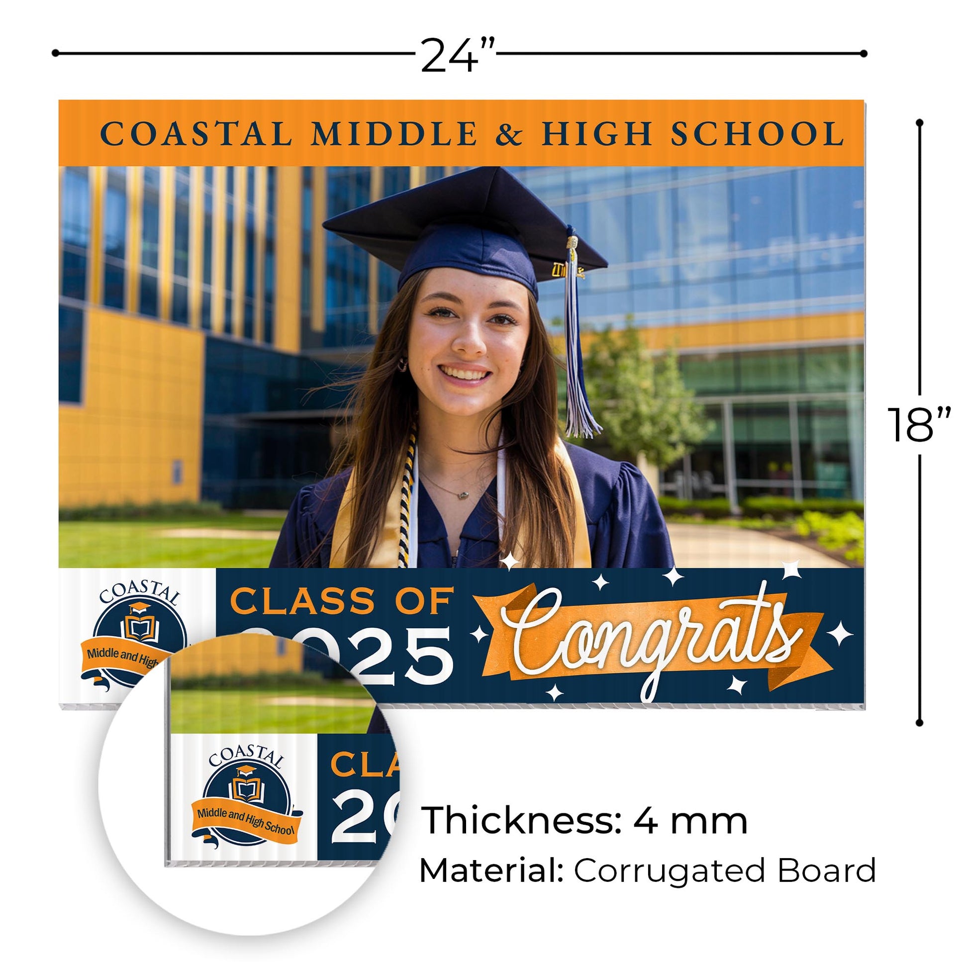 Customizable Design – Celebrate the achievements of Coastal Middle & High School graduates with personalized yard signs. Add the graduate's name, graduation year, and a congratulatory message to create a unique, custom tribute, making it easy for friends, family, and the community to recognize and honor their accomplishment.
