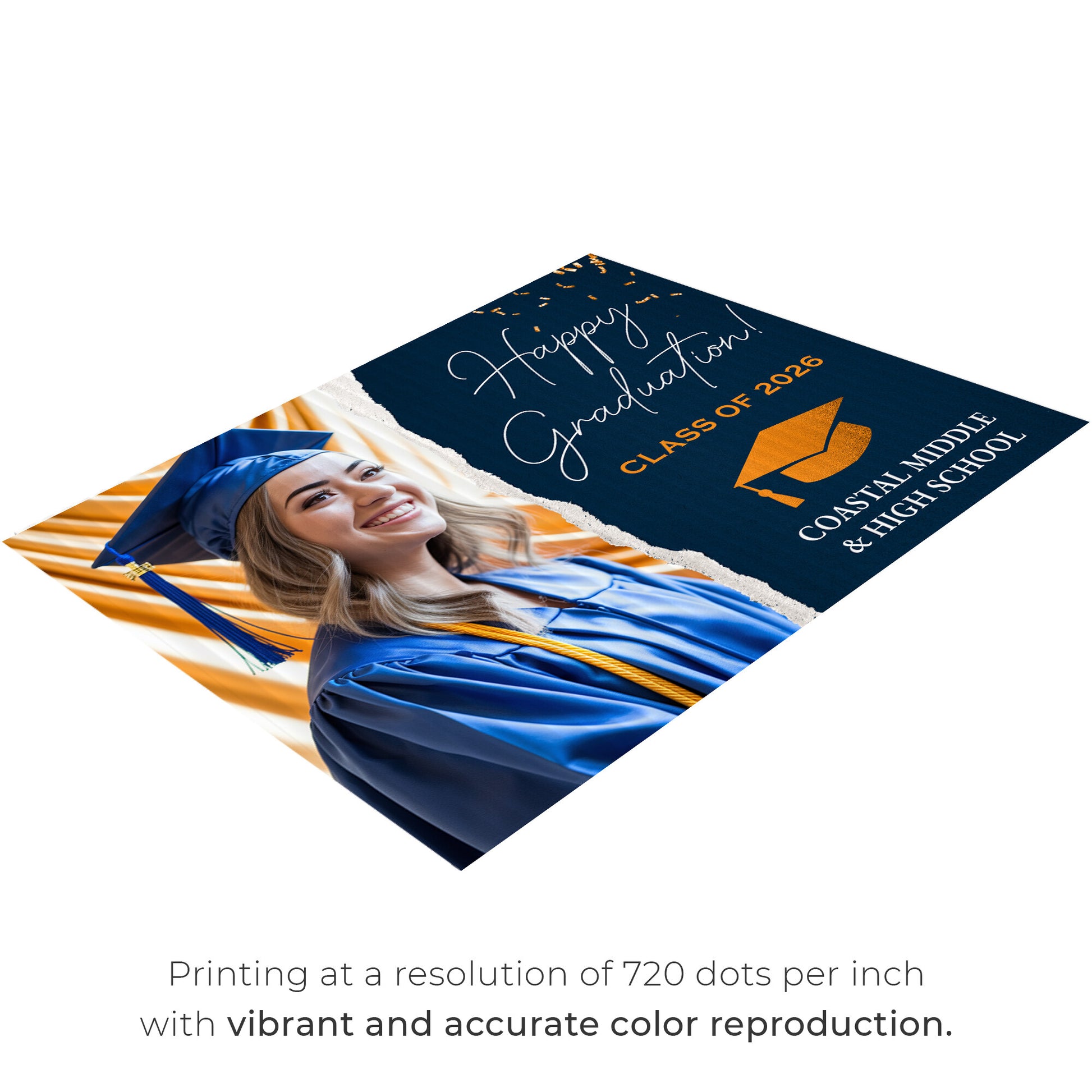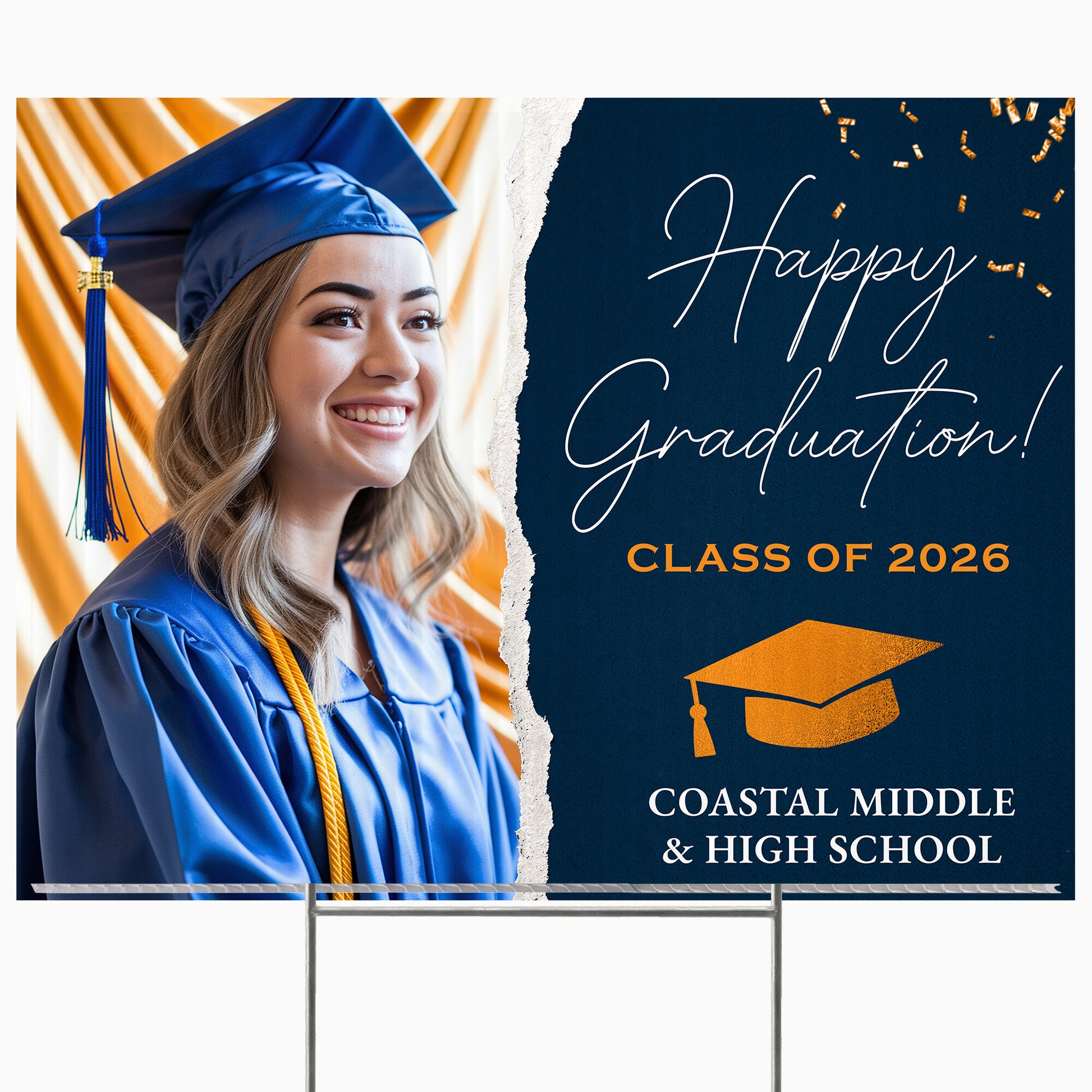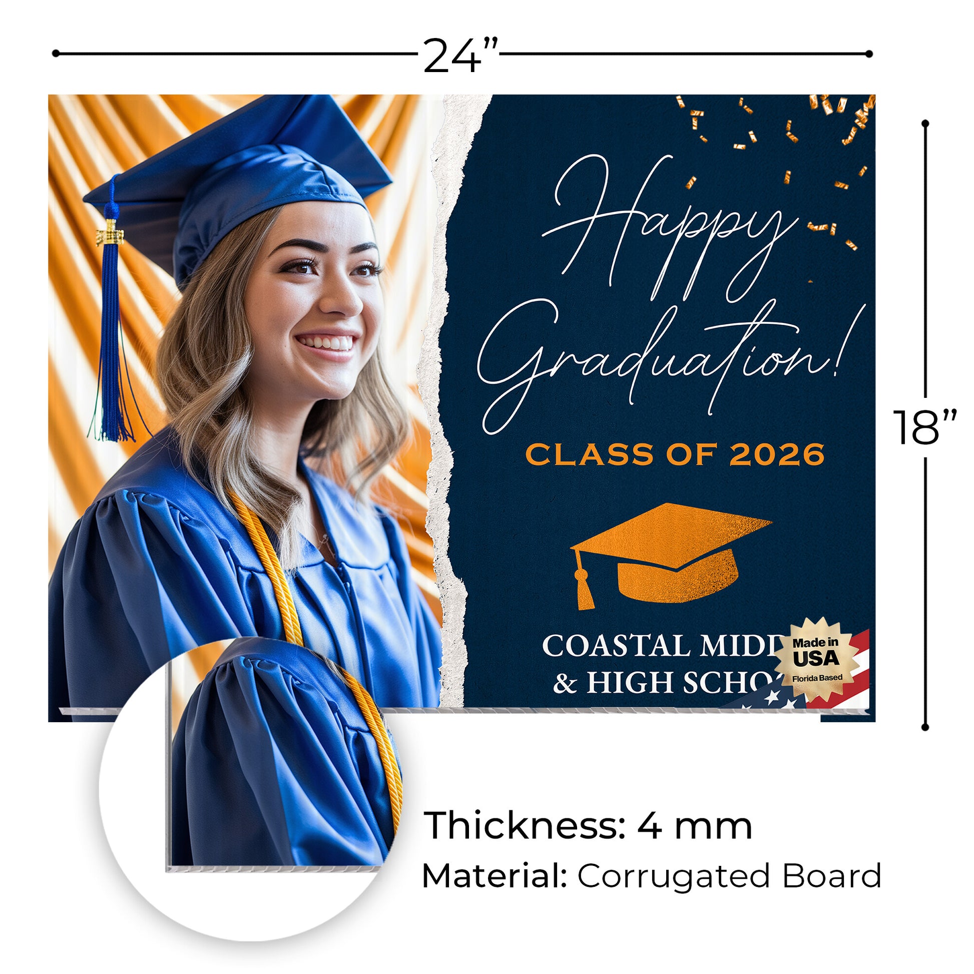 Customizable Design – Celebrate the achievements of Coastal Middle & High School graduates with personalized yard signs. Add the graduate's name, graduation year, and a congratulatory message to create a unique, custom tribute, making it easy for friends, family, and the community to recognize and honor their accomplishment.