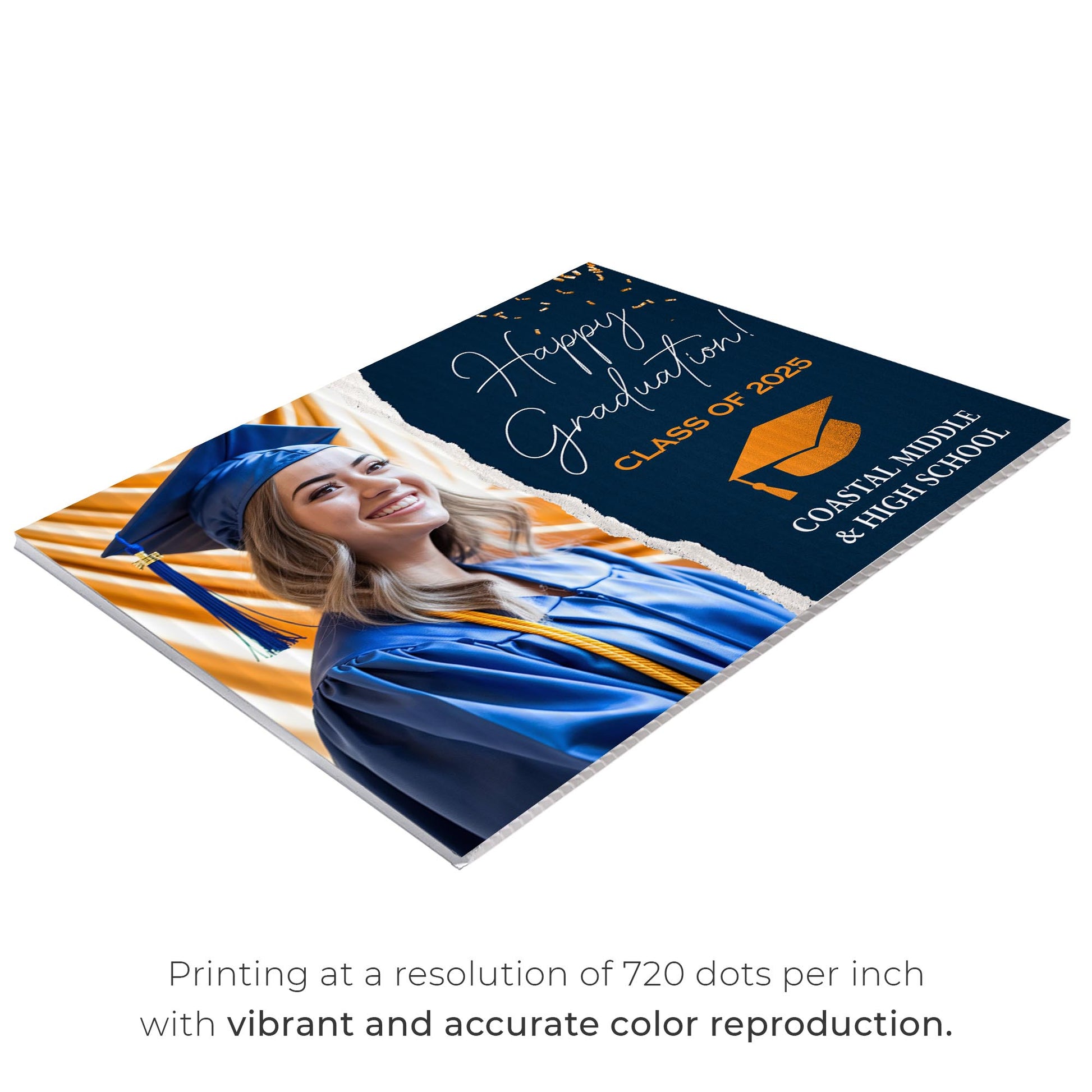 Vibrant Full-Color Printing – Make a statement with bold, full-color graphics printed on both sides of the sign. The eye-catching congratulatory message, along with the graduate's details, ensures visibility from every angle, helping to celebrate this special milestone in style.