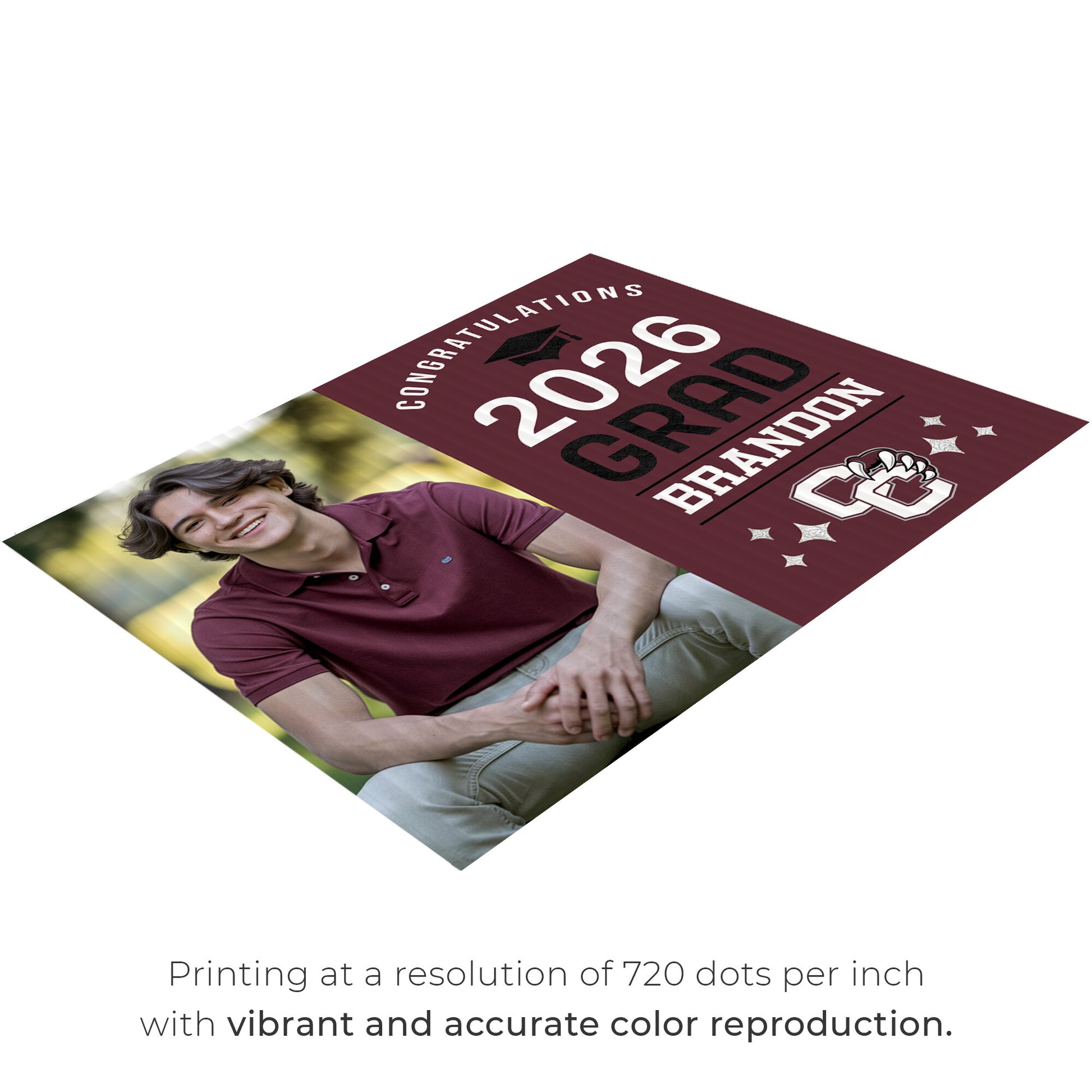 Vibrant Full-Color Printing – Make a statement with bold, full-color graphics printed on both sides of the sign. The eye-catching congratulatory message, along with the graduate's details, ensures visibility from every angle, helping to celebrate this special milestone in style.