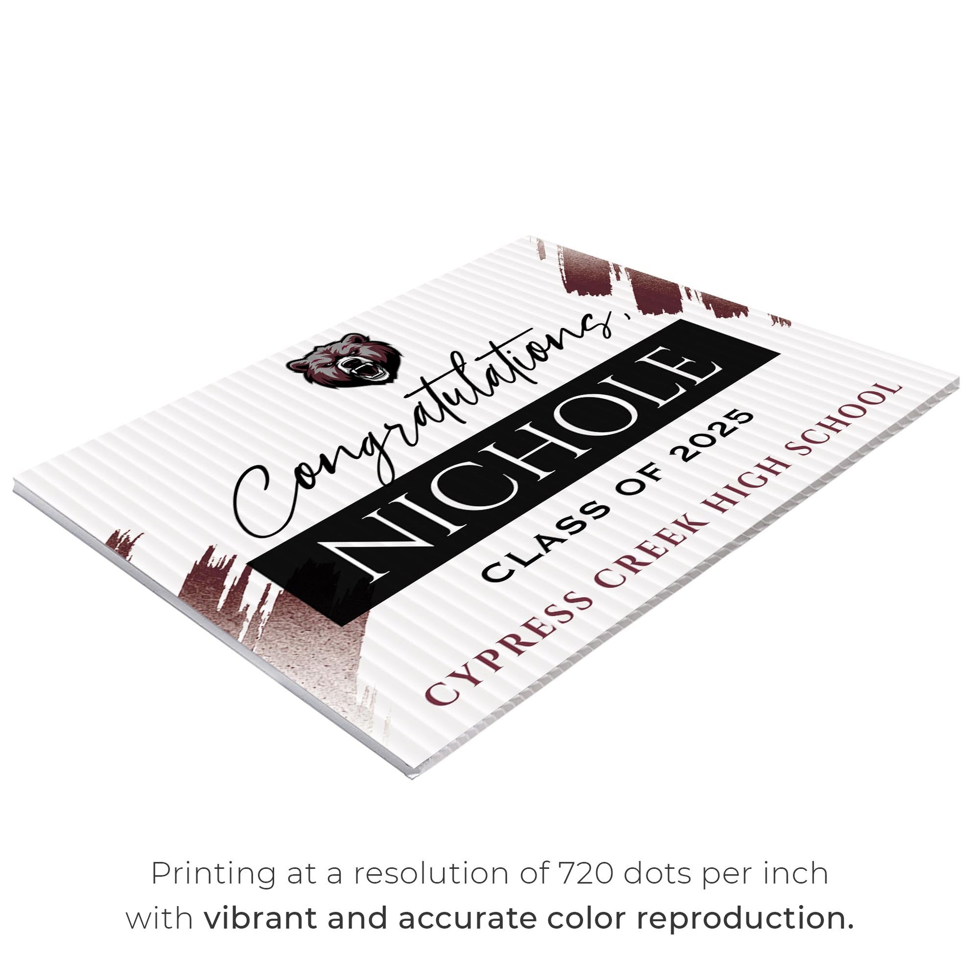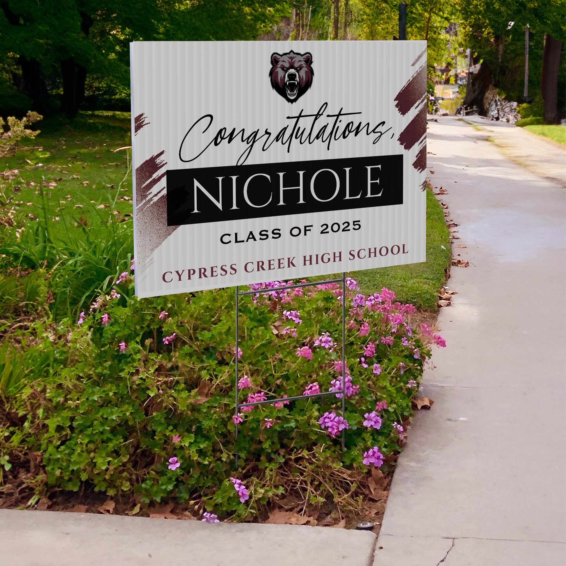 Customizable Design – Celebrate the achievements of Cypress Creek High School graduates with personalized yard signs. Add the graduate's name, graduation year, and a congratulatory message to create a unique, custom tribute, making it easy for friends, family, and the community to recognize and honor their accomplishment.
