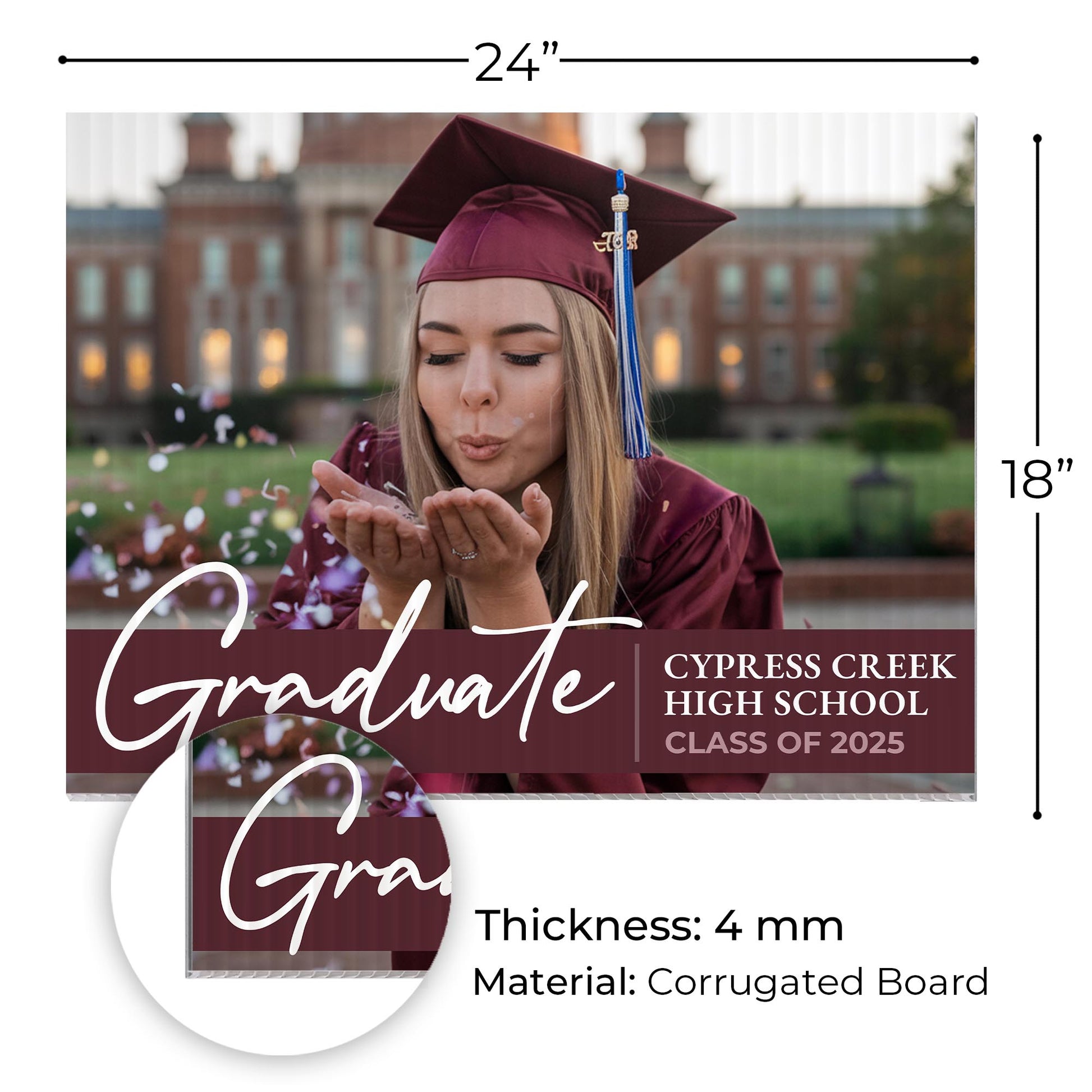 Customizable Design – Celebrate the achievements of Cypress Creek High School graduates with personalized yard signs. Add the graduate's name, graduation year, and a congratulatory message to create a unique, custom tribute, making it easy for friends, family, and the community to recognize and honor their accomplishment.