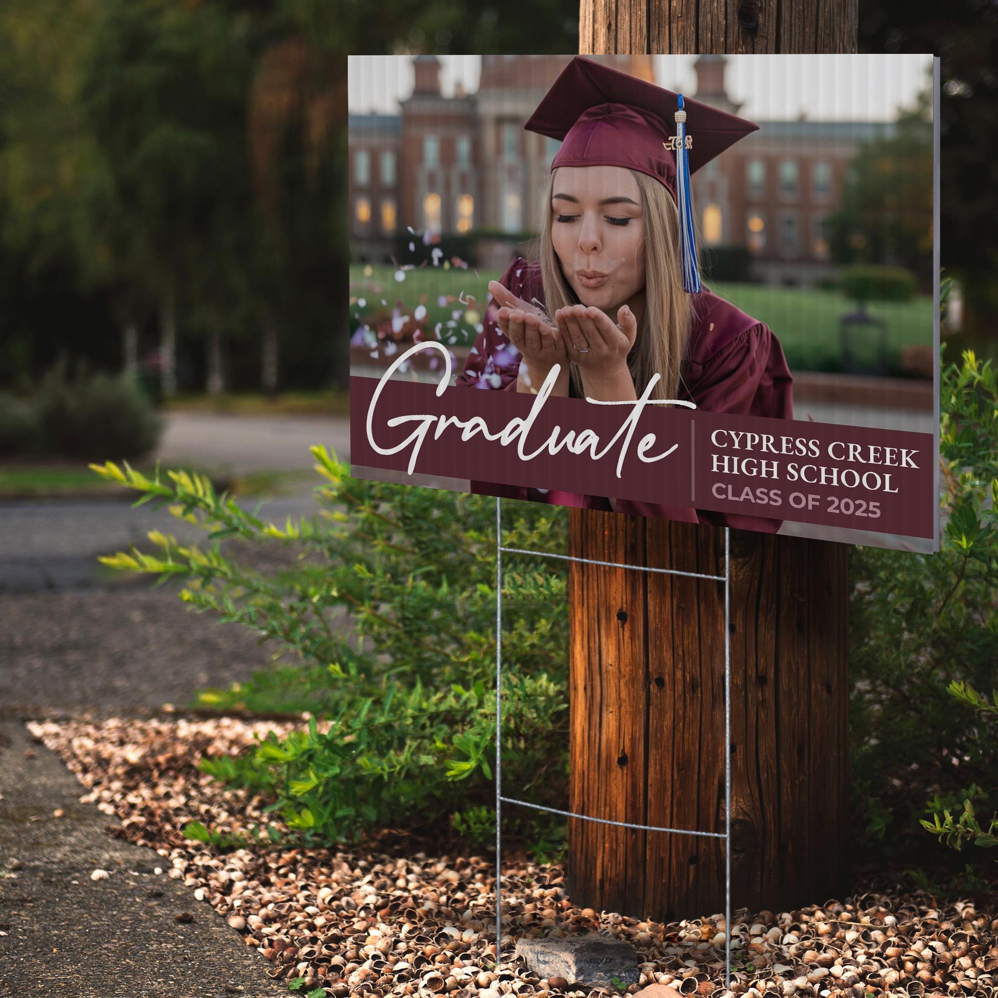 Commemorate this special achievement with our custom yard signs. Add your personalized design, complete your order, and let us handle the rest. Honor your graduate and make their day unforgettable with signs that stand out.