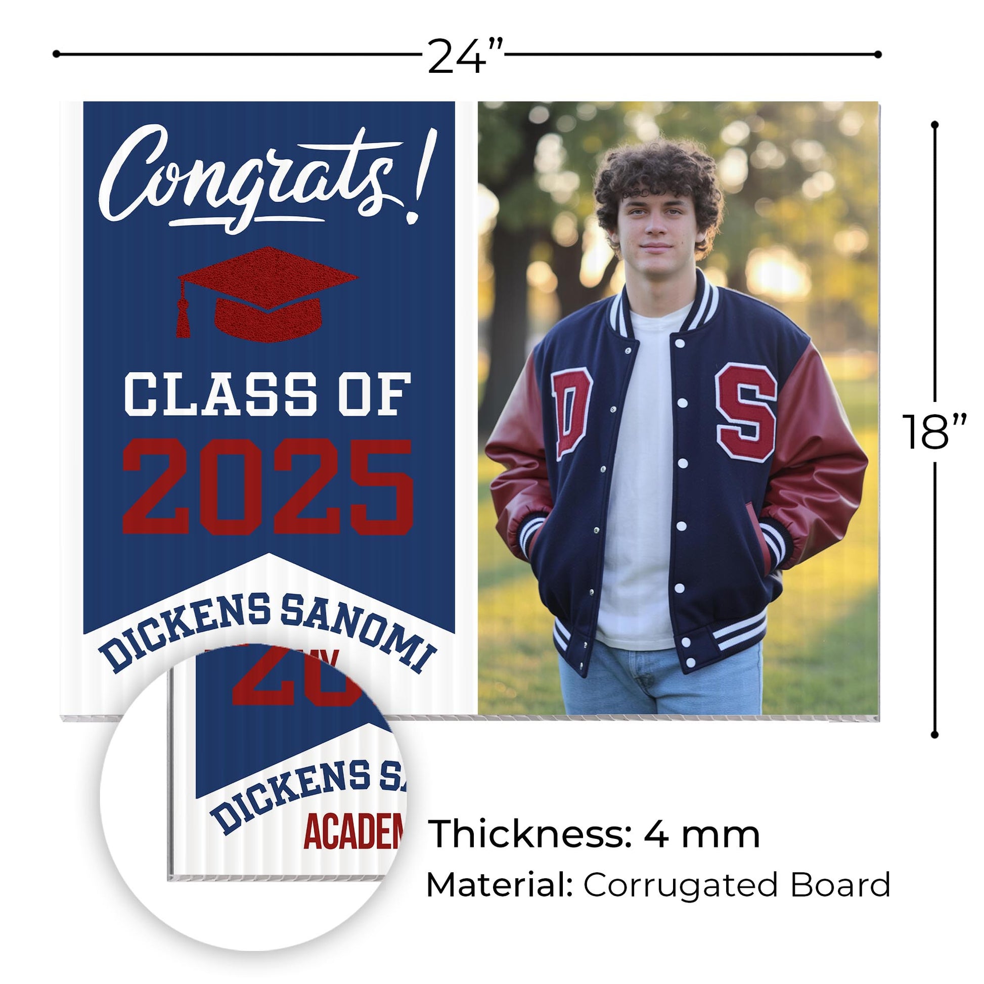 Customizable Design – Celebrate the accomplishments of Dickens Sanomi Academy graduates with personalized yard signs. Add the graduate’s name, graduation year, and a congratulatory message to create a one-of-a-kind tribute. It’s a stylish and heartfelt way for friends, family, and the community to show their pride and support.