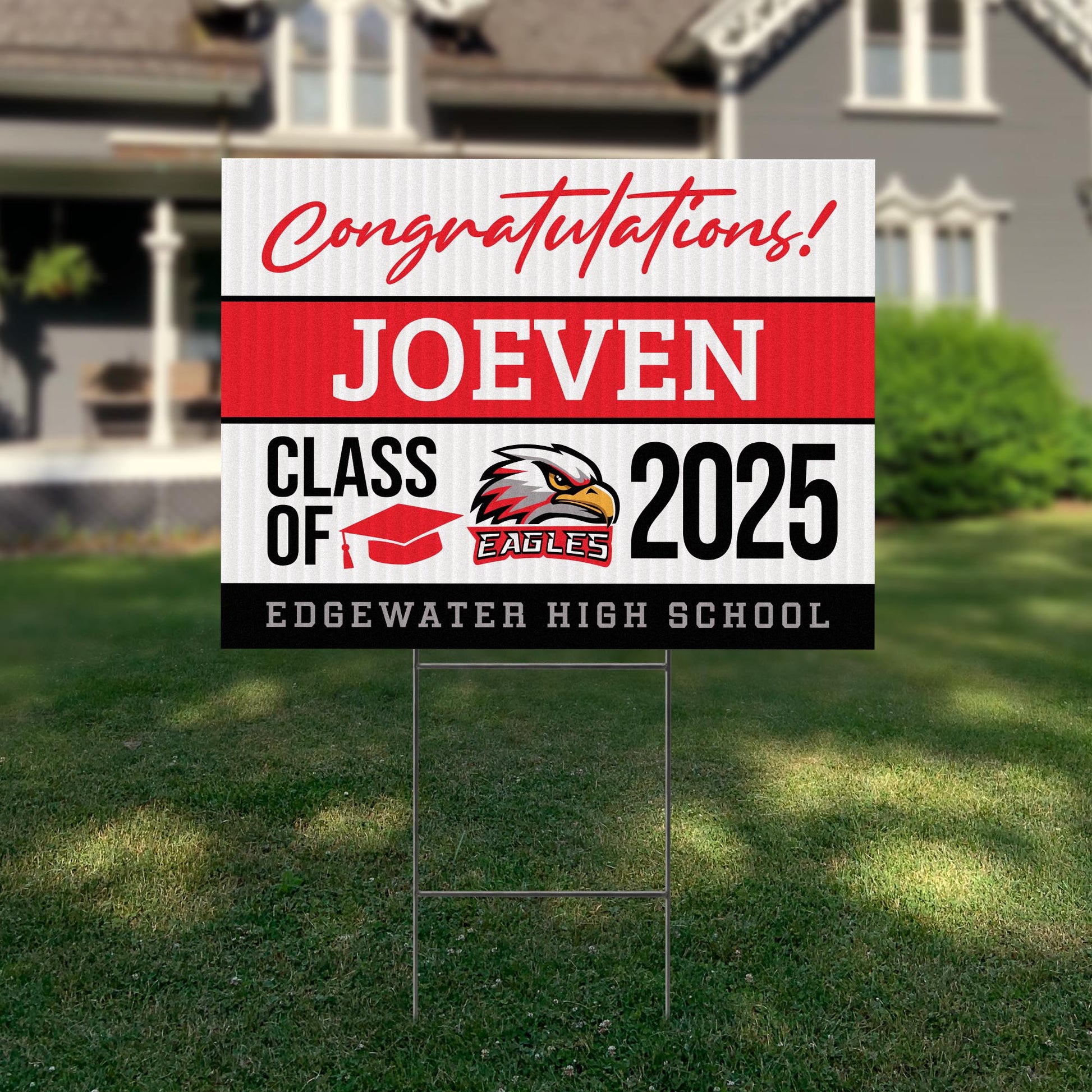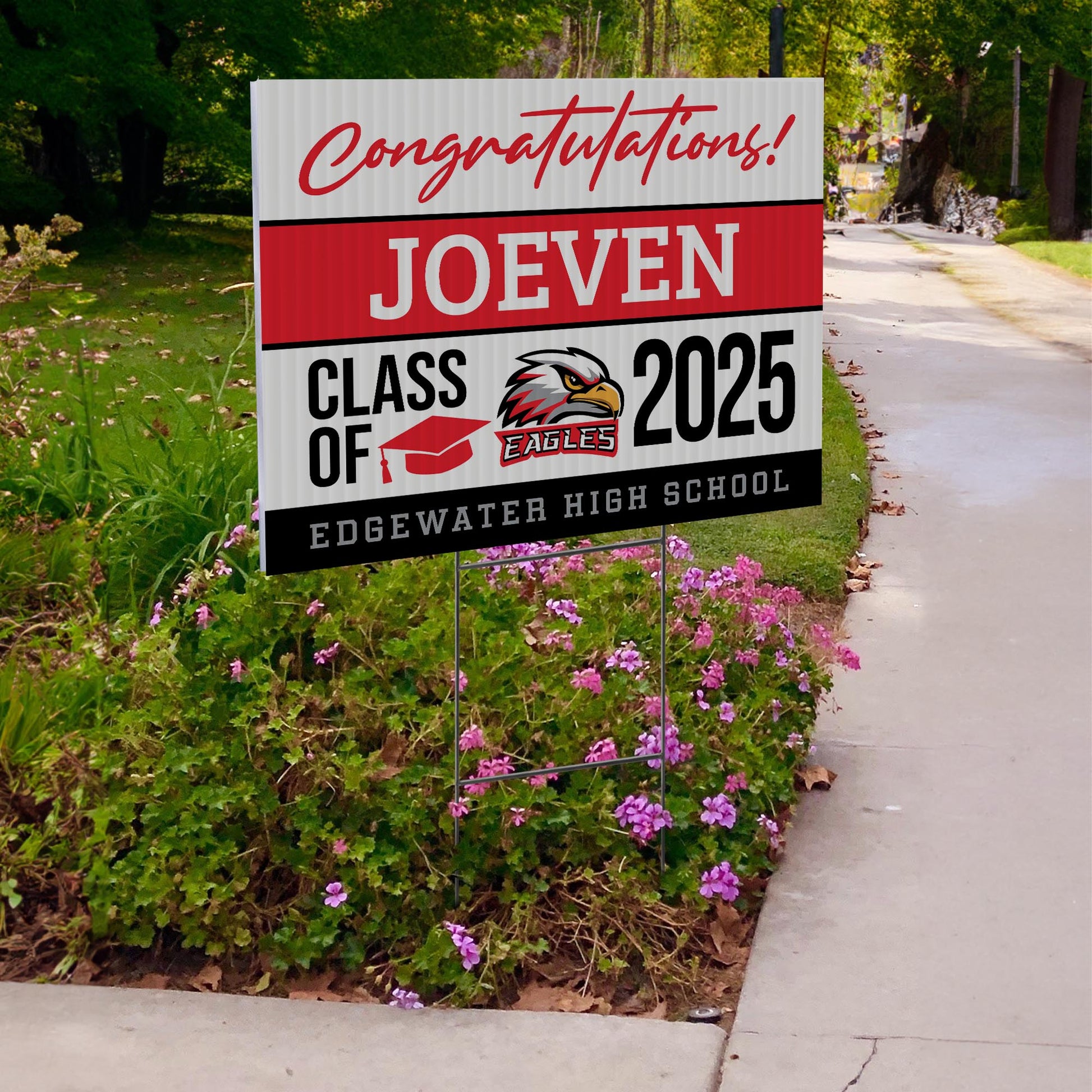 Customizable Design – Celebrate the accomplishments of Edgewater High School graduates with personalized yard signs. Add the graduate’s name, graduation year, and a congratulatory message to create a one-of-a-kind tribute. It’s a stylish and heartfelt way for friends, family, and the community to show their pride and support.