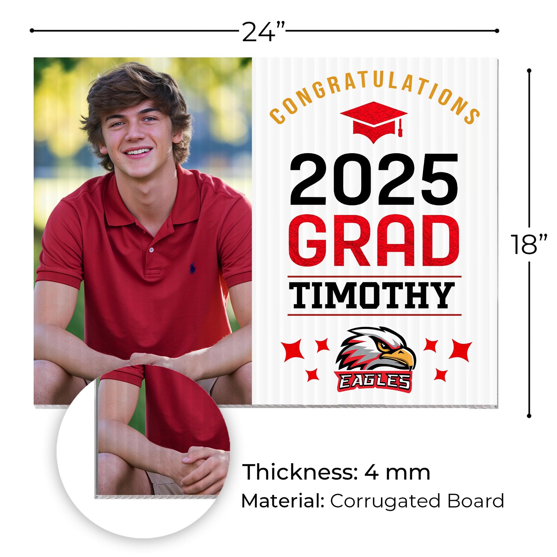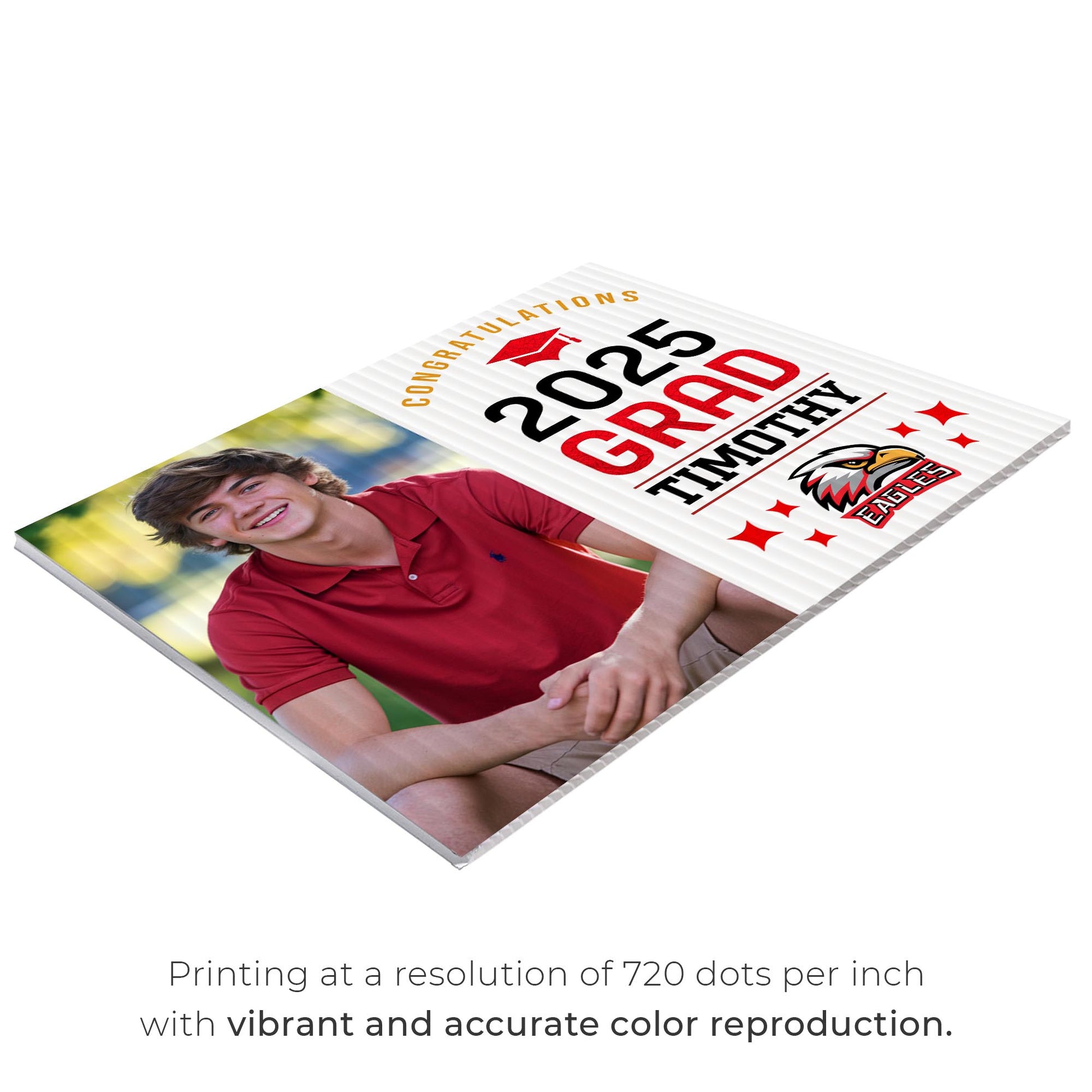 Vibrant Full-Color Printing – With full-color graphics printed on both sides, your message will stand out from any angle. The custom congratulatory note and grad details make sure this moment doesn’t go unnoticed.