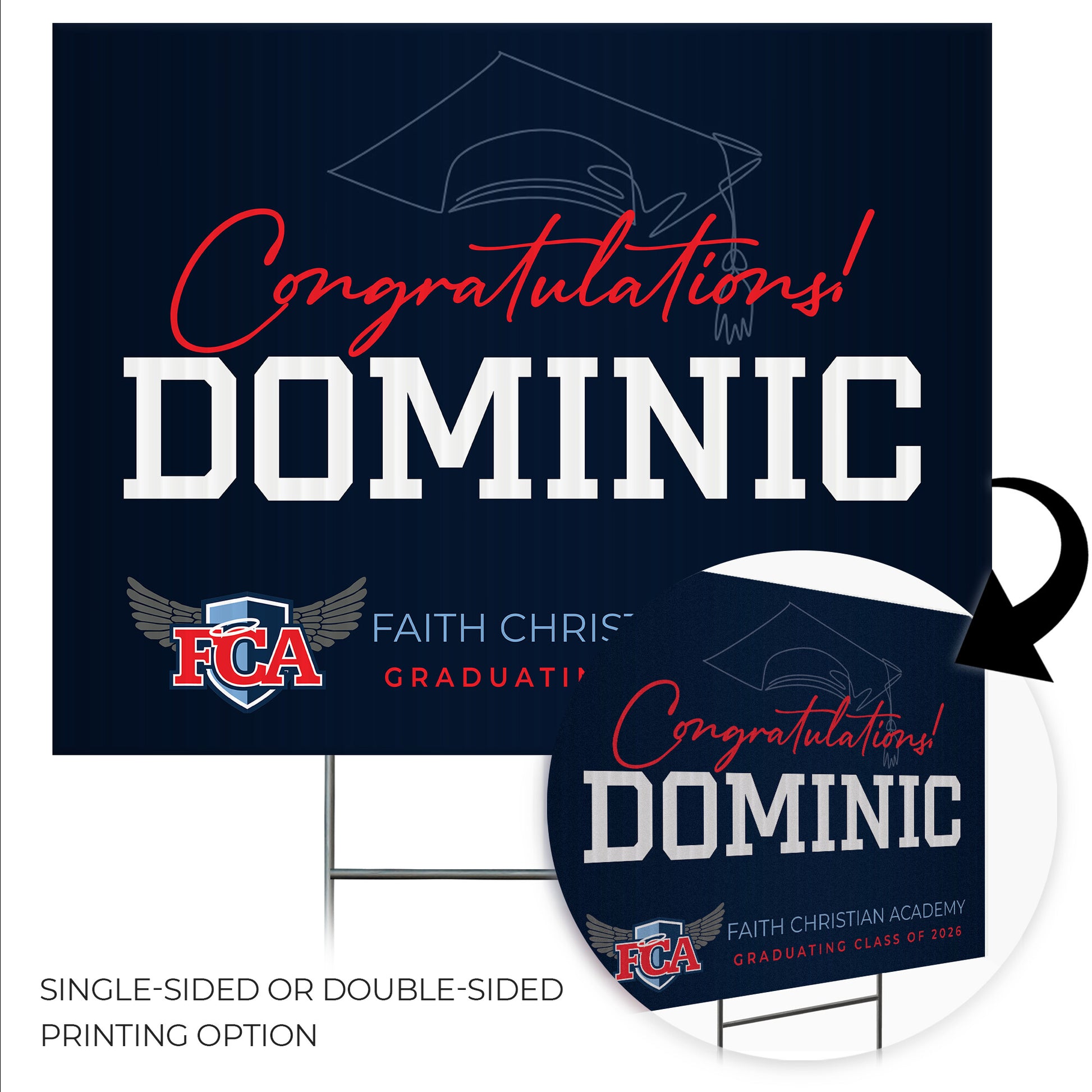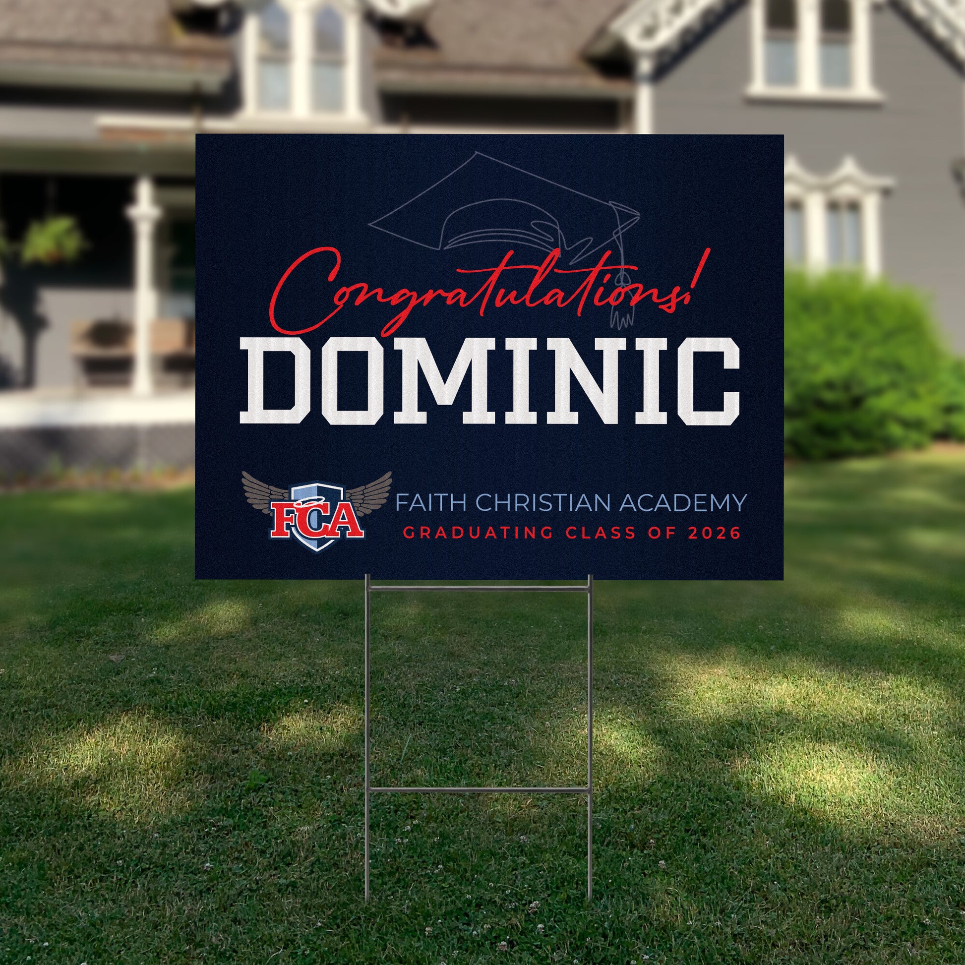 Customizable Design - Celebrate the achievements of Faith Christian Academy graduates with personalized yard signs. Add the graduate's name, graduation year, and a congratulatory message to create a unique, custom tribute, making it easy for friends, family, and the community to recognize and honor their accomplishment.