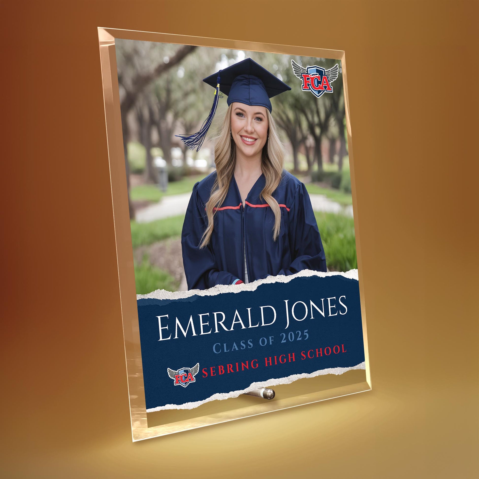 Customizable Design – Celebrate the achievements ofFaith Christian Academy graduates with personalized glass plaques. Add the graduate's name, graduation year, and a congratulatory message to create a unique, custom tribute, making it easy for friends, family, and the community to recognize and honor their accomplishment.