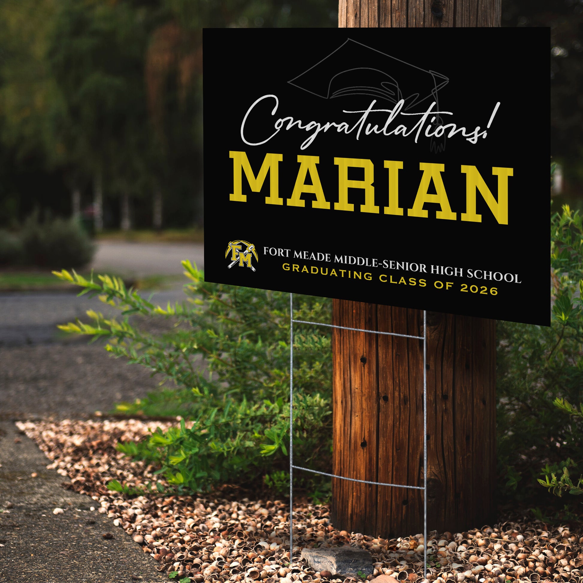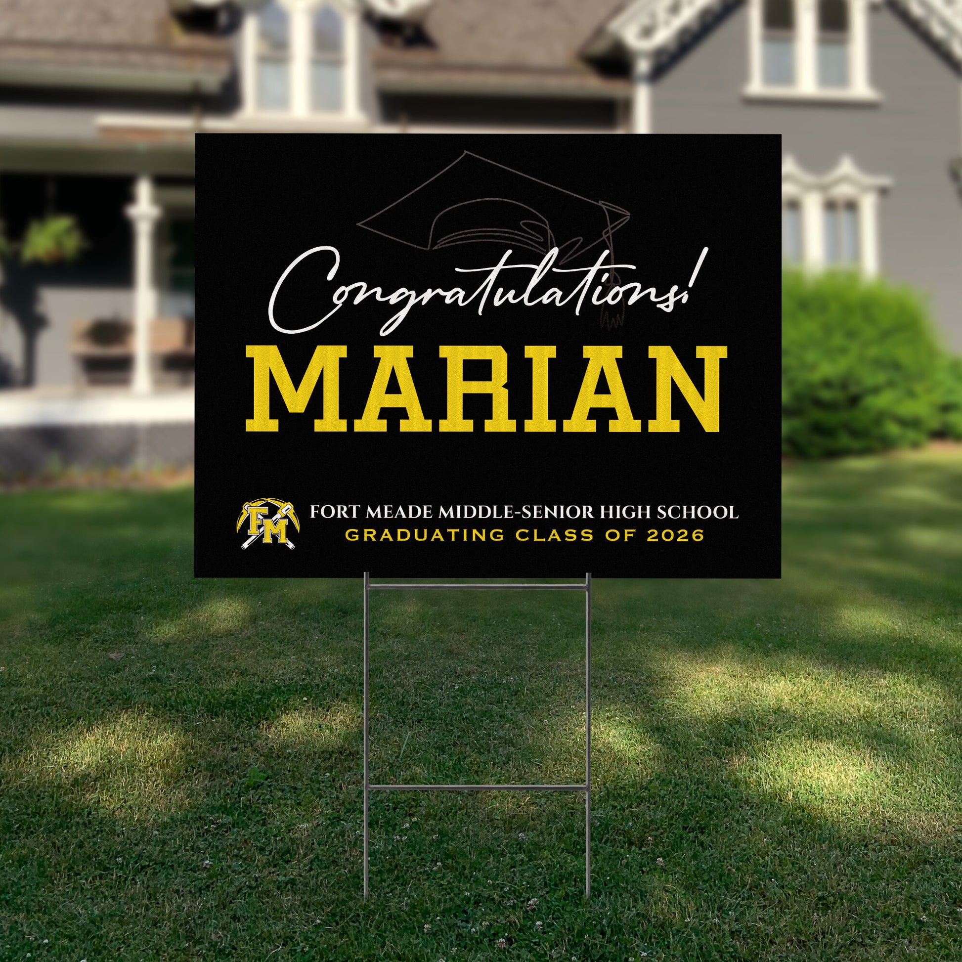 Customizable Design – Celebrate the achievements of Fort Meade Middle-Senior High School graduates with personalized yard signs. Add the graduate's name, graduation year, and a congratulatory message to create a unique, custom tribute, making it easy for friends, family, and the community to recognize and honor their accomplishment.
