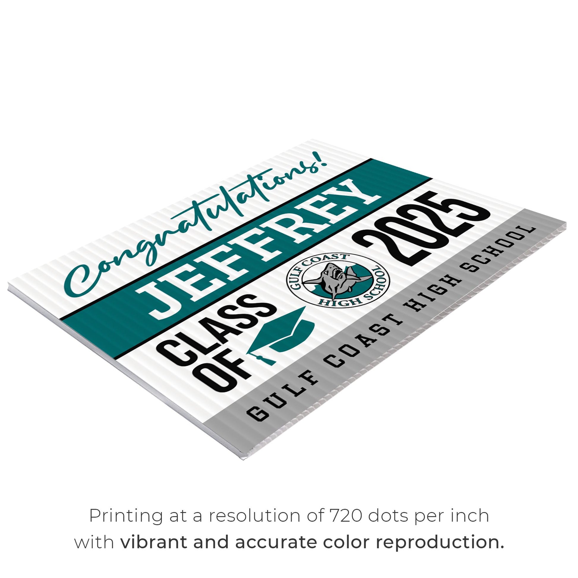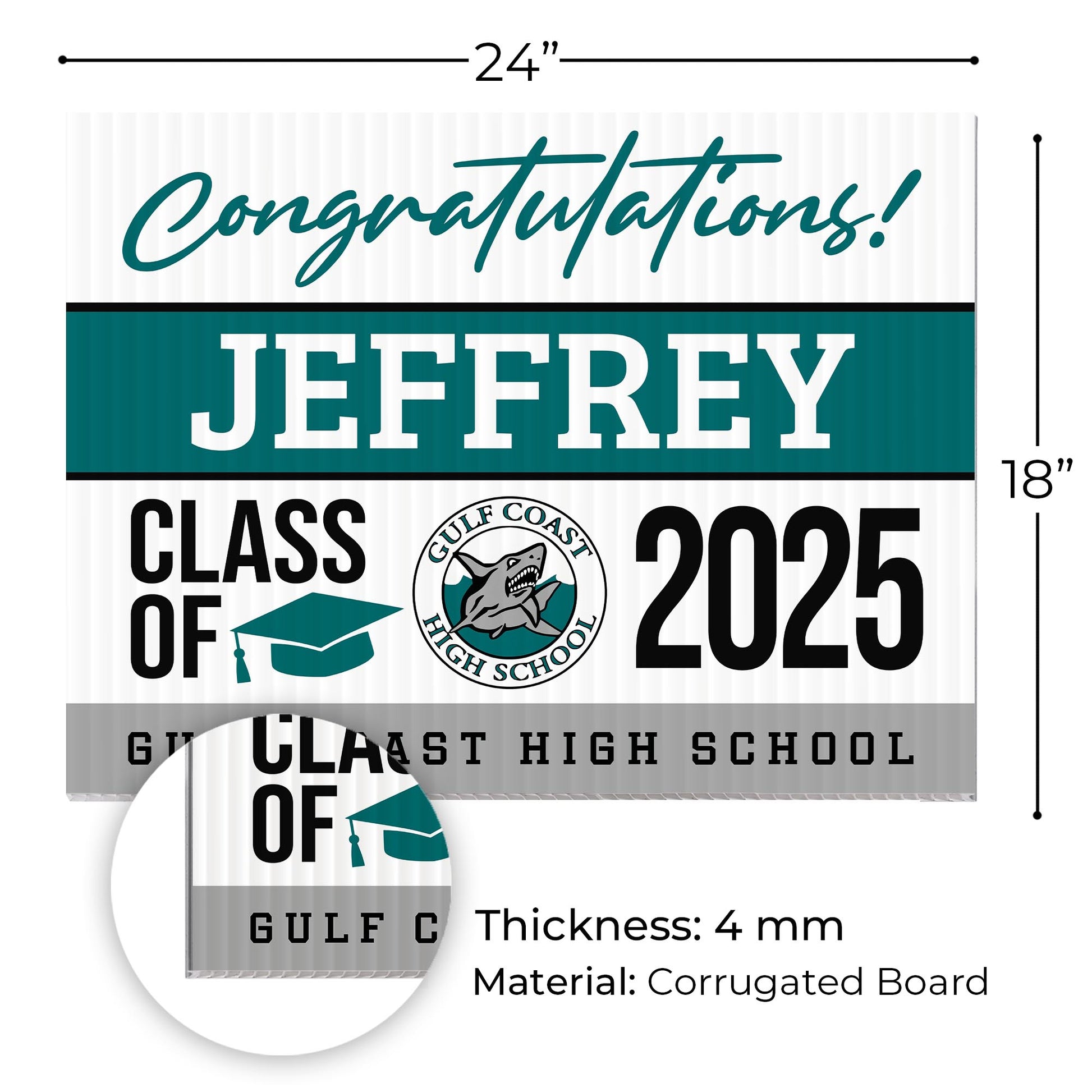 Customizable Design – Celebrate the achievements of Gulf Coast High School graduates with personalized yard signs. Add the graduate's name, graduation year, and a congratulatory message to create a unique, custom tribute, making it easy for friends, family, and the community to recognize and honor their accomplishment.