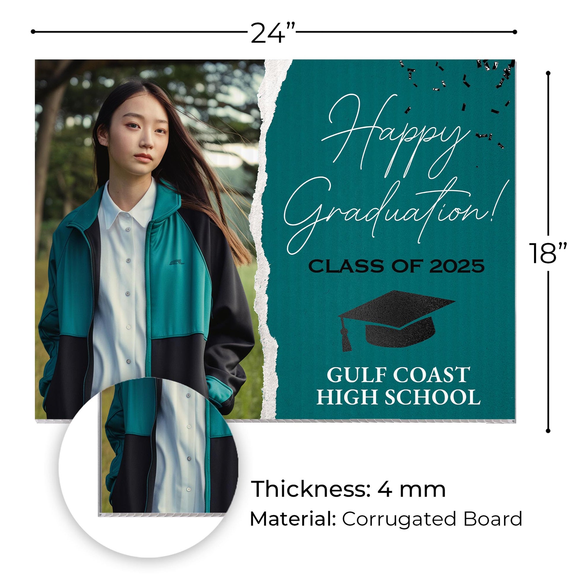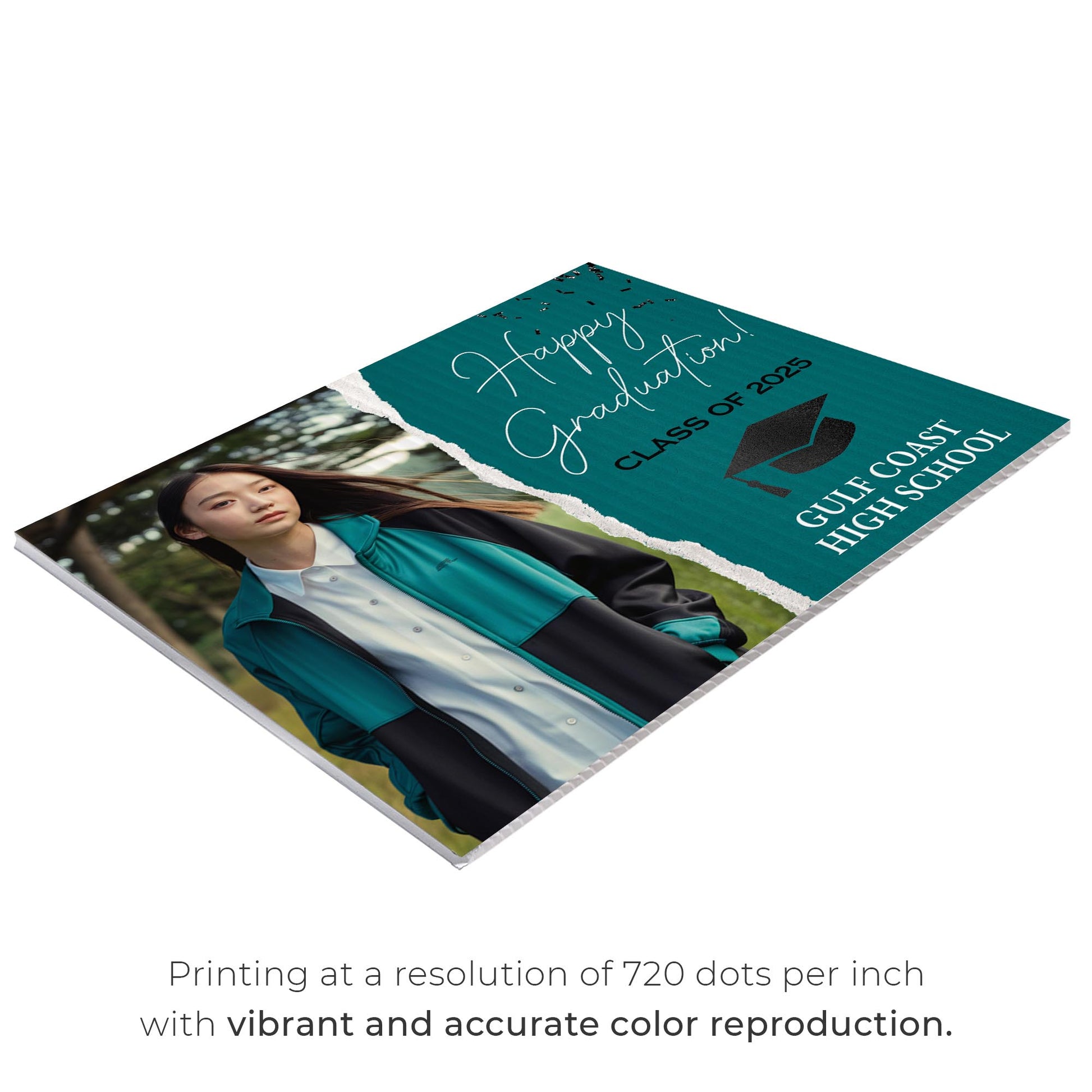 Vibrant Full-Color Printing – Make a statement with bold, full-color graphics printed on both sides of the sign. The eye-catching congratulatory message, along with the graduate's details, ensures visibility from every angle, helping to celebrate this special milestone in style.