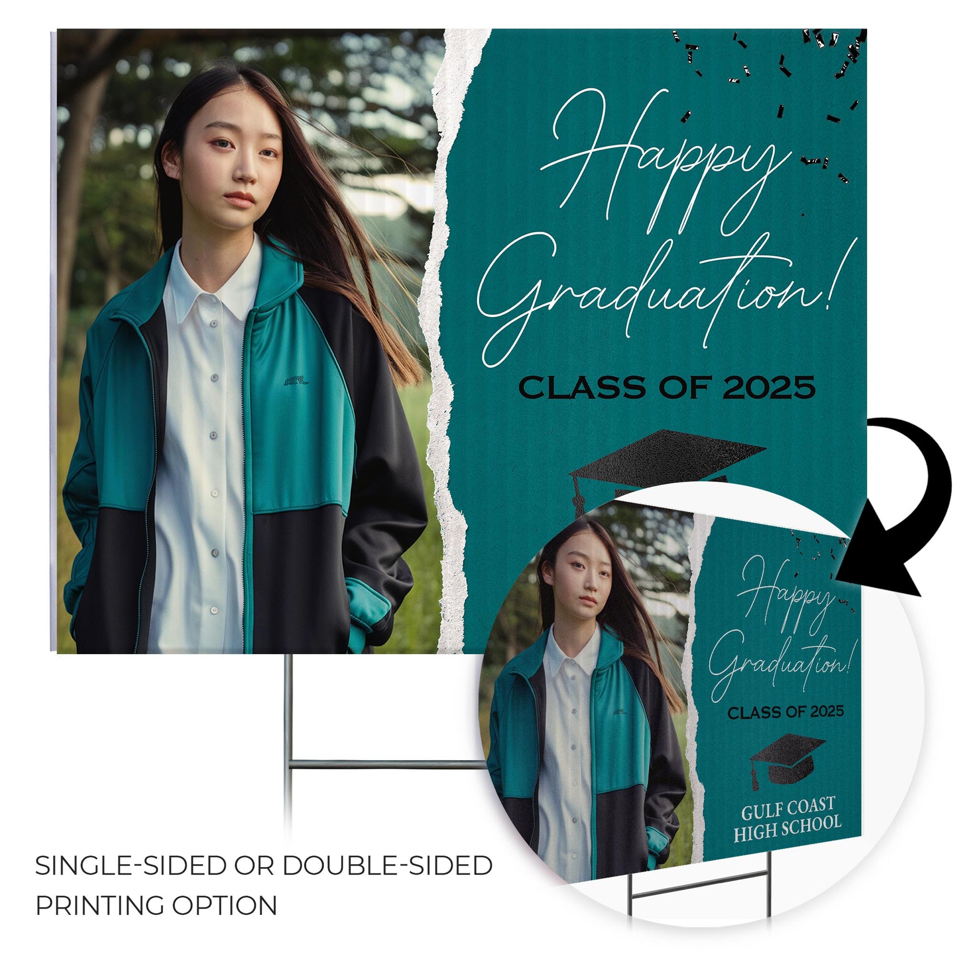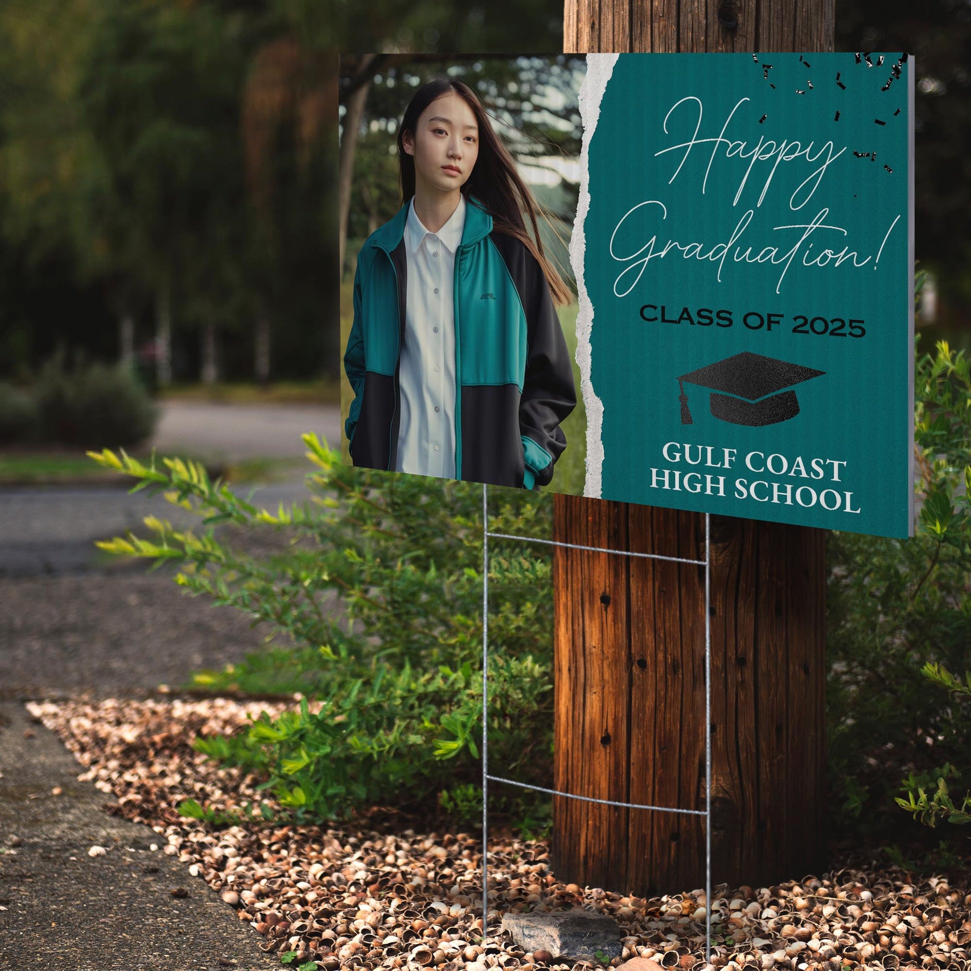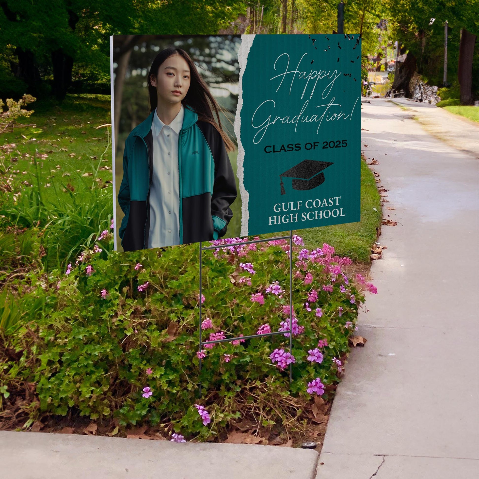 Commemorate this special achievement with our custom yard signs. Add your personalized design, complete your order, and let us handle the rest. Honor your graduate and make their day unforgettable with signs that stand out.