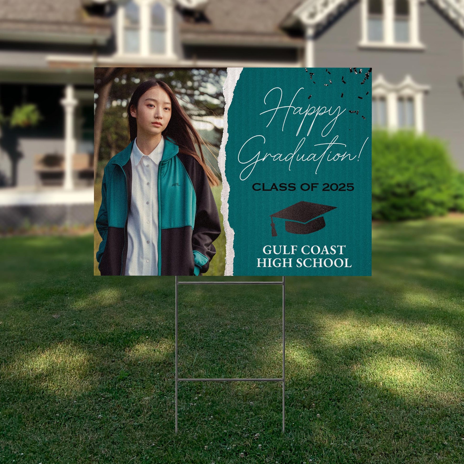 Customizable Design – Celebrate the achievements of Gulf Coast High School graduates with personalized yard signs. Add the graduate's name, graduation year, and a congratulatory message to create a unique, custom tribute, making it easy for friends, family, and the community to recognize and honor their accomplishment.