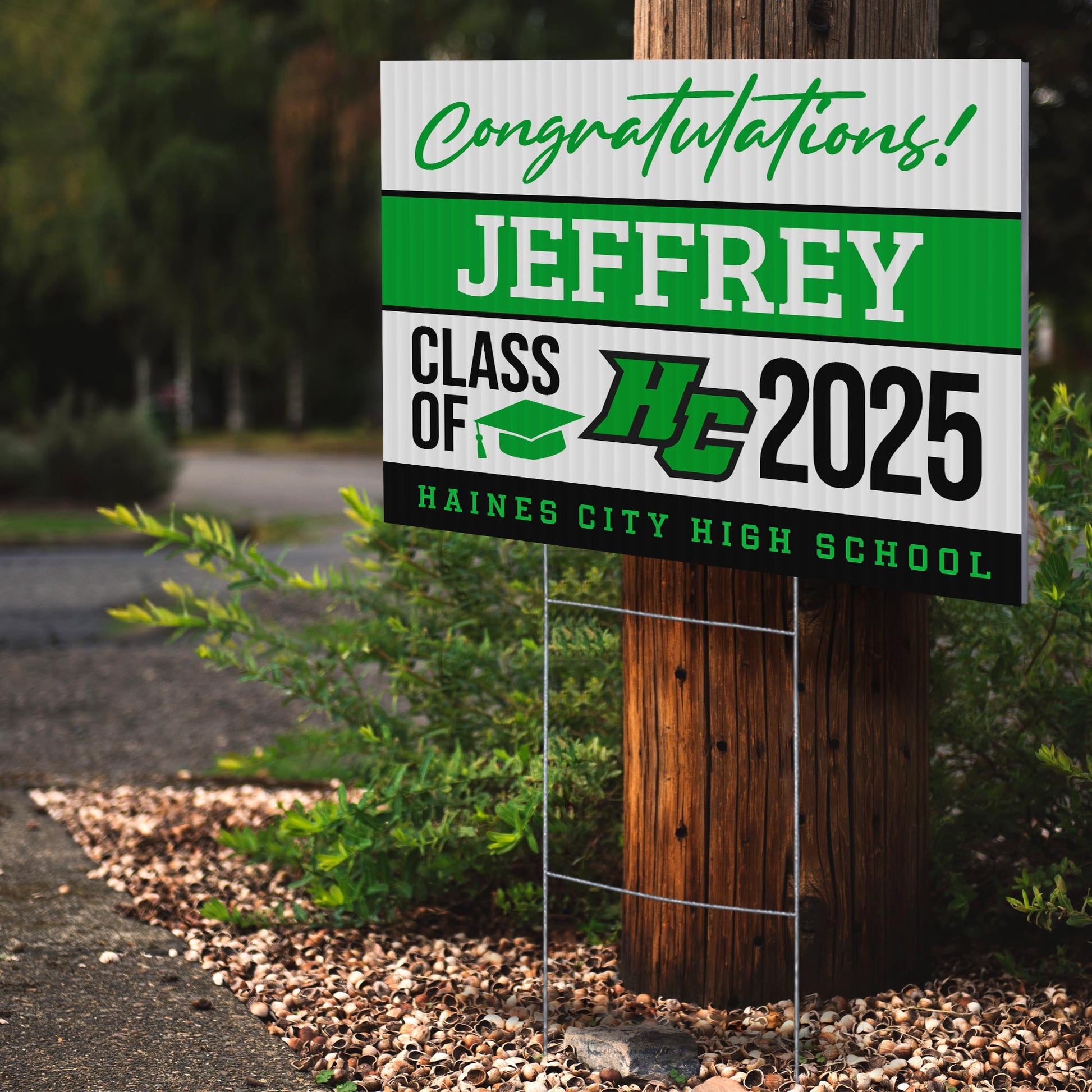 Customizable Design – Celebrate the achievements of Haines City Senior High School graduates with personalized yard signs. Add the graduate's name, graduation year, and a congratulatory message to create a unique, custom tribute, making it easy for friends, family, and the community to recognize and honor their accomplishment.