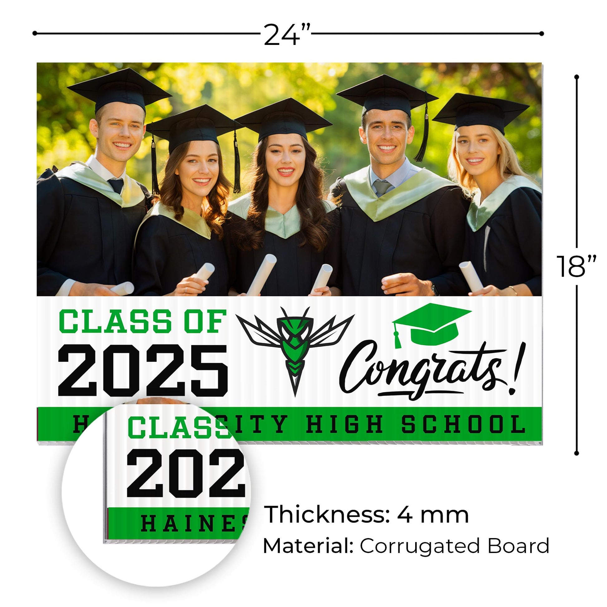 Weatherproof & Durable – Crafted from high-quality corrugated plastic, our yard signs are built to endure all weather conditions. Whether rain, sun, or wind, these signs retain their vibrant colors, offering a reliable and lasting way to showcase pride in Haines City Senior High School graduates.