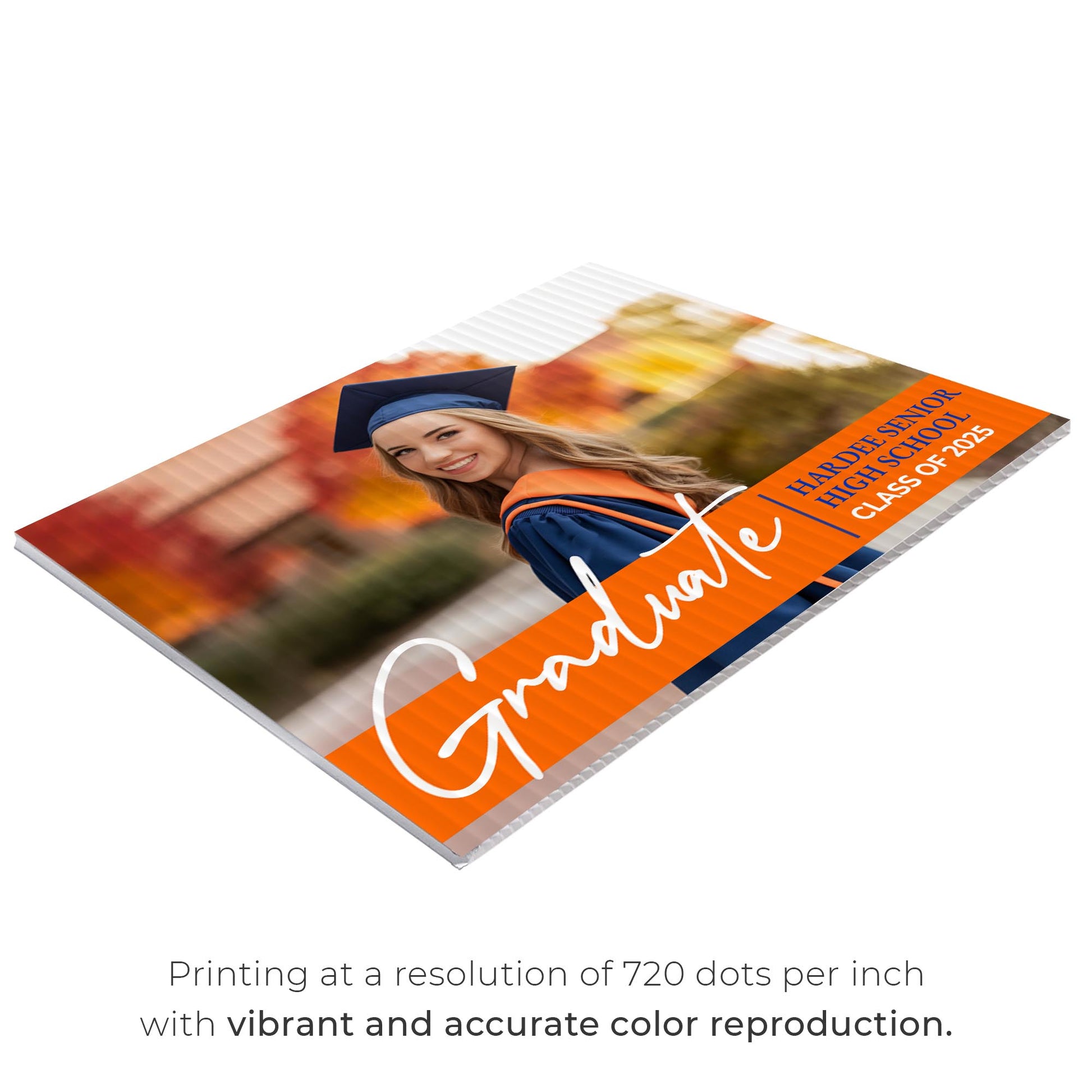 Vibrant Full-Color Printing – Make a statement with bold, full-color graphics printed on both sides of the sign. The eye-catching congratulatory message, along with the graduate's details, ensures visibility from every angle, helping to celebrate this special milestone in style.