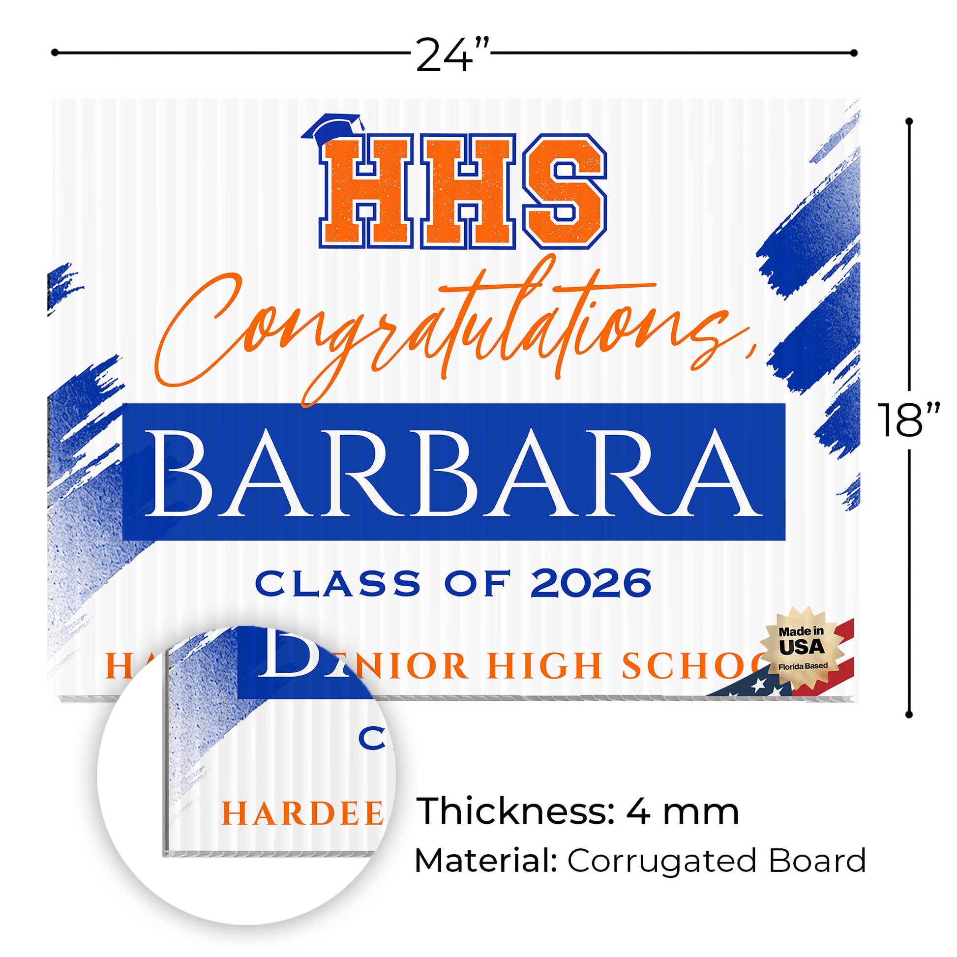 Weatherproof & Durable – Crafted from high-quality corrugated plastic, our yard signs are built to endure all weather conditions. Whether rain, sun, or wind, these signs retain their vibrant colors, offering a reliable and lasting way to showcase pride in Hardee Senior High School graduates.