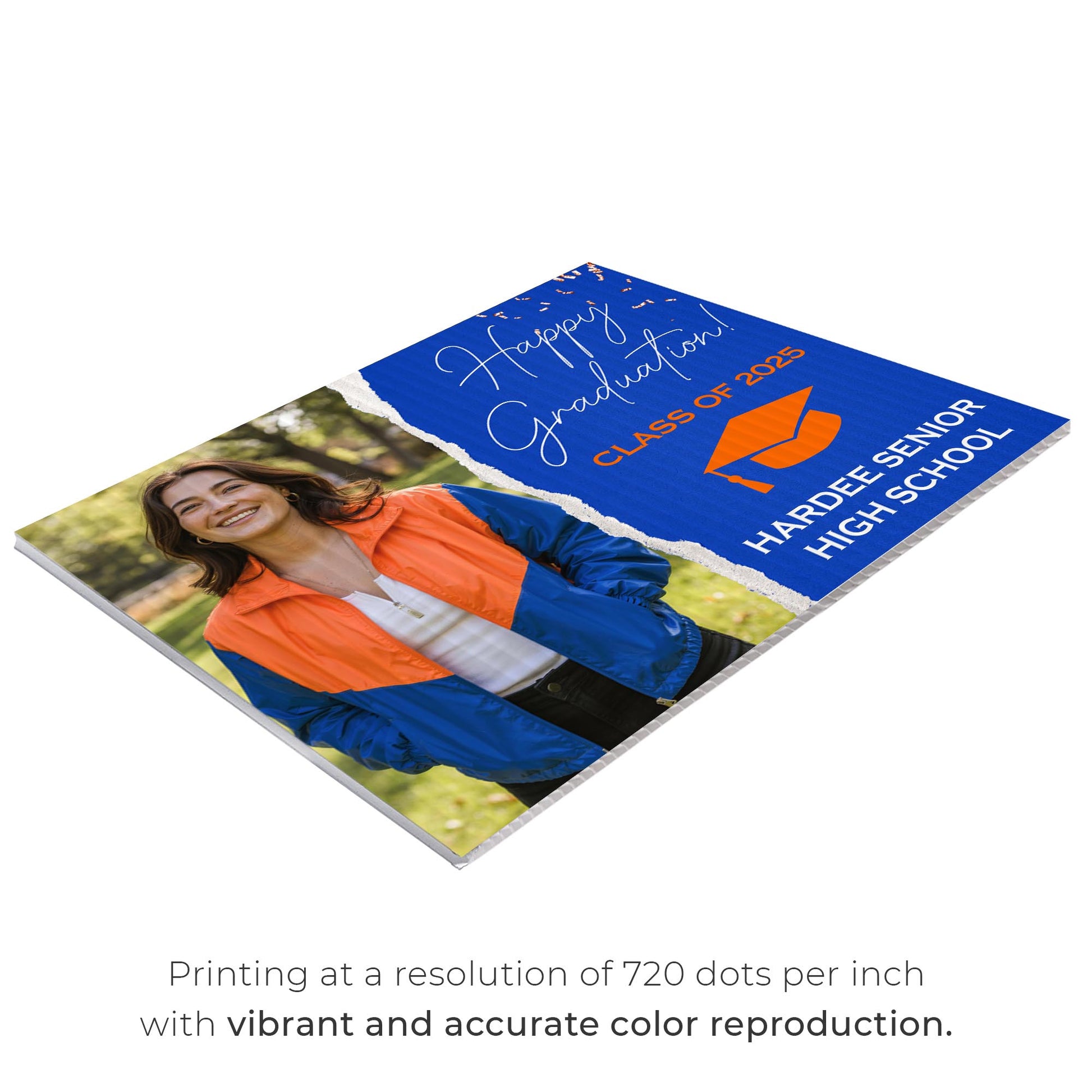 Vibrant Full-Color Printing – Make a statement with bold, full-color graphics printed on both sides of the sign. The eye-catching congratulatory message, along with the graduate's details, ensures visibility from every angle, helping to celebrate this special milestone in style.