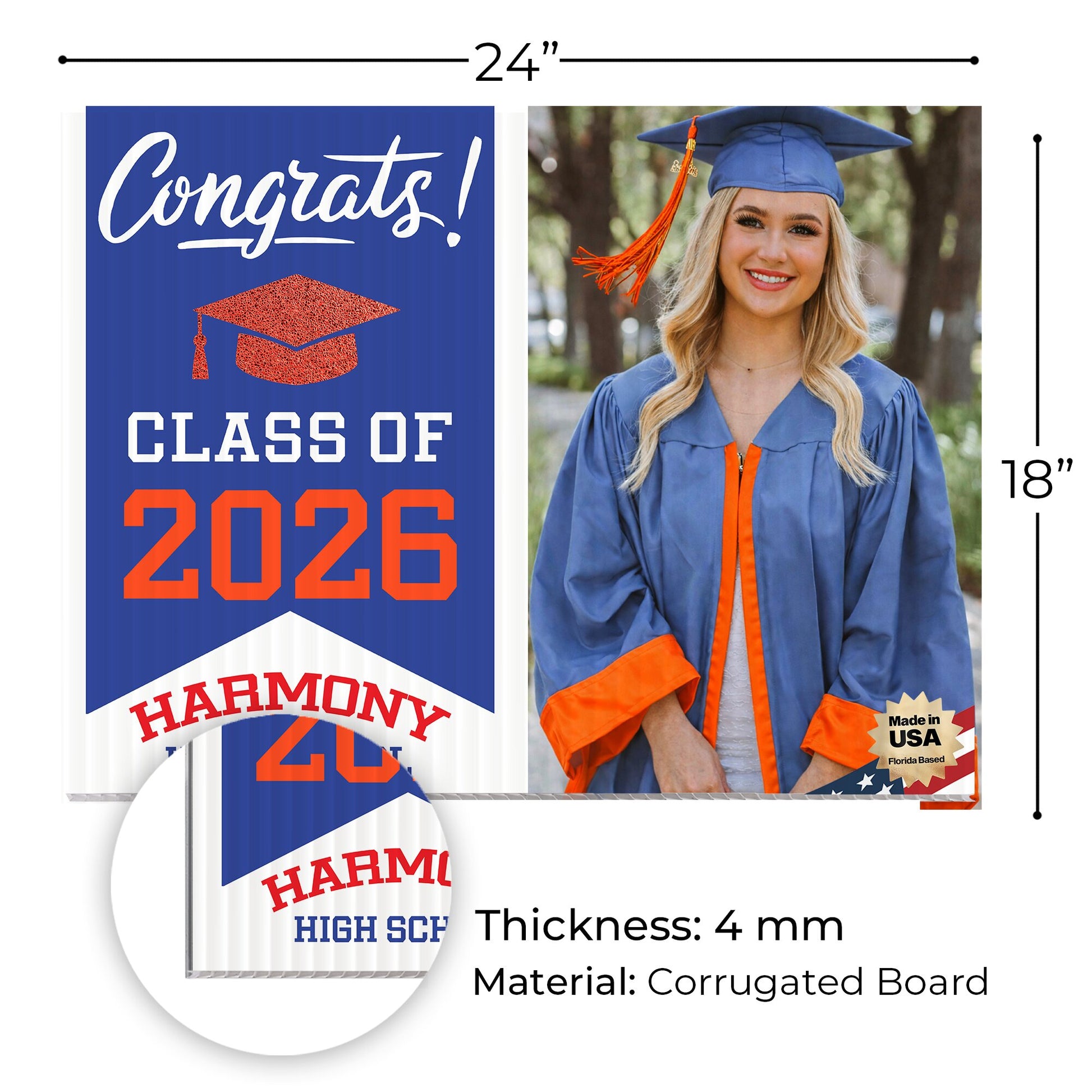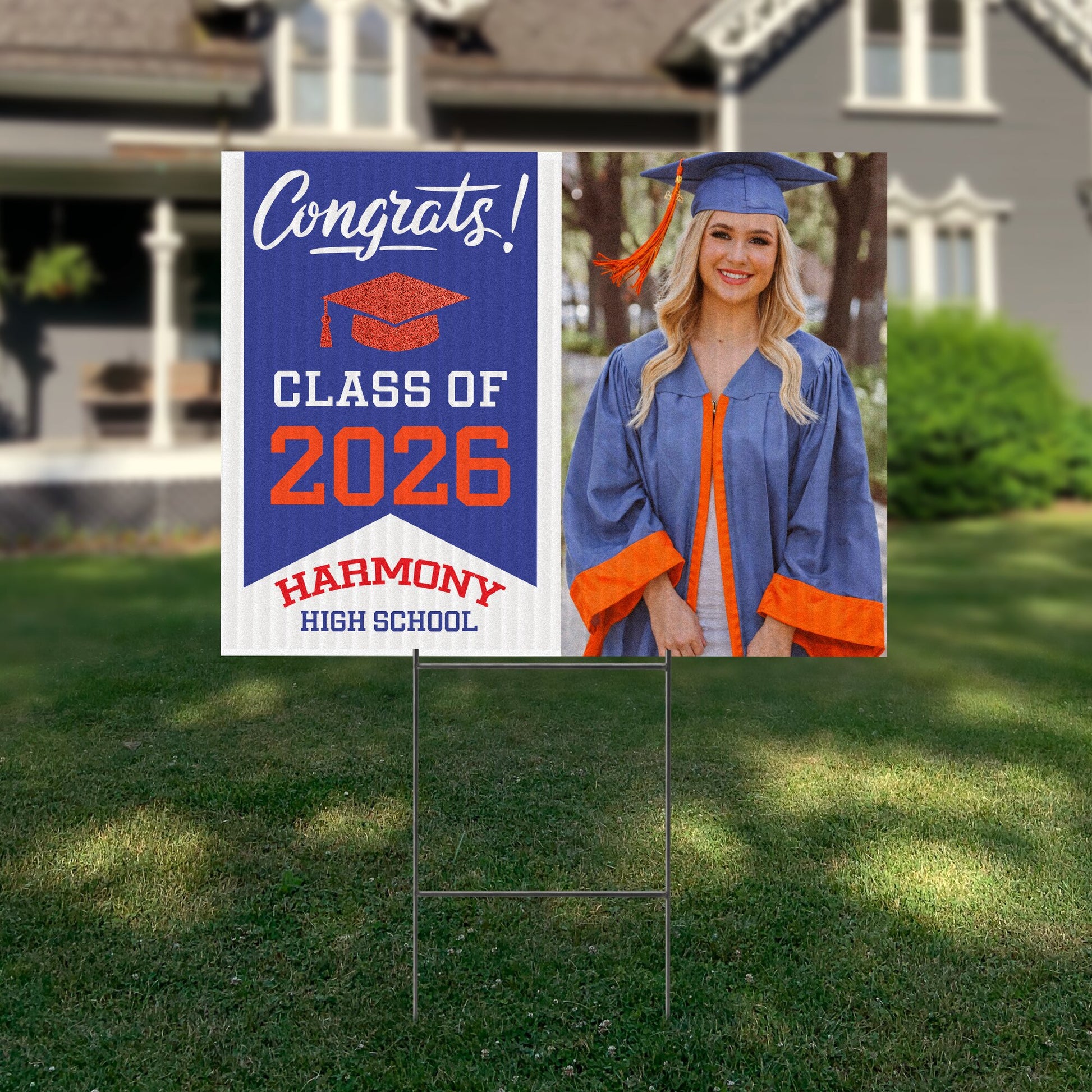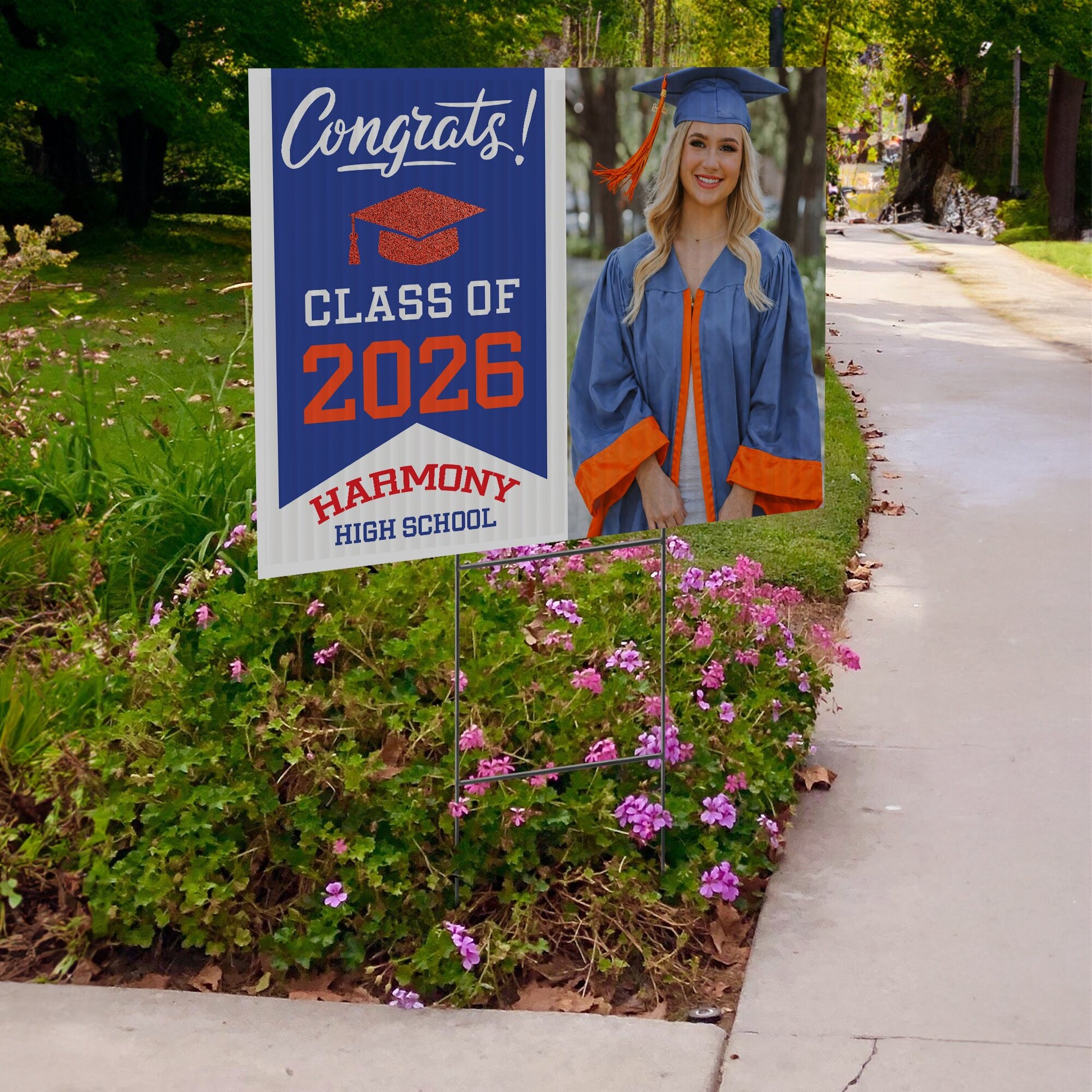 Customizable Design – Celebrate the accomplishments of Harmony High School graduates with personalized yard signs. Add the graduate’s name, graduation year, and a congratulatory message to create a one-of-a-kind tribute. It’s a stylish and heartfelt way for friends, family, and the community to show their pride and support.