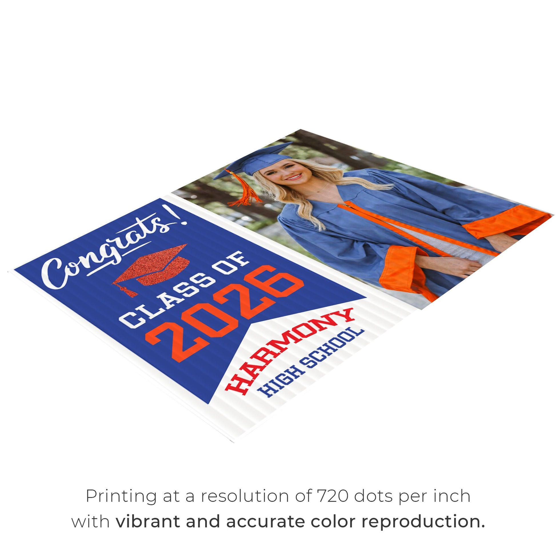 Vibrant Full-Color Printing – With full-color graphics printed on both sides, your message will stand out from any angle. The custom congratulatory note and grad details make sure this moment doesn’t go unnoticed.