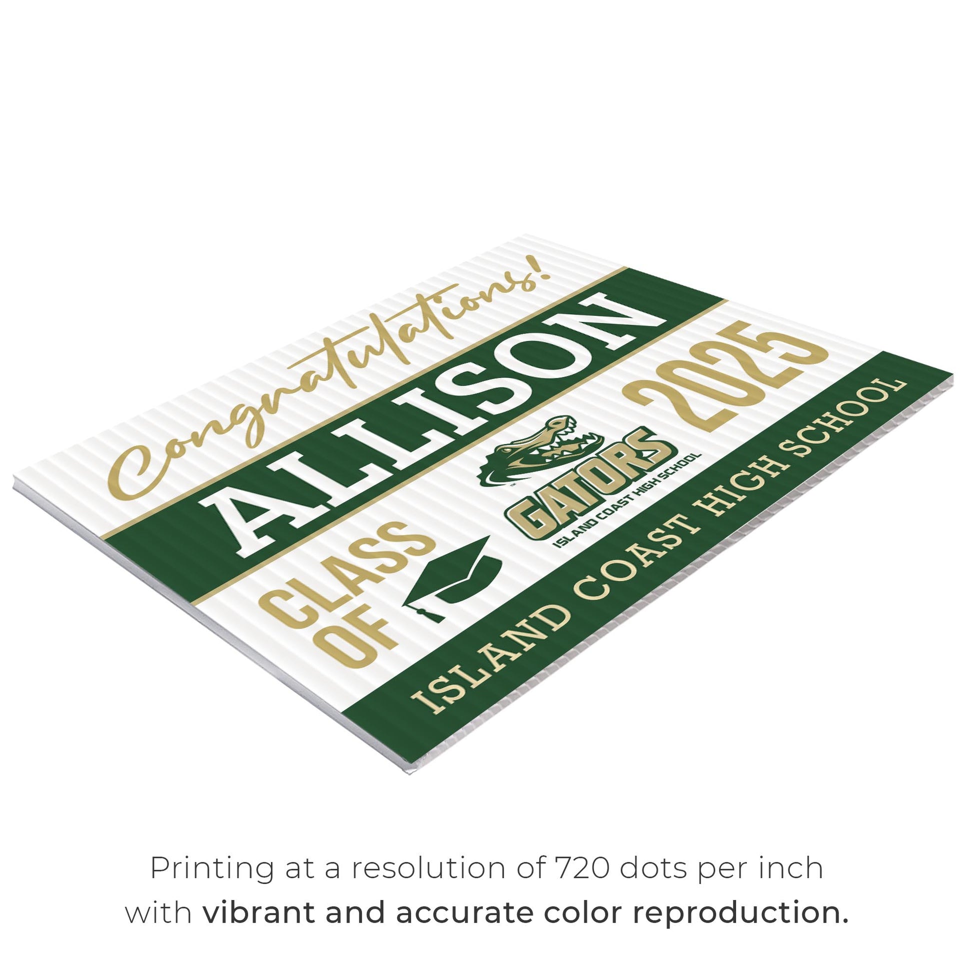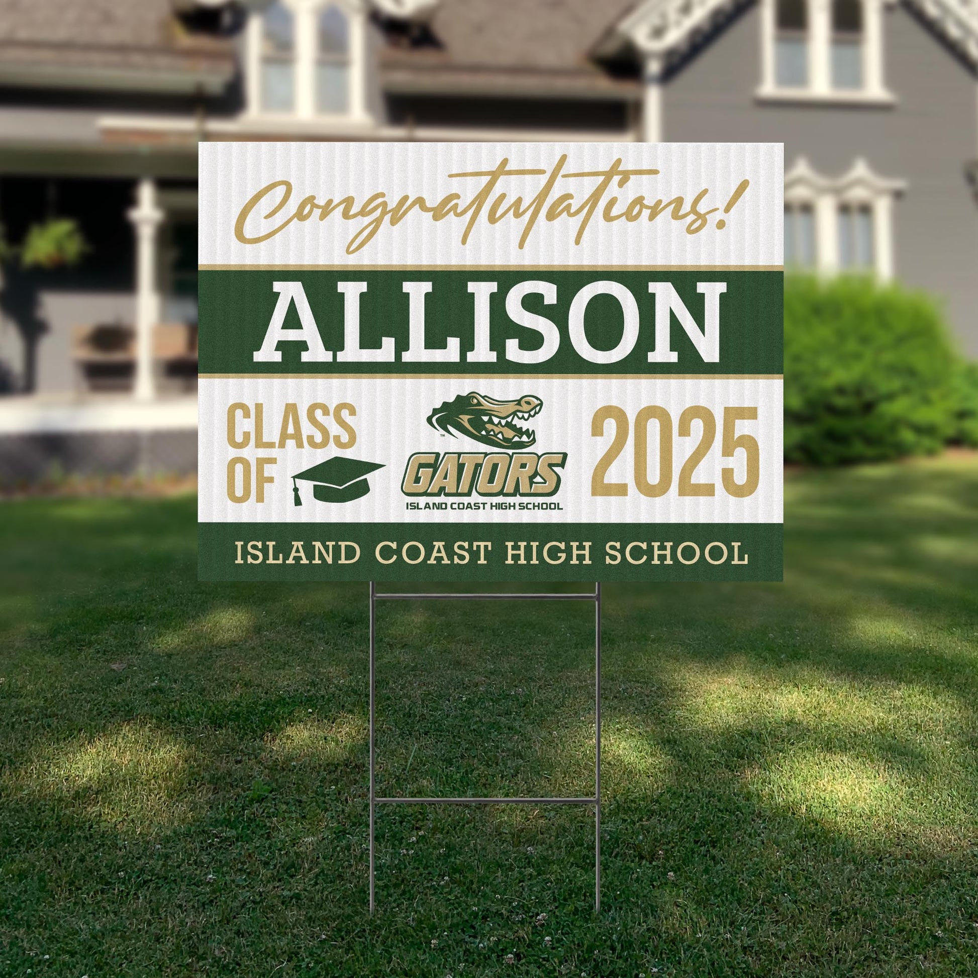 Customizable Design – Celebrate the achievements of Island Coast High School graduates with personalized yard signs. Add the graduate's name, graduation year, and a congratulatory message to create a unique, custom tribute, making it easy for friends, family, and the community to recognize and honor their accomplishment.