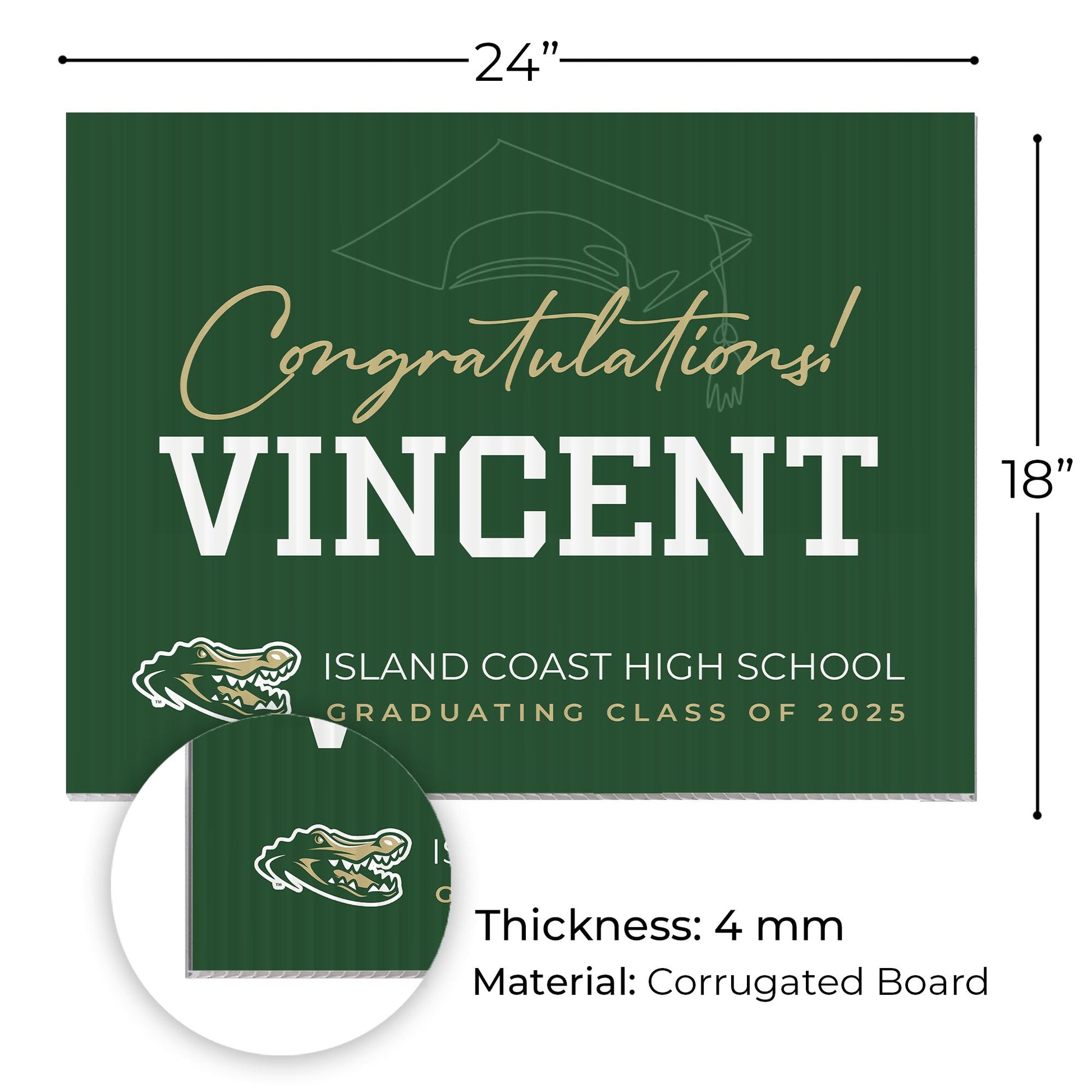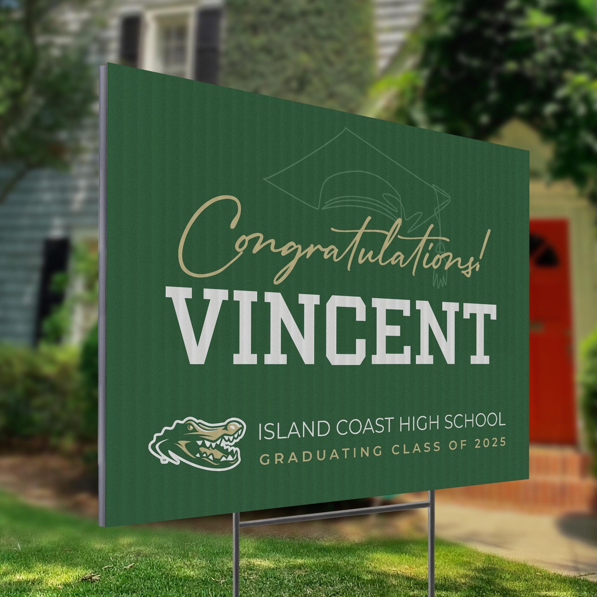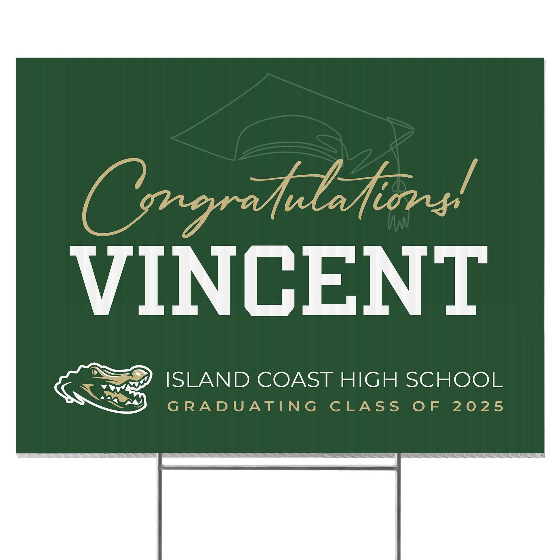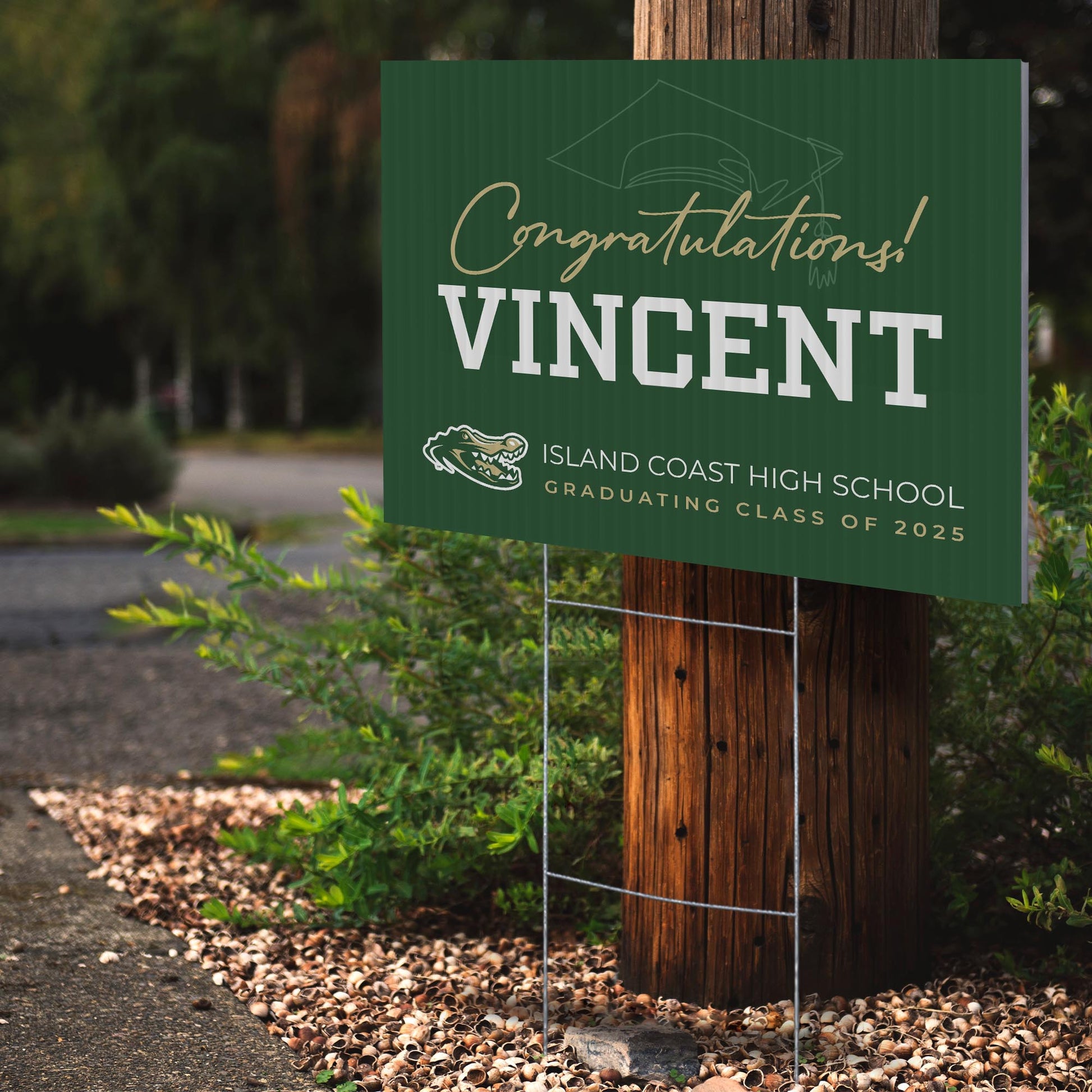Customizable Design – Celebrate the achievements of Island Coast High School graduates with personalized yard signs. Add the graduate's name, graduation year, and a congratulatory message to create a unique, custom tribute, making it easy for friends, family, and the community to recognize and honor their accomplishment.