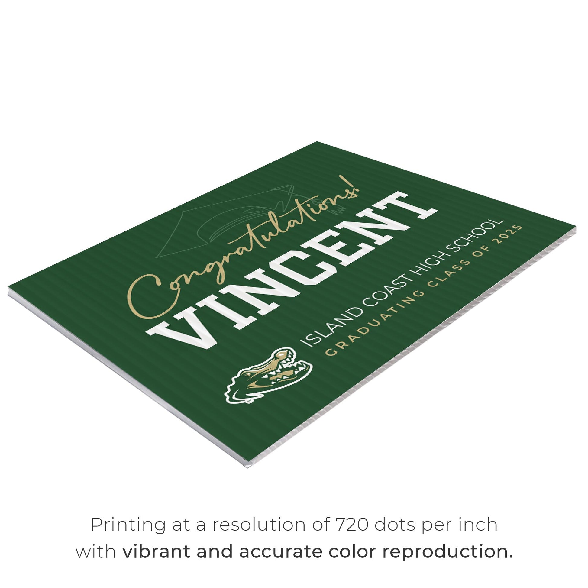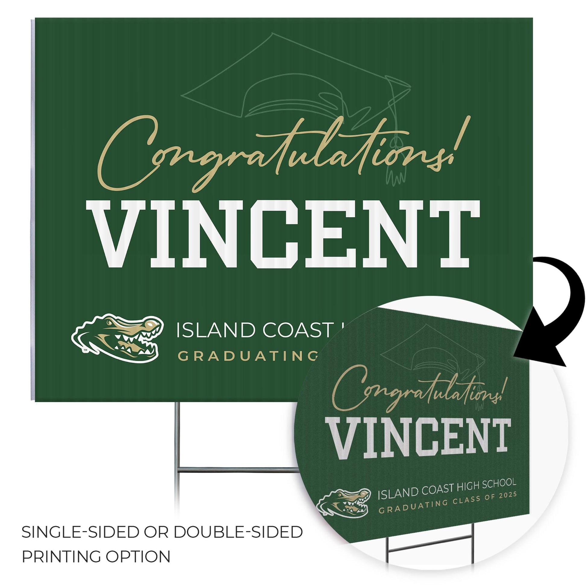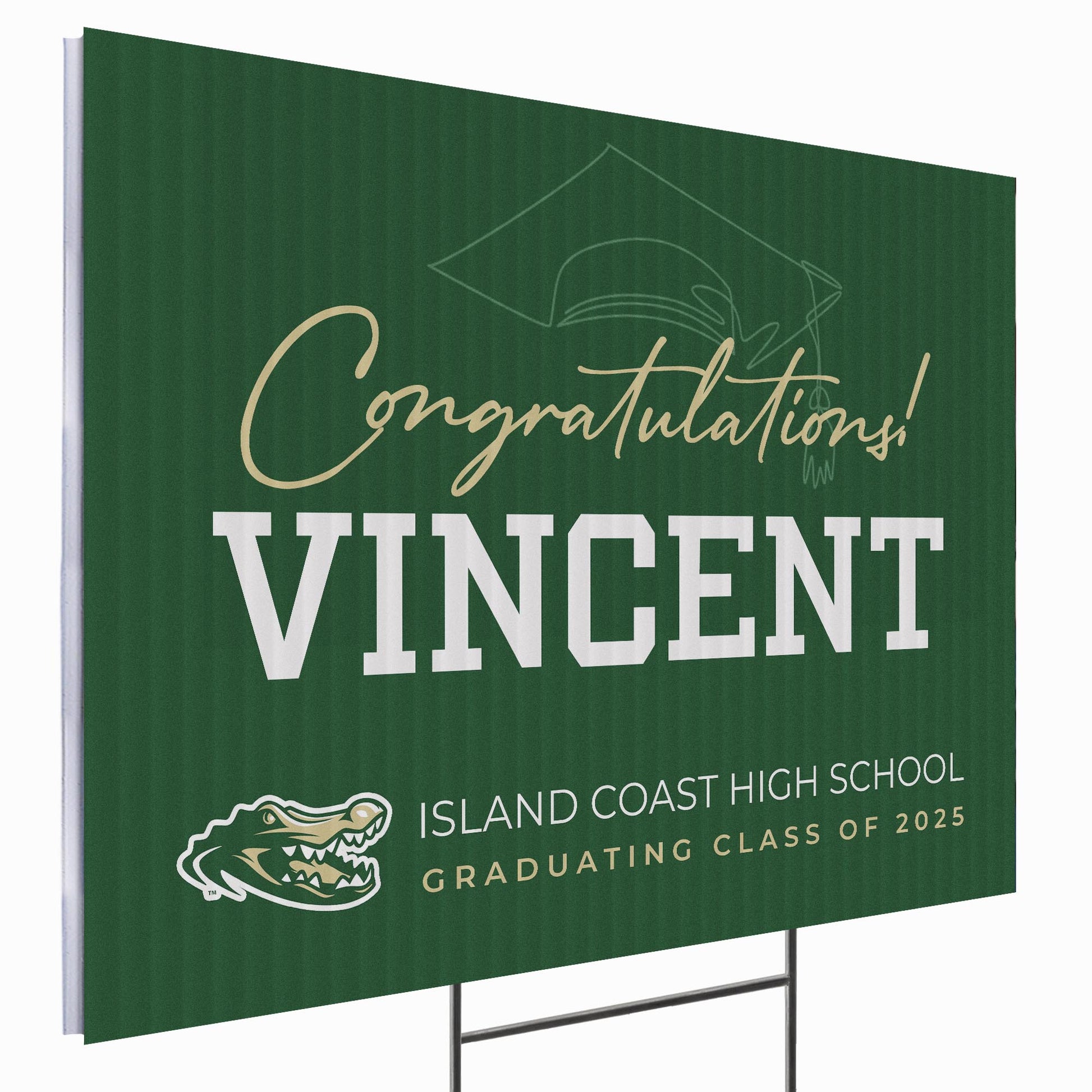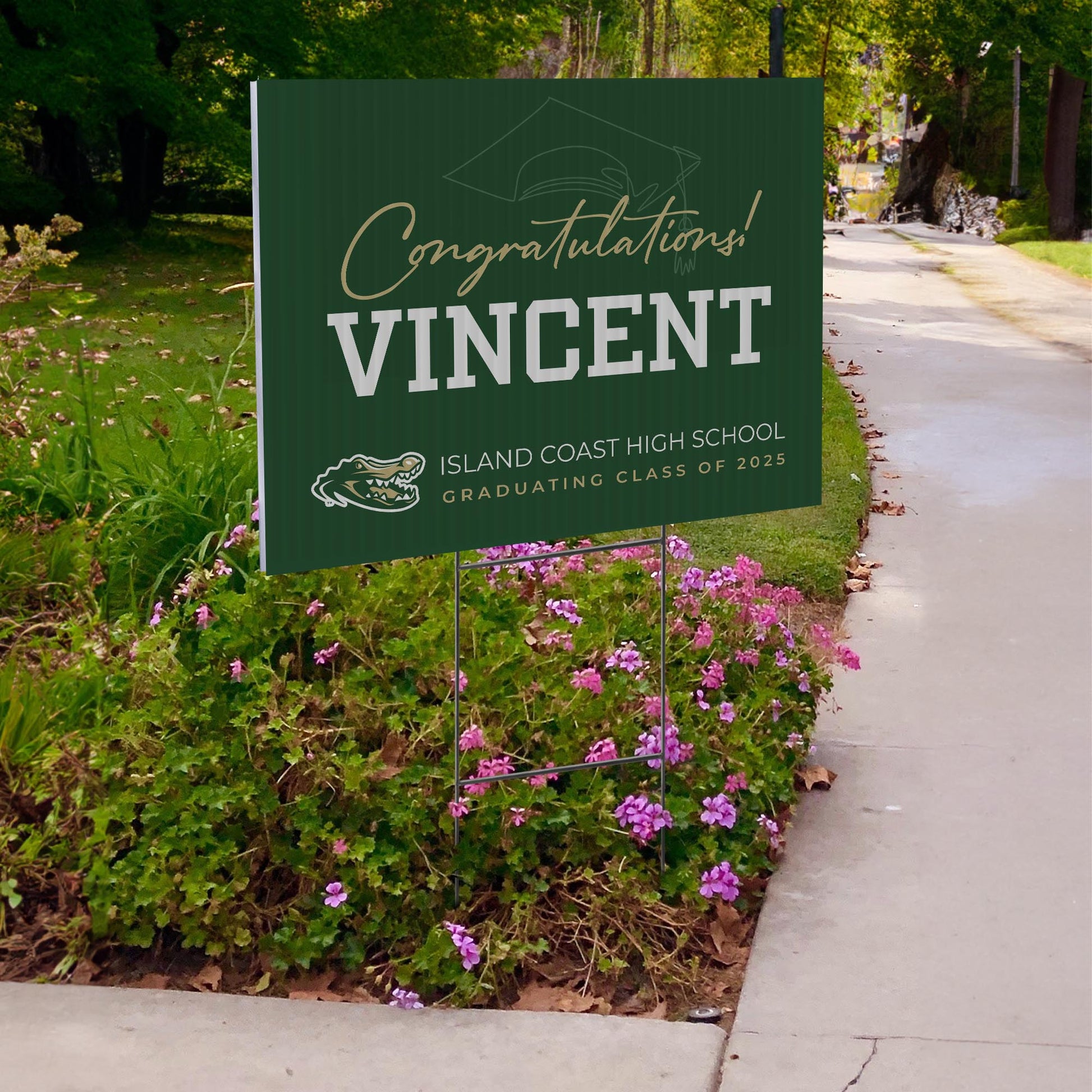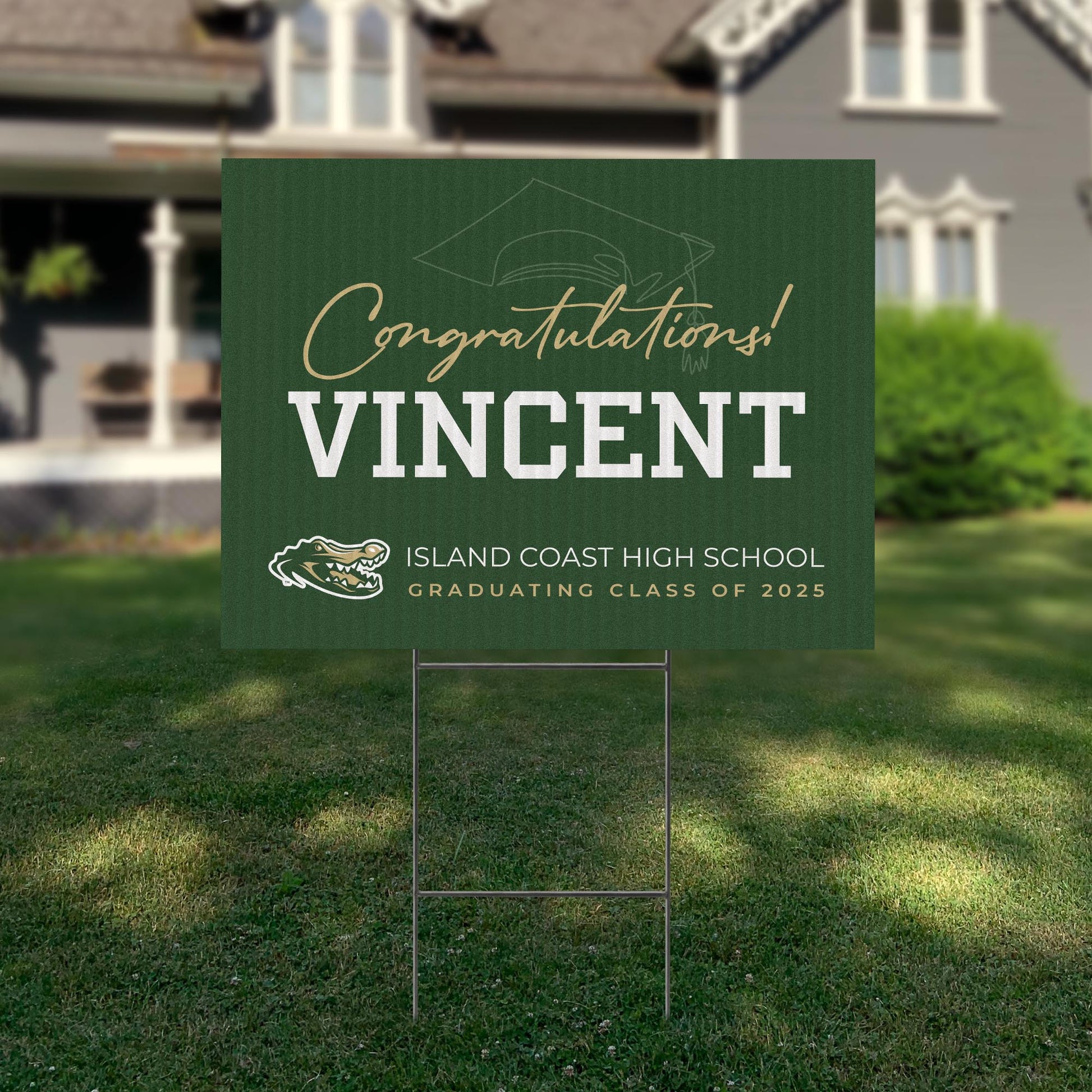 Customizable Design – Celebrate the achievements of Island Coast High School graduates with personalized yard signs. Add the graduate's name, graduation year, and a congratulatory message to create a unique, custom tribute, making it easy for friends, family, and the community to recognize and honor their accomplishment.