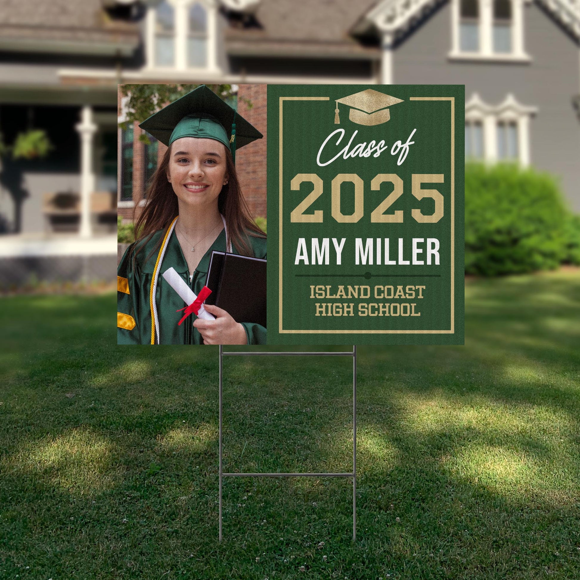 Customizable Design – Celebrate the achievements of Island Coast High School graduates with personalized yard signs. Add the graduate's name, graduation year, and a congratulatory message to create a unique, custom tribute, making it easy for friends, family, and the community to recognize and honor their accomplishment.