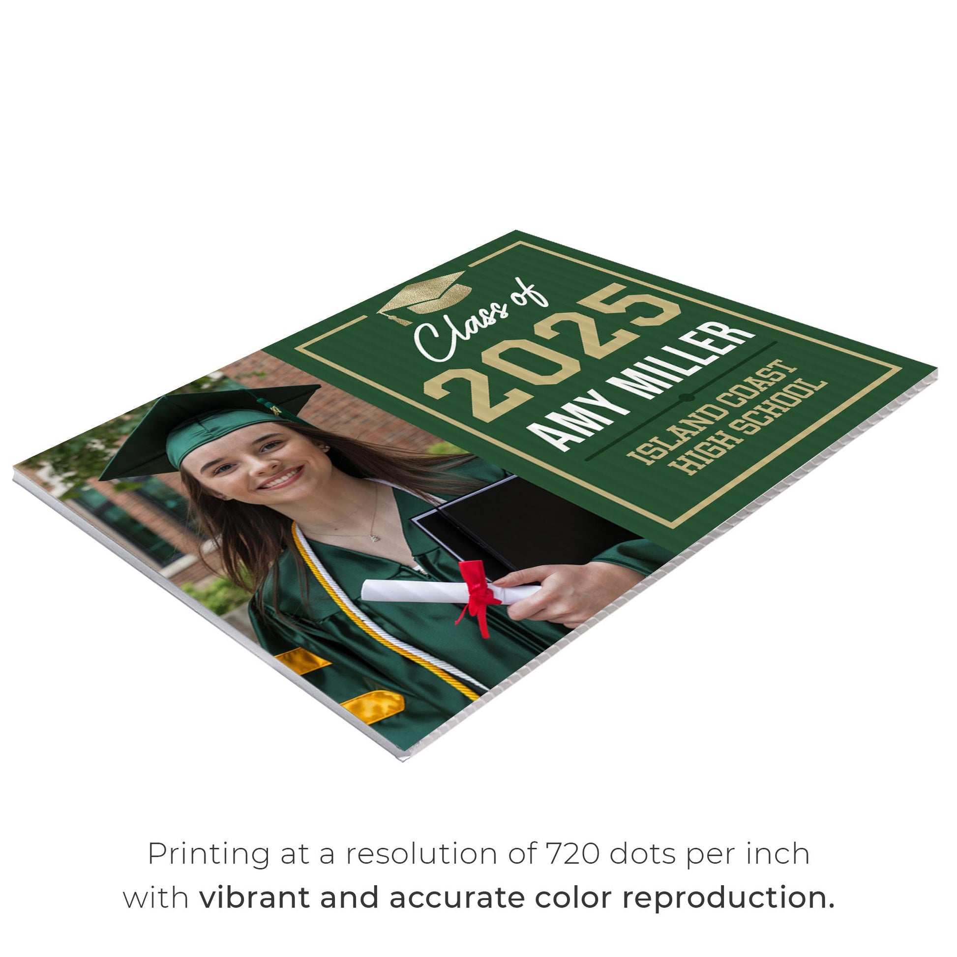 Vibrant Full-Color Printing – Make a statement with bold, full-color graphics printed on both sides of the sign. The eye-catching congratulatory message, along with the graduate's details, ensures visibility from every angle, helping to celebrate this special milestone in style.