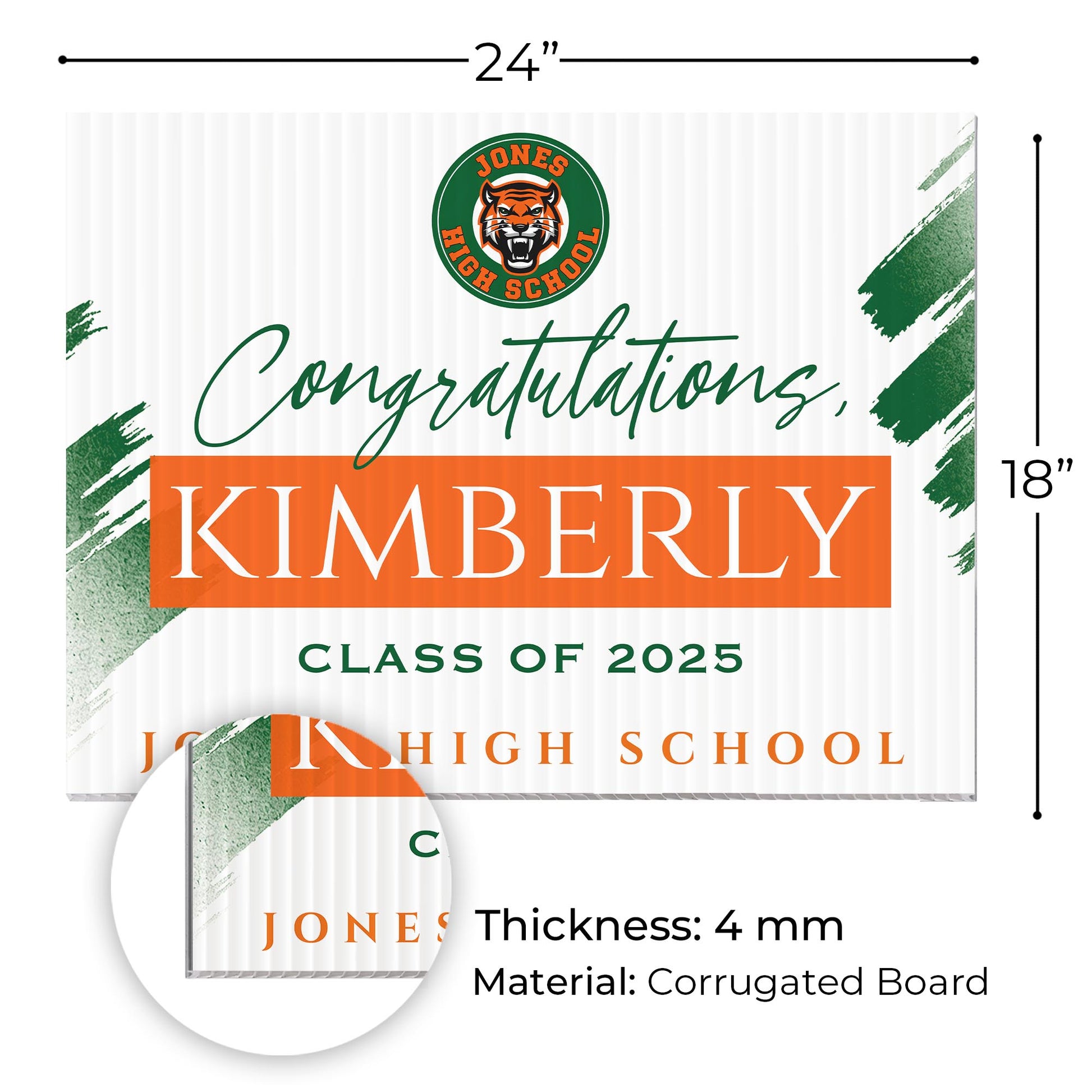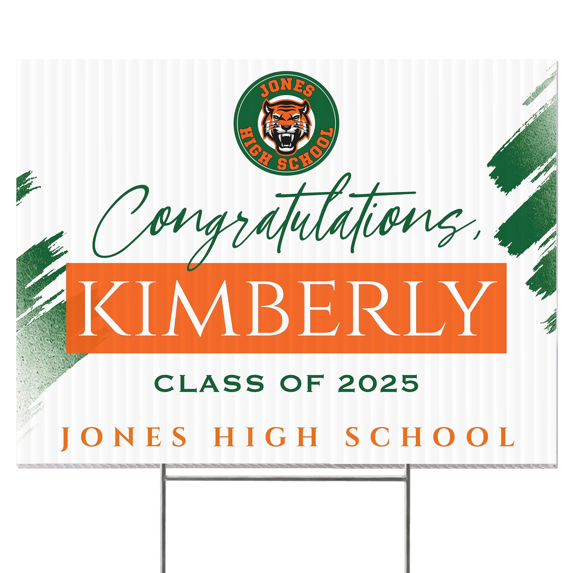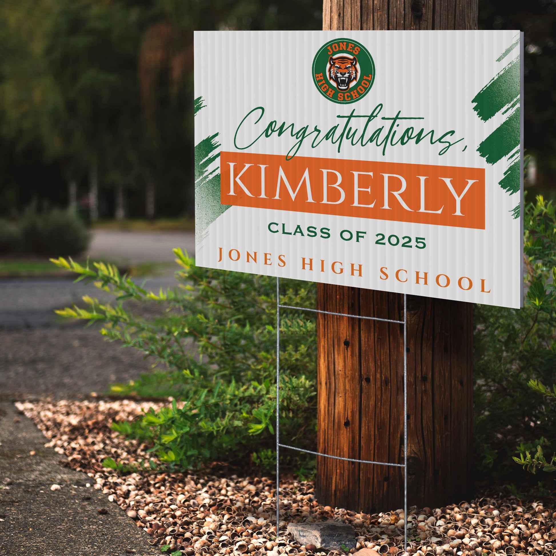 Customizable Design – Celebrate the achievements of Jones High School graduates with personalized yard signs. Add the graduate's name, graduation year, and a congratulatory message to create a unique, custom tribute. It’s a simple (and super cool) way for friends, family, and the whole community to recognize and honor their big moment.
