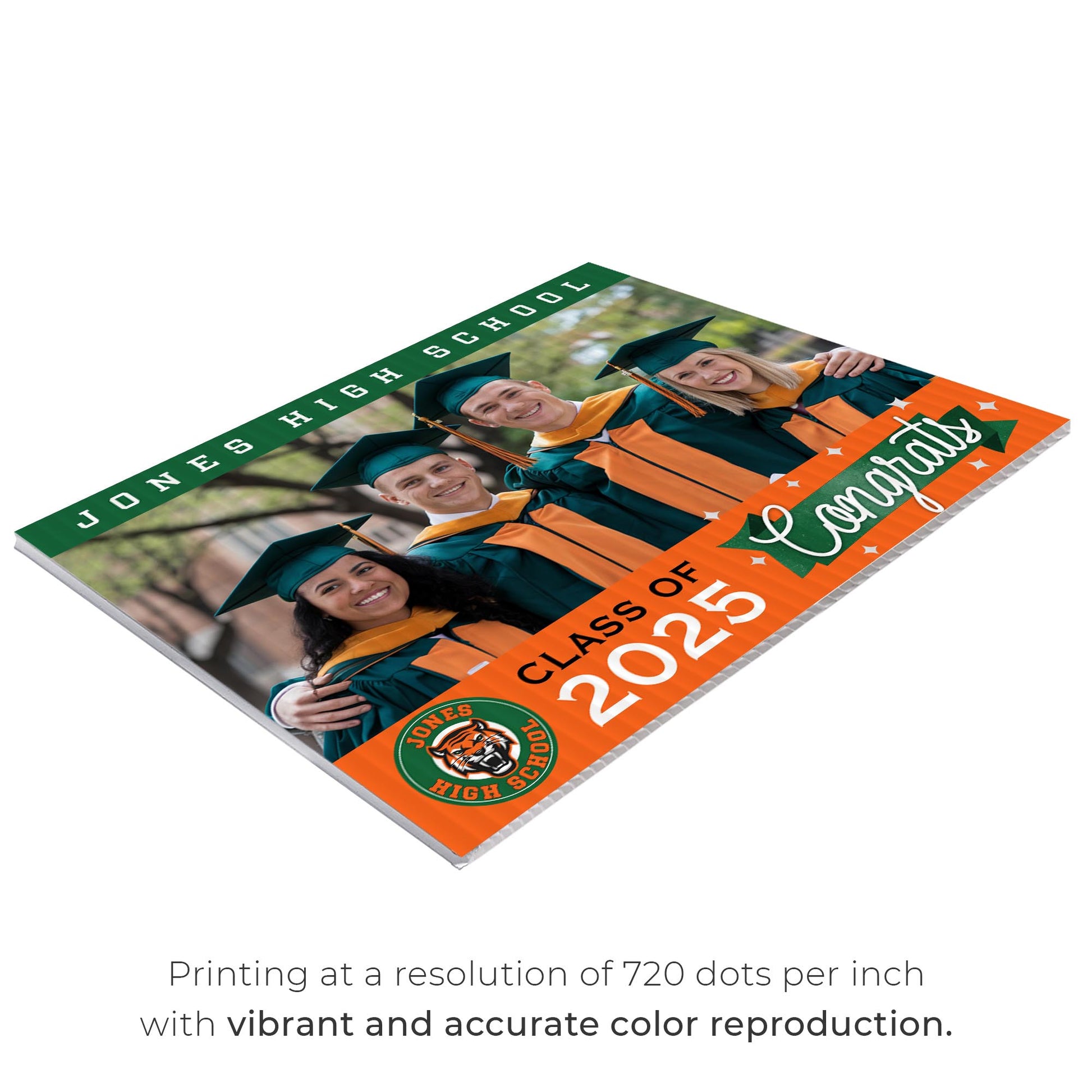 Vibrant Full-Color Printing – Turn heads with bold, full-color graphics printed on both sides. The personalized message and graduate’s info are crystal clear from every angle, helping your grad shine bright.