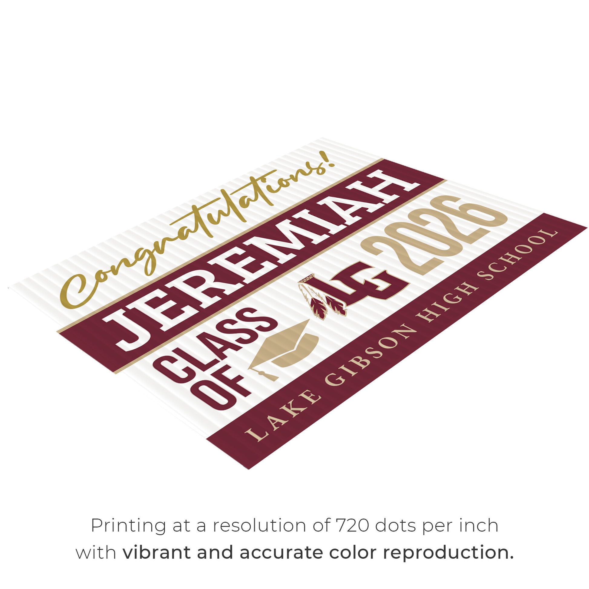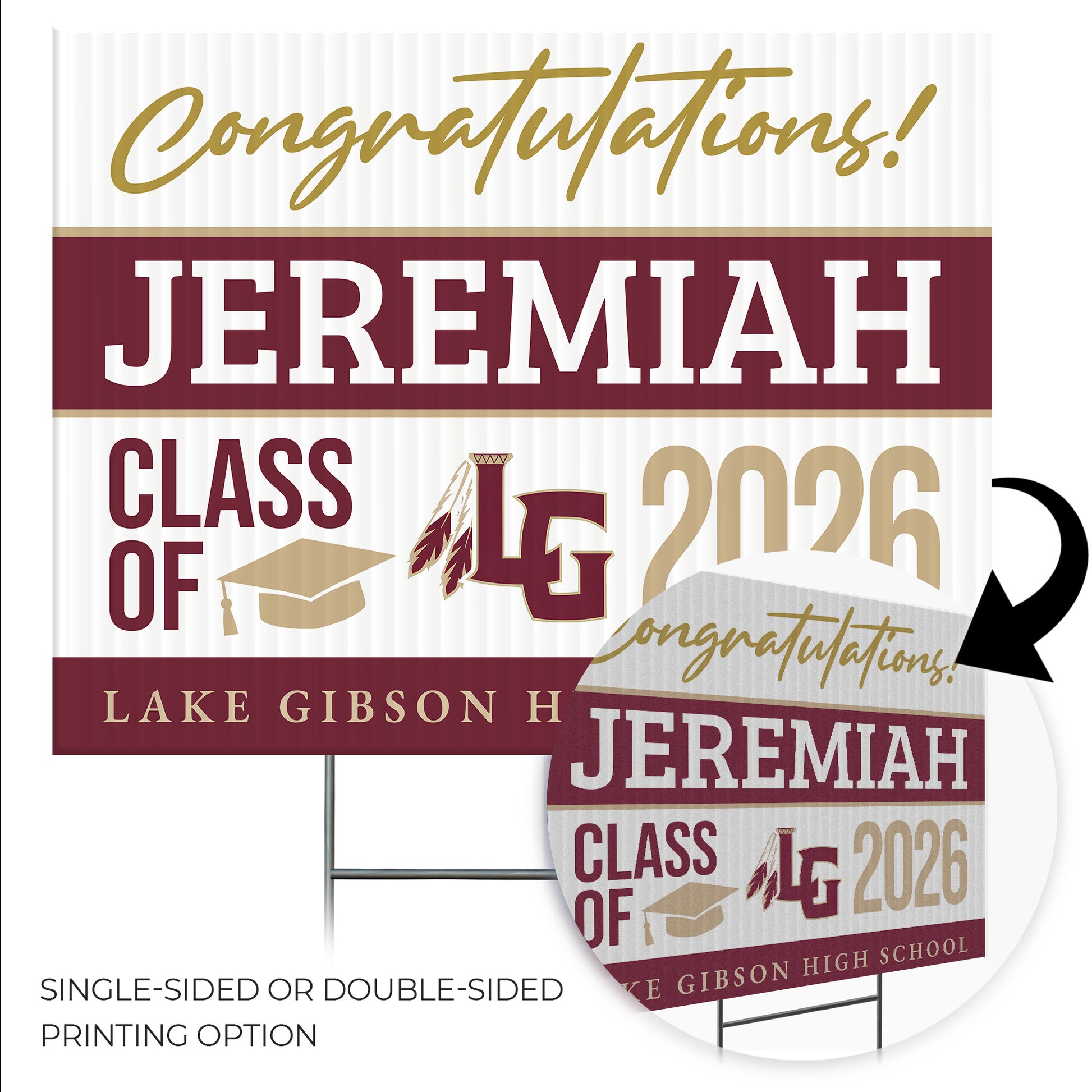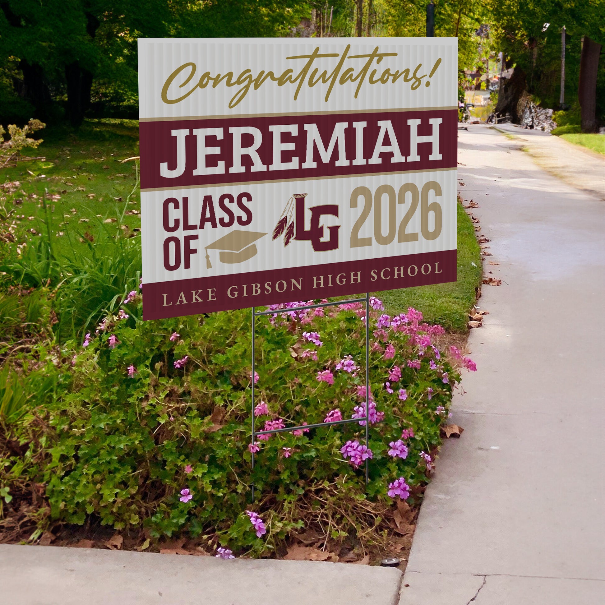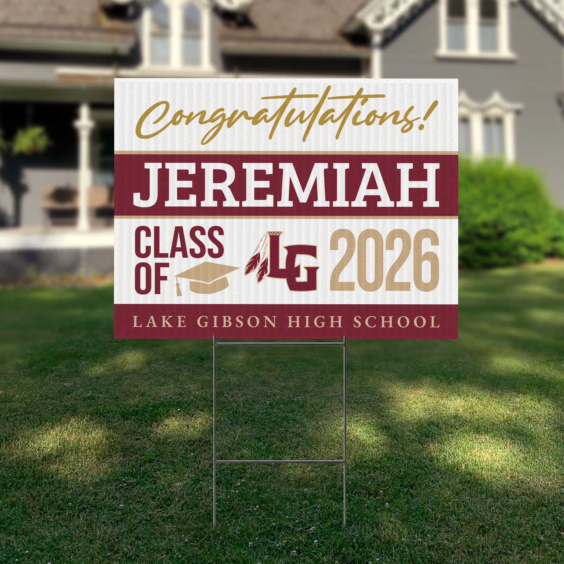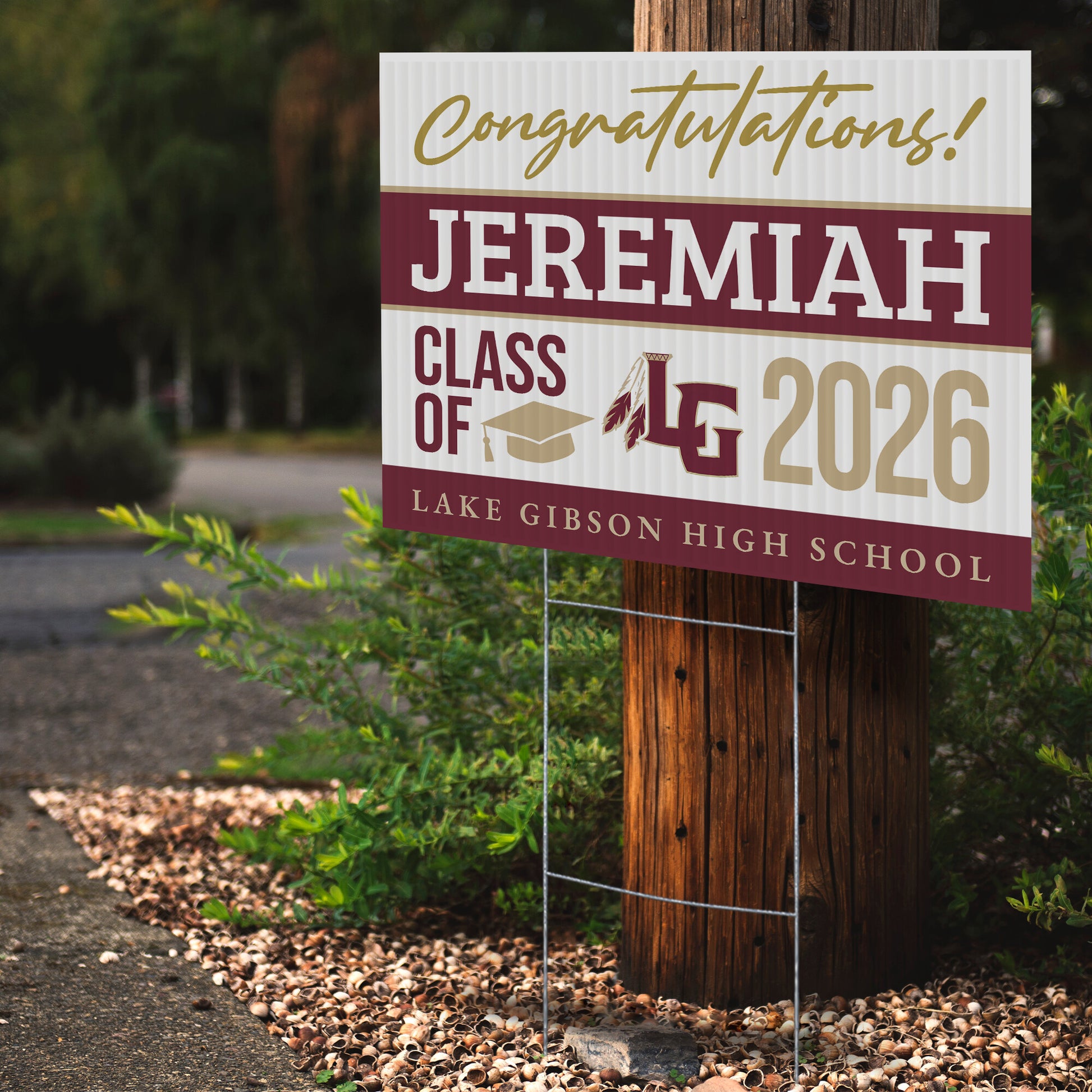 Customizable Design – Celebrate the achievements of Lake Gibson High School graduates with personalized yard signs. Add the graduate's name, graduation year, and a congratulatory message to create a unique, custom tribute, making it easy for friends, family, and the community to recognize and honor their accomplishment.