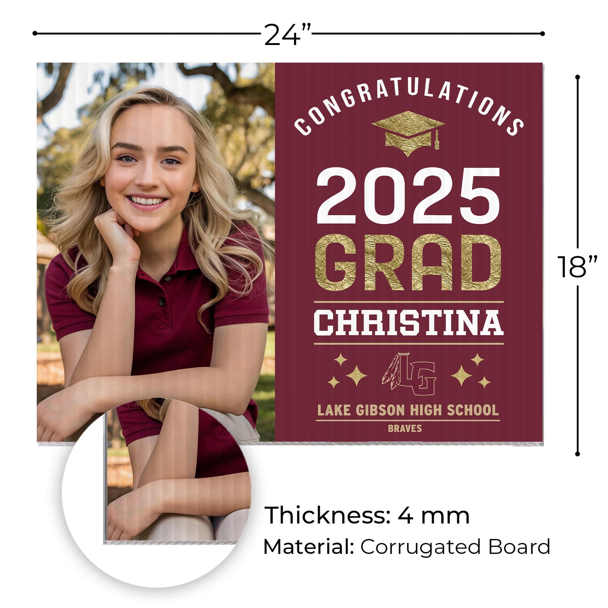 Customizable Design – Celebrate the achievements of Lake Gibson High School graduates with personalized yard signs. Add the graduate's name, graduation year, and a congratulatory message to create a unique, custom tribute, making it easy for friends, family, and the community to recognize and honor their accomplishment.