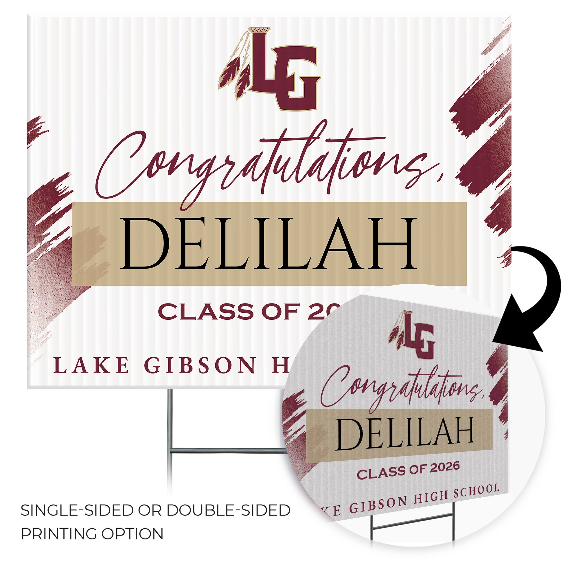Customizable Design – Celebrate the achievements of Lake Gibson High School graduates with personalized yard signs. Add the graduate's name, graduation year, and a congratulatory message to create a unique, custom tribute, making it easy for friends, family, and the community to recognize and honor their accomplishment.