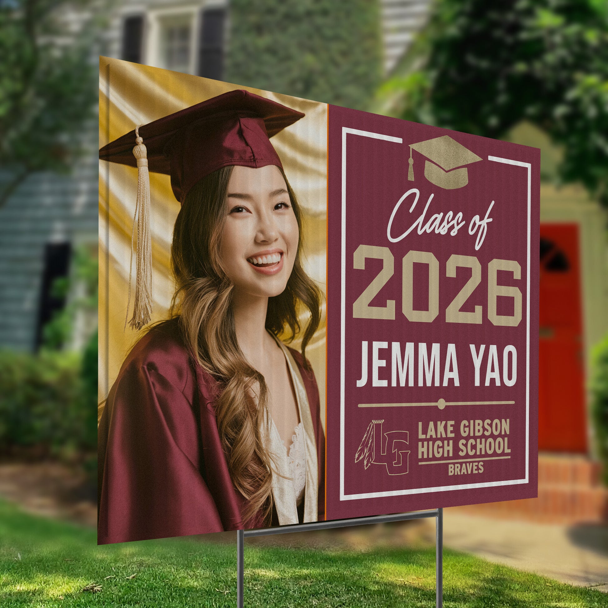 Customizable Design – Celebrate the achievements of Lake Gibson High School graduates with personalized yard signs. Add the graduate's name, graduation year, and a congratulatory message to create a unique, custom tribute, making it easy for friends, family, and the community to recognize and honor their accomplishment.