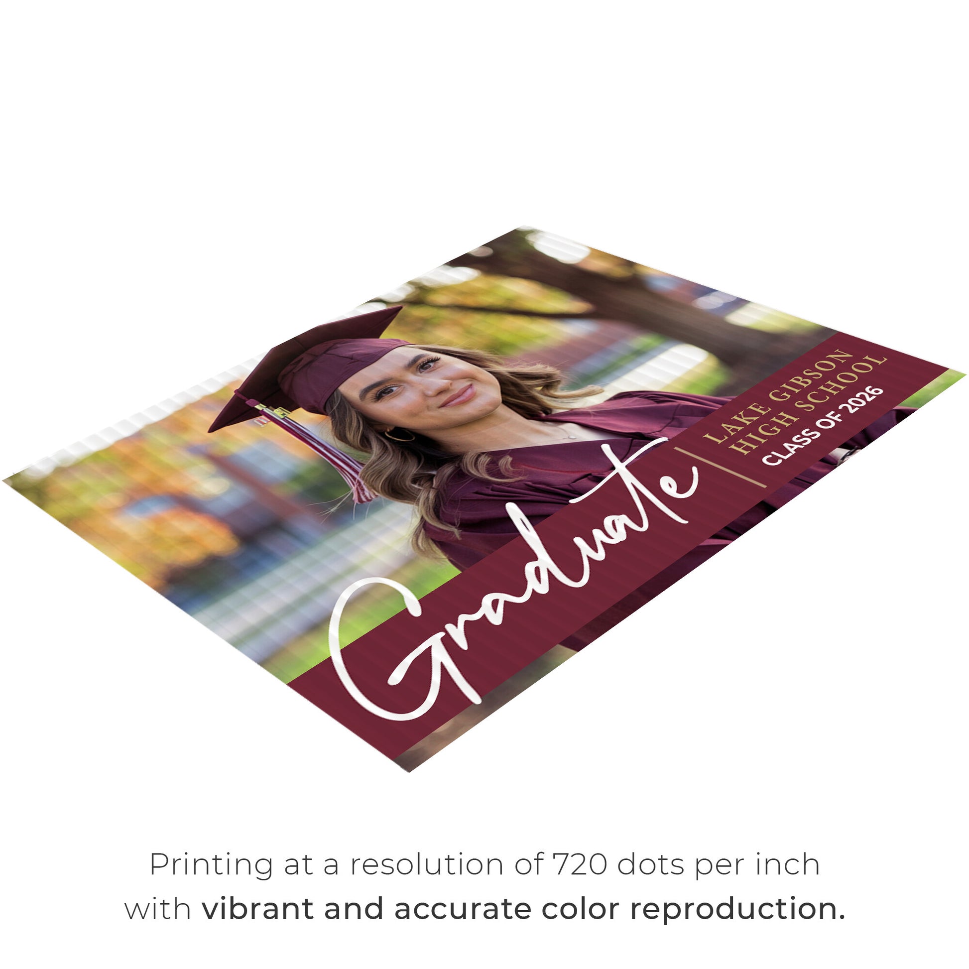 Vibrant Full-Color Printing – Make a statement with bold, full-color graphics printed on both sides of the sign. The eye-catching congratulatory message, along with the graduate's details, ensures visibility from every angle, helping to celebrate this special milestone in style.