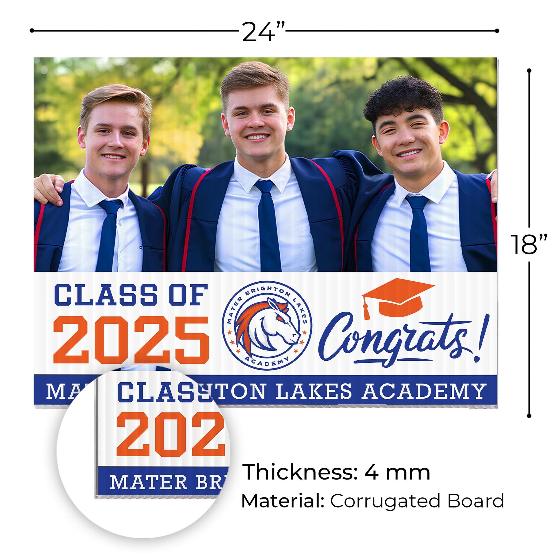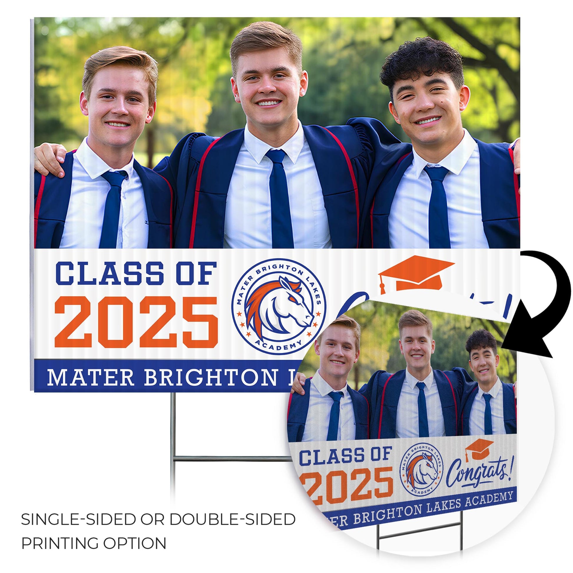 Customizable Design – Celebrate the achievements of Mater Brighton Lakes Academy graduates with personalized yard signs. Add the graduate's name, graduation year, and a congratulatory message to create a unique, custom tribute, making it easy for friends, family, and the community to recognize and honor their accomplishment.