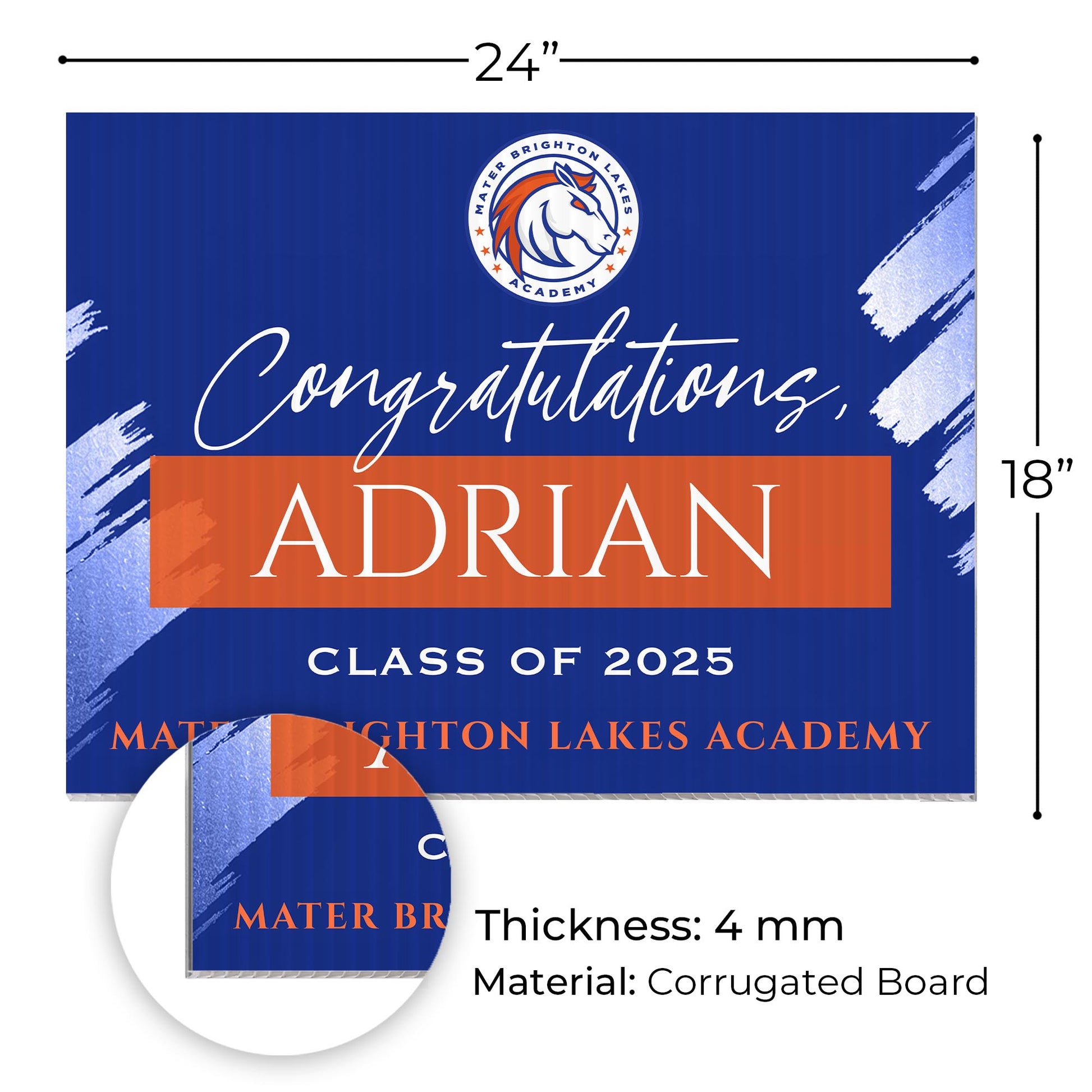Customizable Design – Celebrate the achievements of Mater Brighton Lakes Academy graduates with personalized yard signs. Add the graduate's name, graduation year, and a congratulatory message to create a unique, custom tribute, making it easy for friends, family, and the community to recognize and honor their accomplishment.