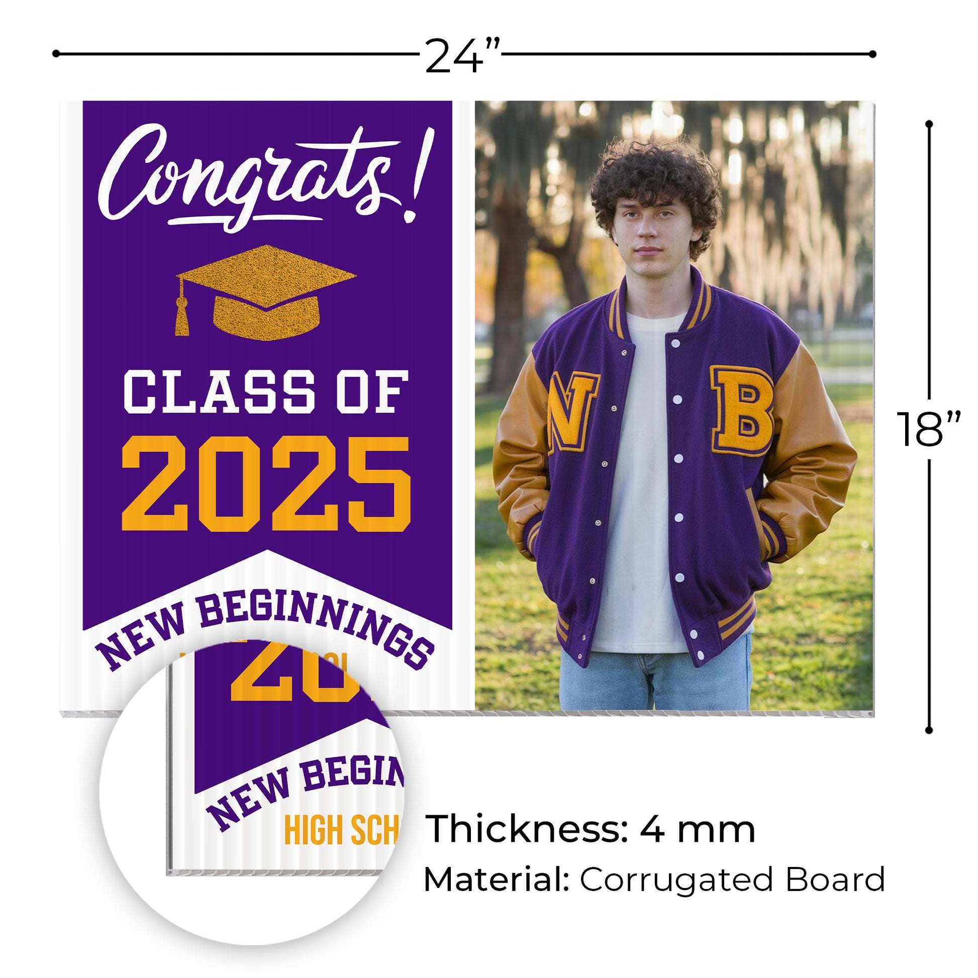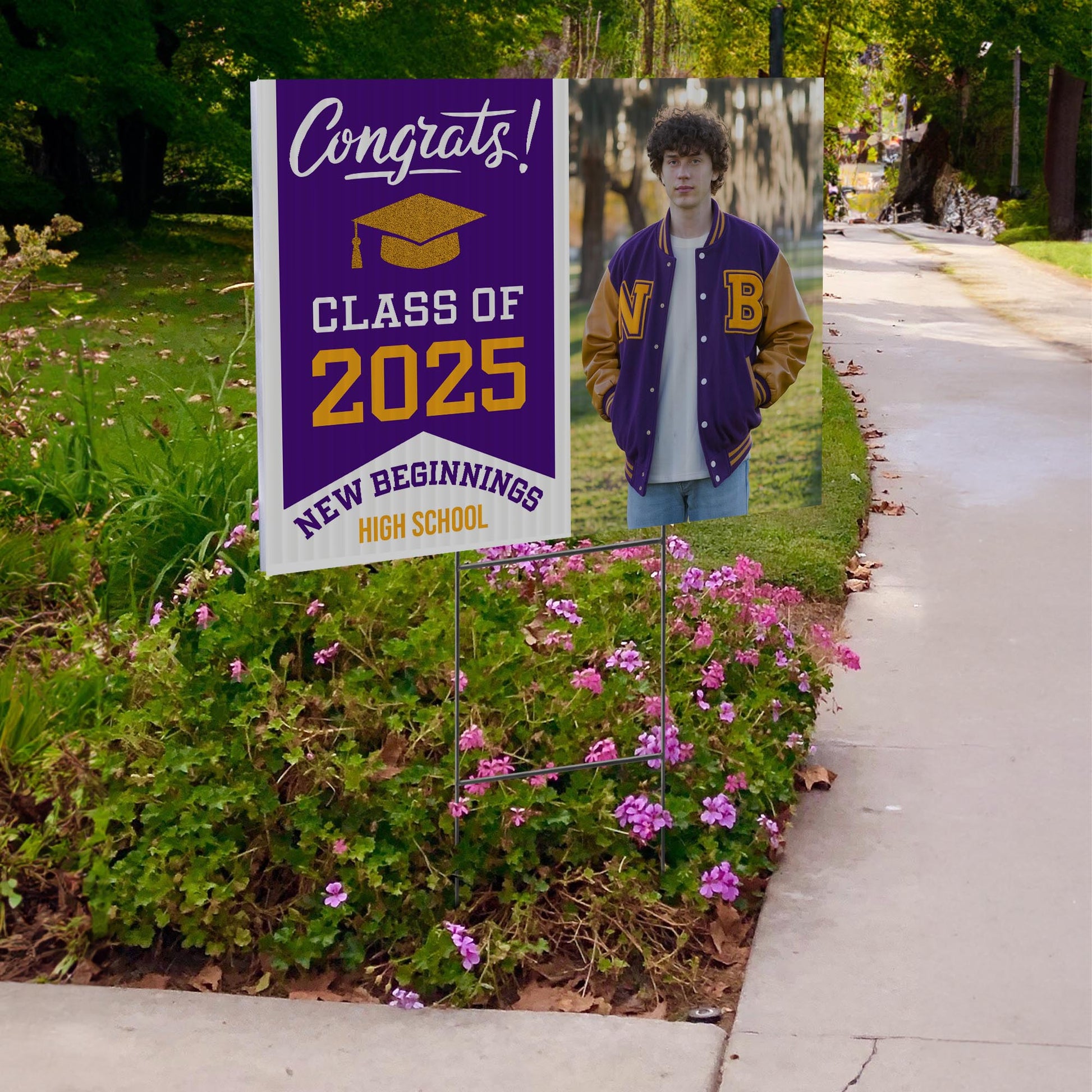 Customizable Design – Celebrate the achievements of New Beginnings High School graduates with personalized yard signs. Add the graduate's name, graduation year, and a congratulatory message to create a unique, custom tribute. It's an easy (and awesome) way for friends, family, and the entire community to recognize and honor their big moment.