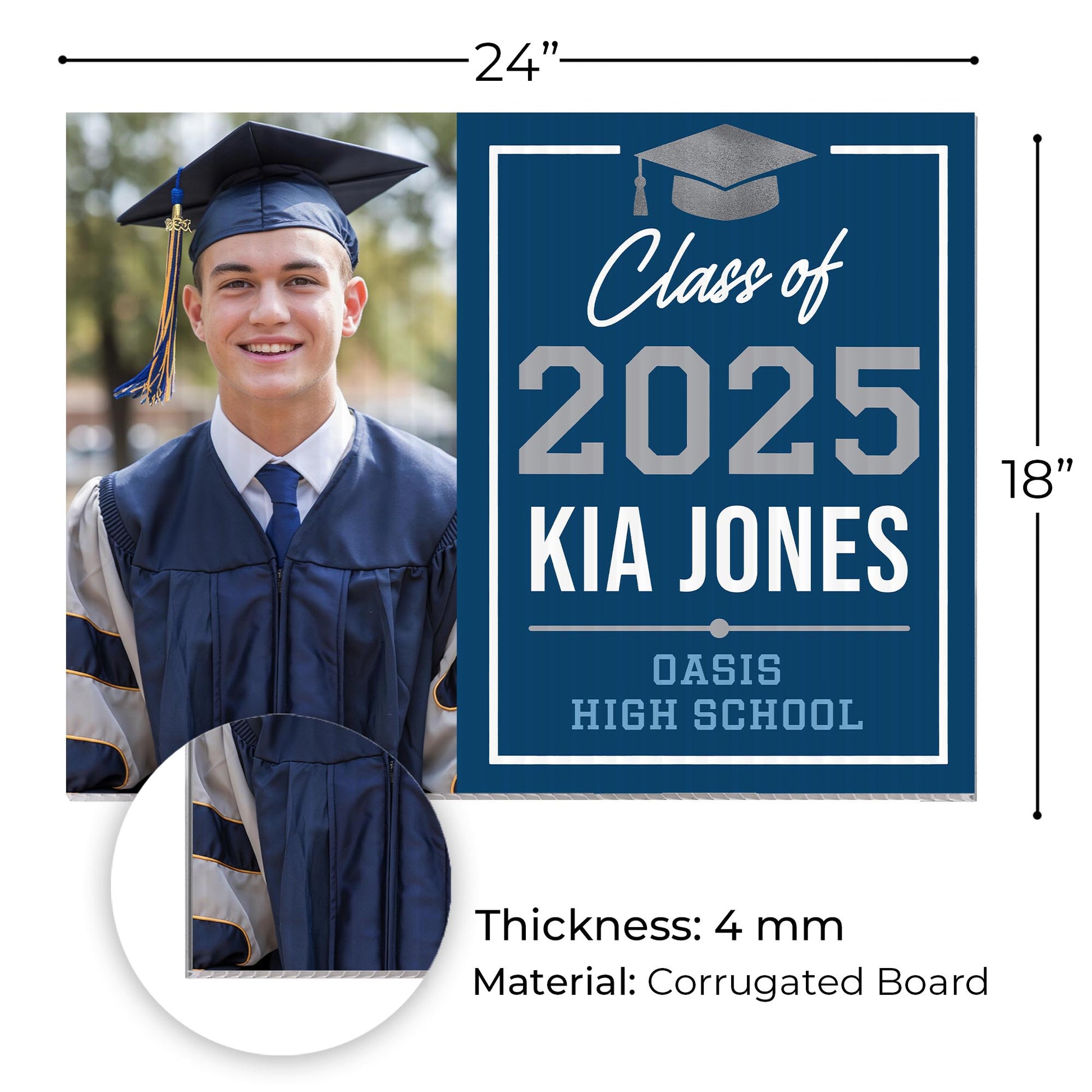 Commemorate this special achievement with our custom yard signs. Add your personalized design, complete your order, and let us handle the rest. Honor your graduate and make their day unforgettable with signs that stand out.