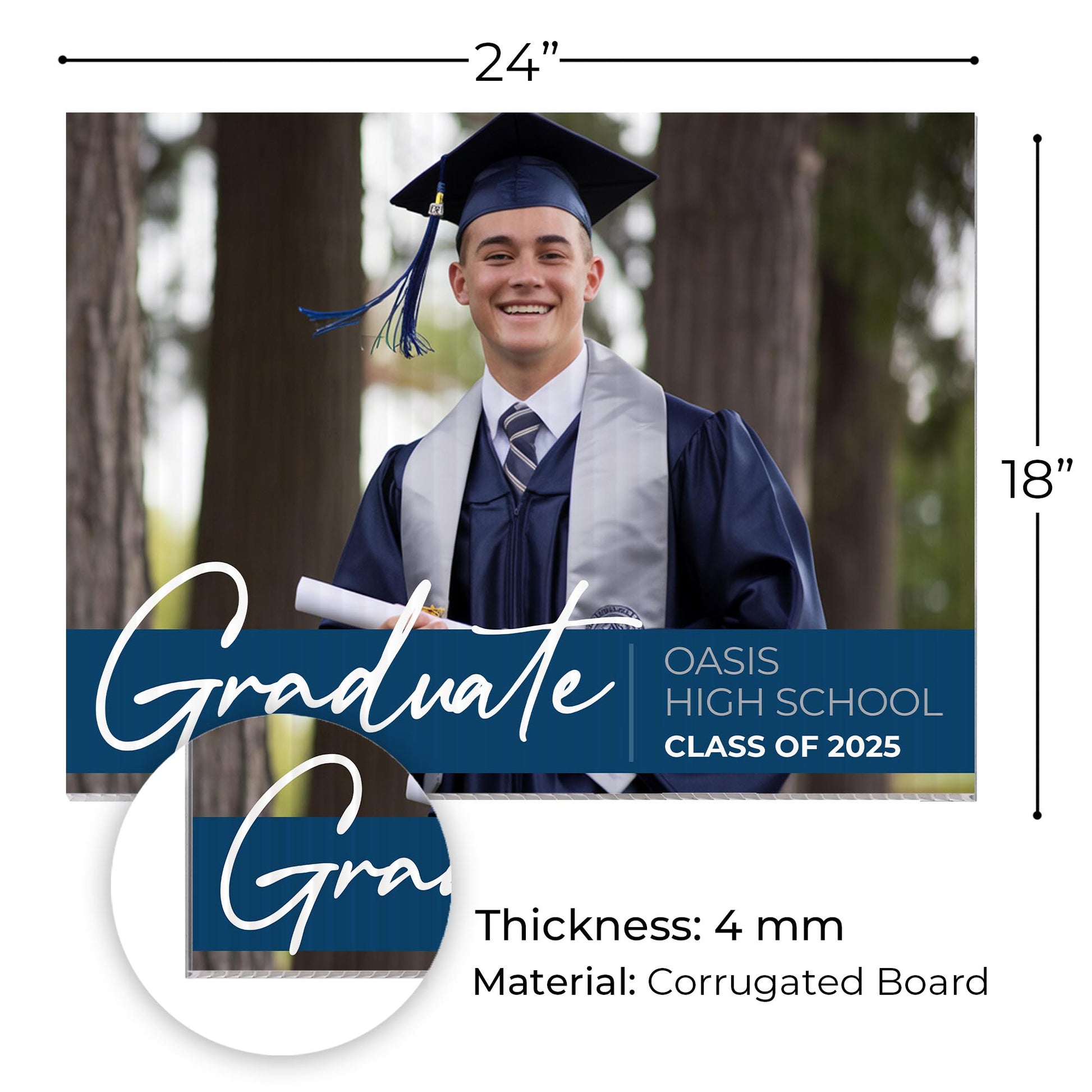 Vibrant Full-Color Printing – Make a statement with bold, full-color graphics printed on both sides of the sign. The eye-catching congratulatory message, along with the graduate's details, ensures visibility from every angle, helping to celebrate this special milestone in style.