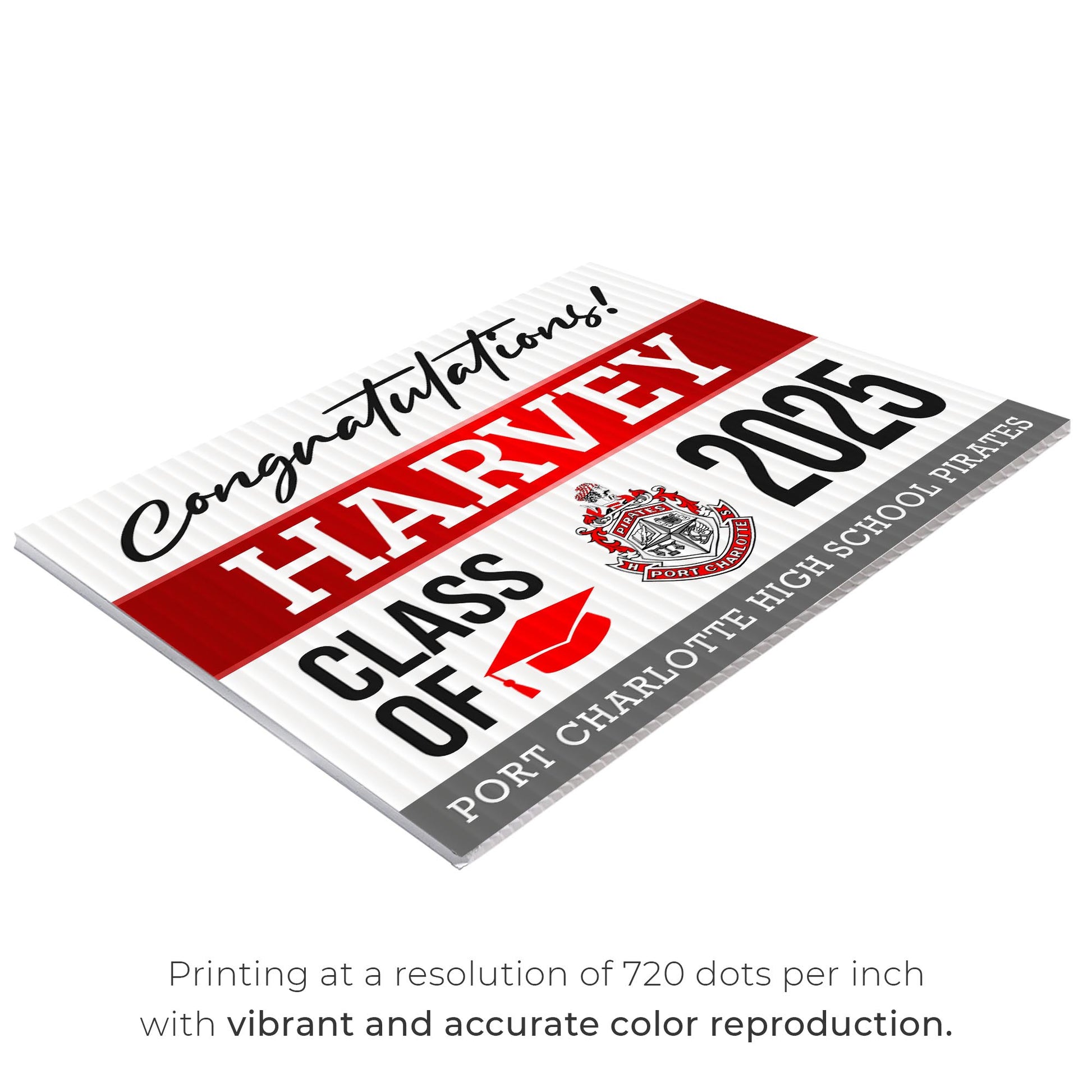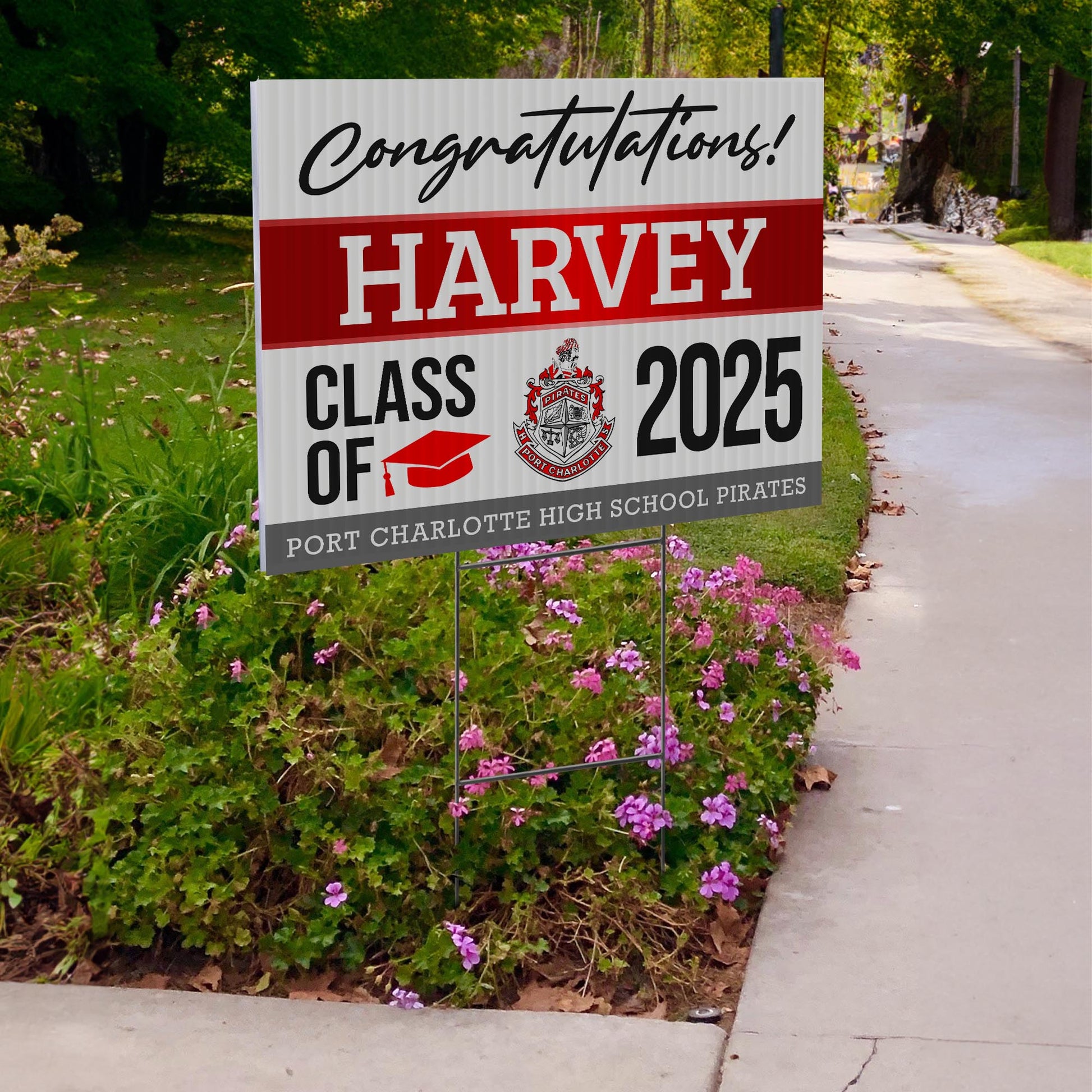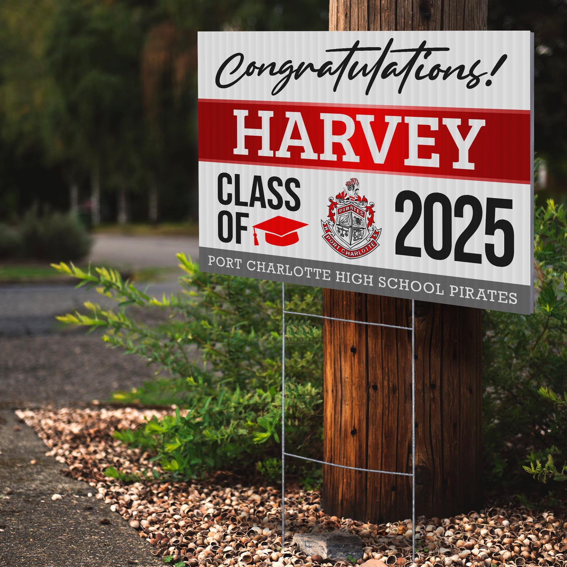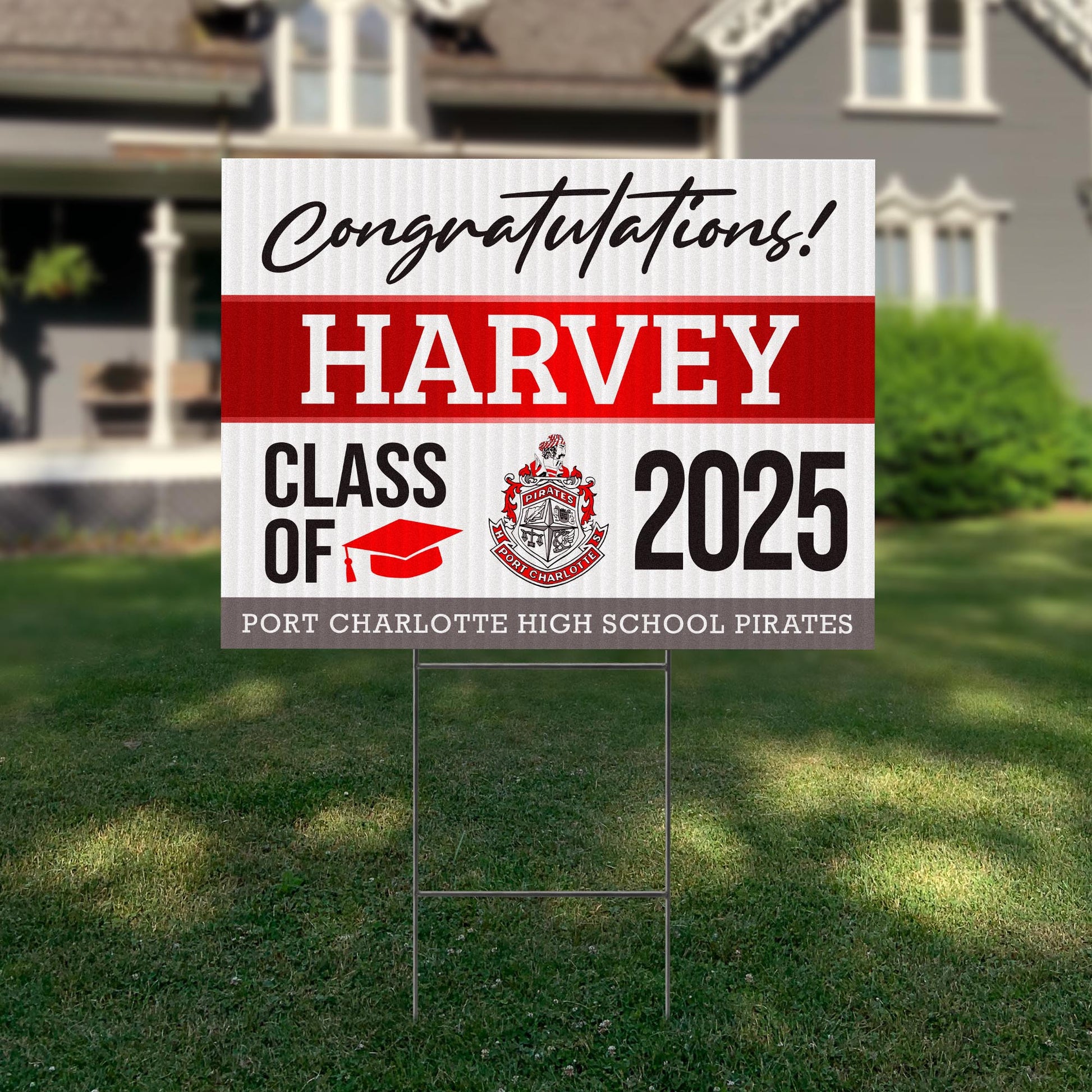 Customizable Design – Celebrate the achievements of Port Charlotte High School graduates with personalized yard signs. Add the graduate’s name, graduation year, and a congratulatory message to create a unique, custom tribute, making it easy for friends, family, and the community to recognize and honor their accomplishment.